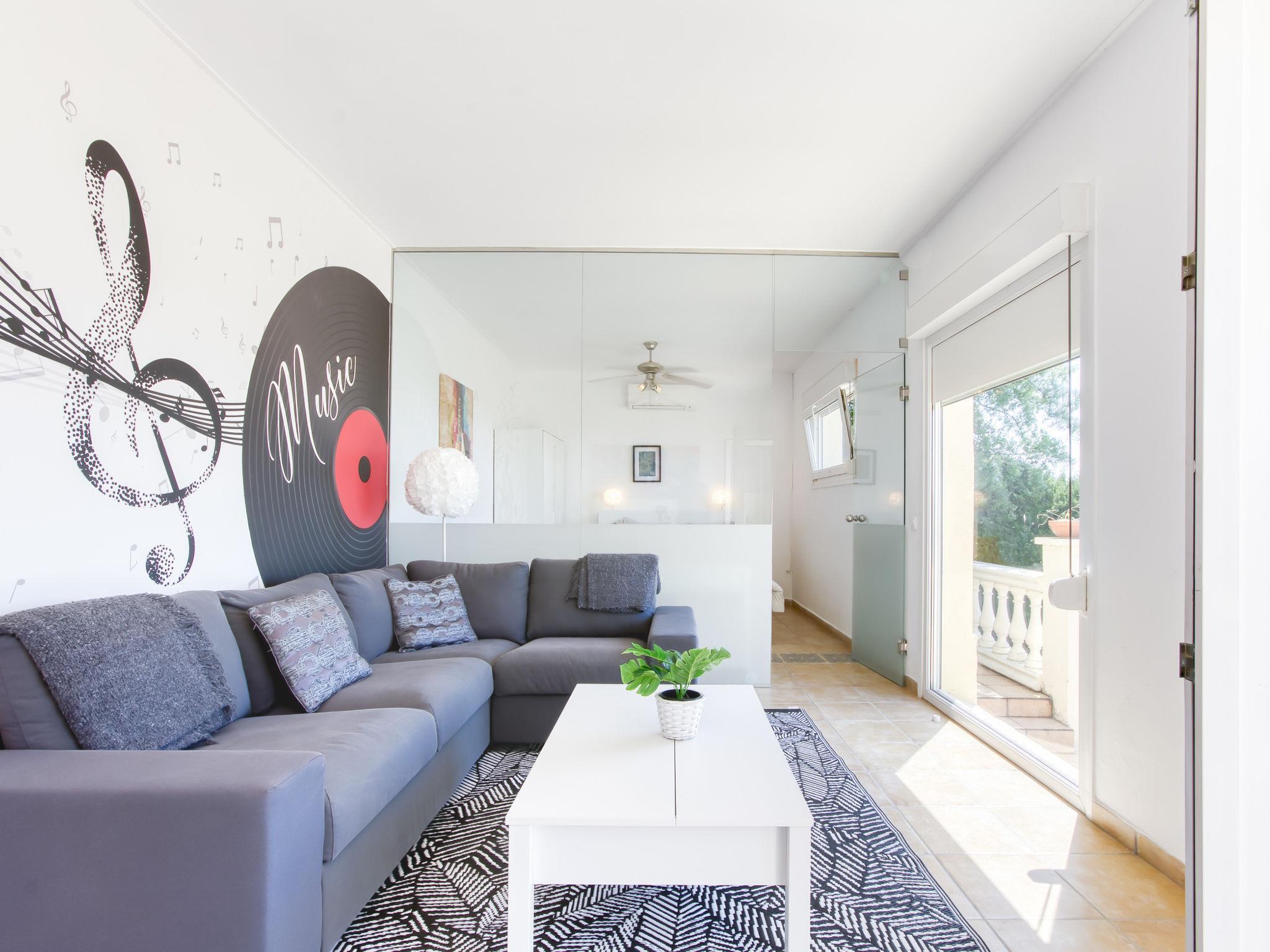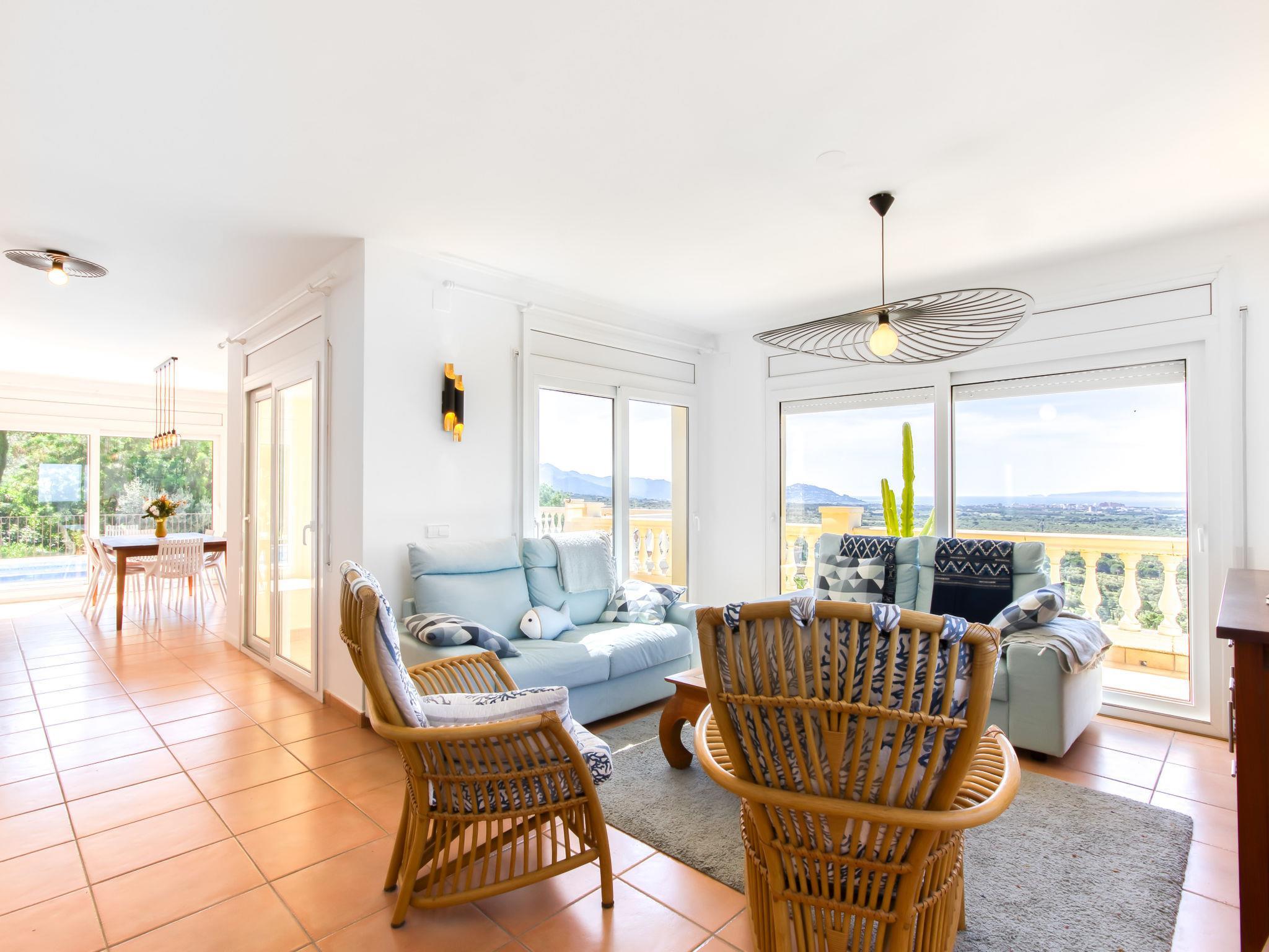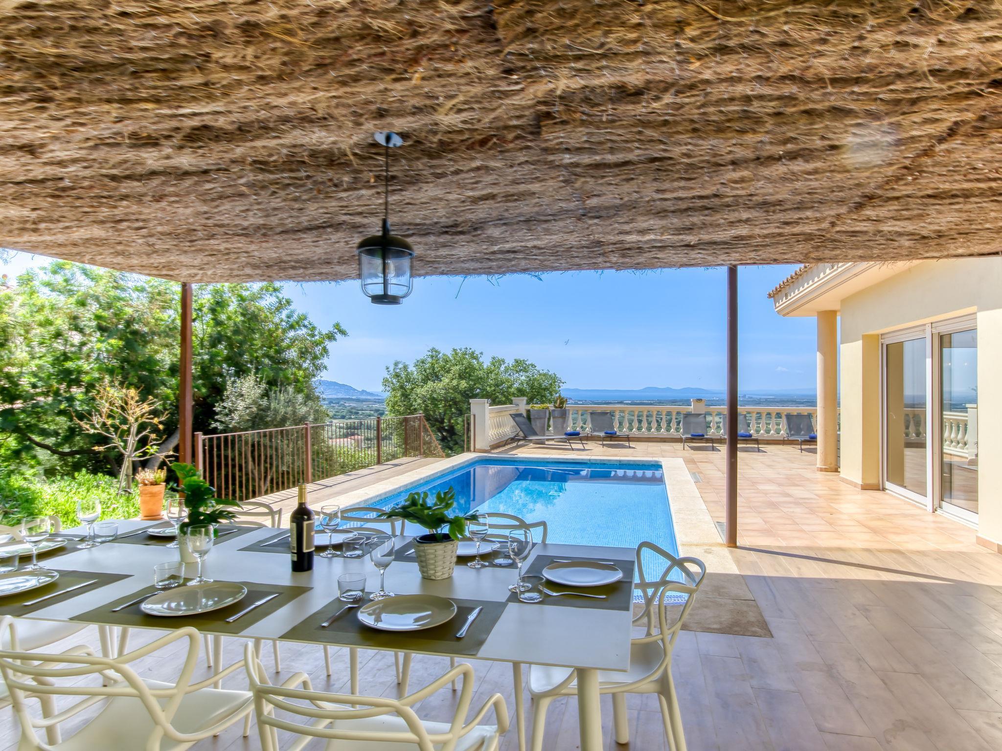 Large, modern, cosy single-family house "Belle vue". In the resort Palau Savardera, 8 km from the centre of Roses, in a quiet, sunny position residential area (villas), traffic calmed area, 7 km from the sea, 7 km from the beach, south facing position. Private: large terraced garden (fenced) with wildlife garden and trees, swimming pool angular (8 x 4 m, depth 100 - 200 cm, seasonal availability: 01.May. - 30.Oct.) with internal staircase. Terrace, garden furniture, barbecue, parking (for 3 cars) on the premises. E-charging station. Grocery 3 km, supermarket 3 km, restaurant, bar, café 500 m, bus stop "Moventis estació bus Roses" 8.8 km, railway station "Estación Tren Vilajuiga" 6 km, sandy beach "Roses" 9 km. Sports harbour 9 km, golf course (18 hole) 12 km, sailing school 9 km, tennis 3 km, riding stable 5 km. Nearby attractions: Zona de padel con bar y restaurante 500 m, Parque Acuático Roses Aquabrava 3 km, Túnel del viento y Skydive Empuriabrava 12 km, Cadaqués 17 km, Museo Dalí Figueres 22 km, Castillo y festival de Perelada 15 km. Please note: car recommended. Groups of teenagers on request only. The keys‘ handover takes place by the agency Interhome in Empuriabrava.