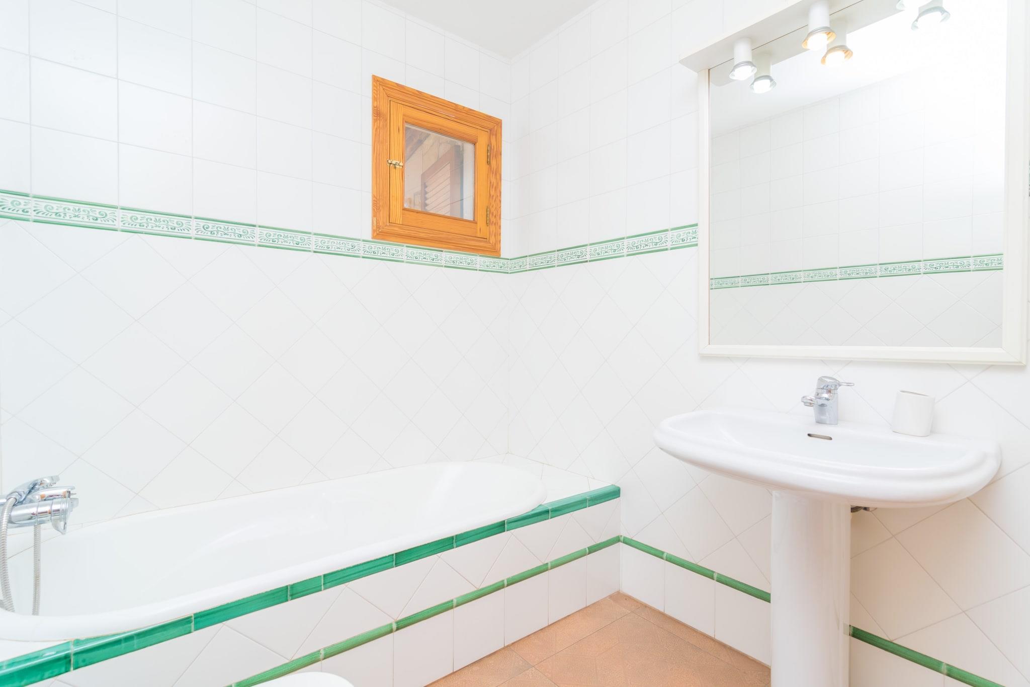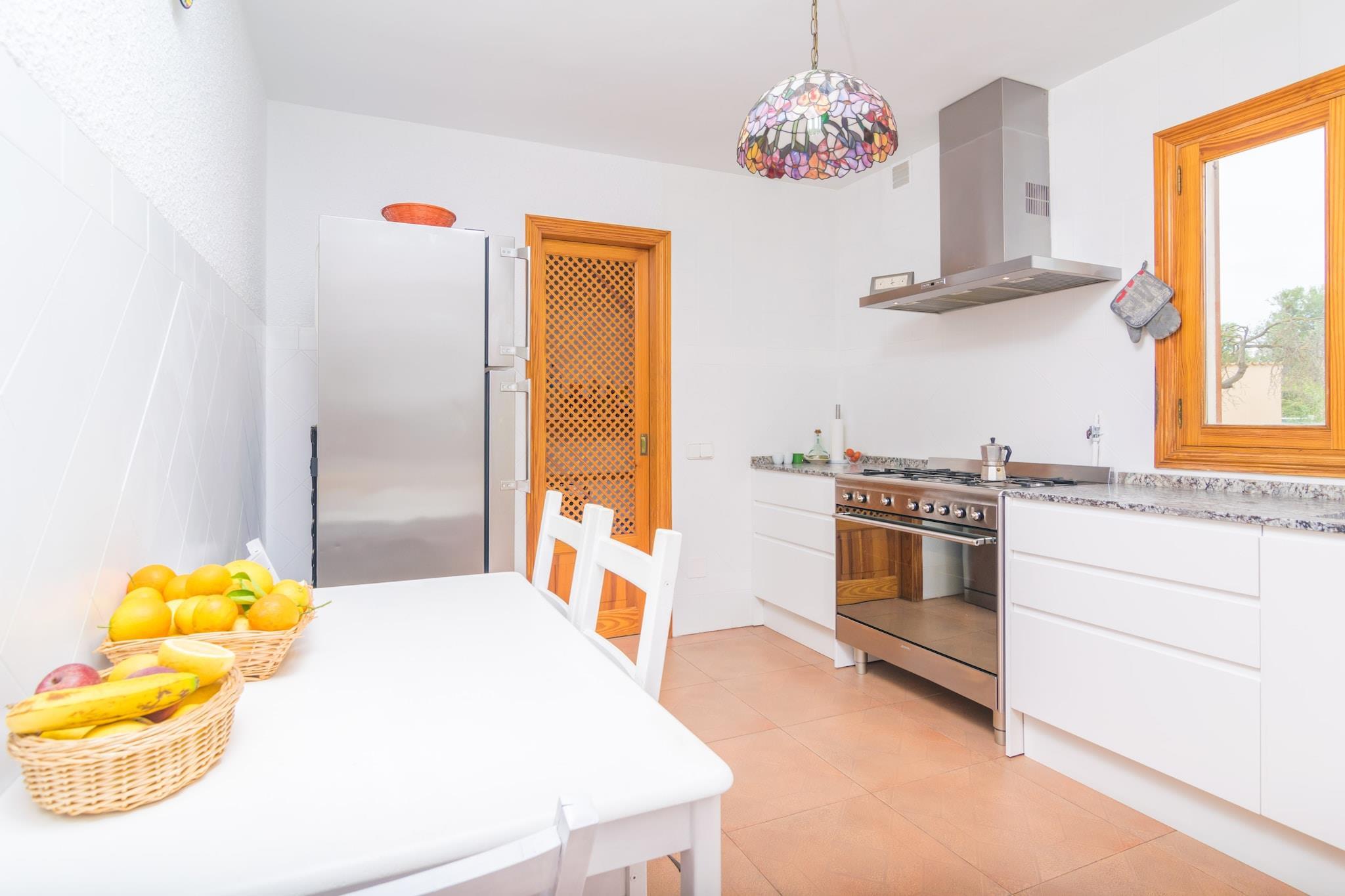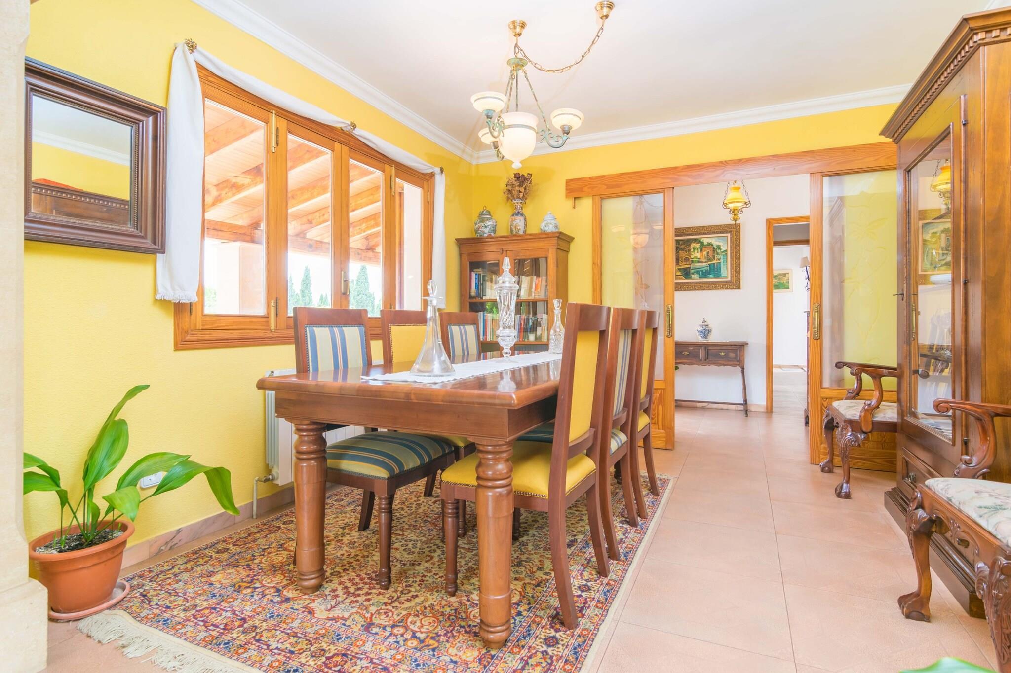 Ready to start the day with a refreshing and relaxing swim in the salt water pool? You can spend the morning enjoying its 8 x 4 meter and its meter and half depth. Then, you can not miss some delicious meat and vegetables prepared on barbecue and enjoyed under the porch overlooking the pool. And after a good dessert, the perfect plan is to lie back and relax on one of the 6 sun loungers. The plot is fenced and there are some neighbours in the proximity. Spread over a single floor and equipped with gas central heating, this wonderful house offers a beautiful living room with satellite TV, which you can enjoy lying on one of the sofas or in the armchair next to the wood cooker on colder days. The dining room, open to this space, is the perfect place to enjoy a meal with family or friends at the sturdy table. The kitchen, independent and with gas hob, has all the necessary appliances and utensils, as well as a pantry and a table with chairs for a quick breakfast or a snack while cooking. The laundry room has an ironing board, iron and washing machine. There are three bedrooms, with AC and wardrobe, to rest like at home, all equipped with two single beds. There is also a bathroom with bathtub that serves the whole house. If you need it, we will be happy to prepare a cot and a highchair for your baby. The property is located just outside the center of Palma, surrounded by fantastic and quiet residential areas and very close to the highway that connects to many routes to different parts of the island. Also just 800 meters away there is a bus stop for your convenience. As for shops, bars, restaurants, supermarkets, etc., of course the house is in a perfect place since the big city shopping areas at your disposal offer an infinite variety of all these services. If you love long walks, city visits, culture and excursions, let yourself be carried away by the cobbled streets of the center with its ornate patios, its mythical cafes, its churches and old buildings and, of course, the unique and majestic cathedral of La Seu. And for those who love the beach, the closest one is the small and heavenly cove of Illetes, which is located about 10 km from the property. Note: This accommodation is intended for families and guests over 28 years old who are looking for a peaceful stay. Bookings for parties or celebrations are not accepted. A copy of the identification document of all guests will be required to confirm the reservation. Consult the advertiser for possible charges. Pets are not allowed. The holding of events is forbidden. There is exterior parking for 4 cars. Distances Beach: 10.3 km - Illetes Airport: 11 km - Son Sant Joan Golf course: 10 km - Son Termens Town: 3 km - Son Sardina Train station: 4 km - Palma Bus stop: 0.800 km - Palma Ferry: 9 km - Port de Palma Hospital: 2.8 km - Son Espases Tourist license: ETV/10790The Ecotasa (tourist tax) must be paid cash on site when checking in. The amount varies between 0.55EURO/night and guest during the low season and 2.2EURO/night and guest during the high season. The tax is reduced by half from the 9th day of your stay. All guests have to pay the Ecotasa, except people under 16 years. Air Conditioning (March - December): 15 EUR/Night (optional)