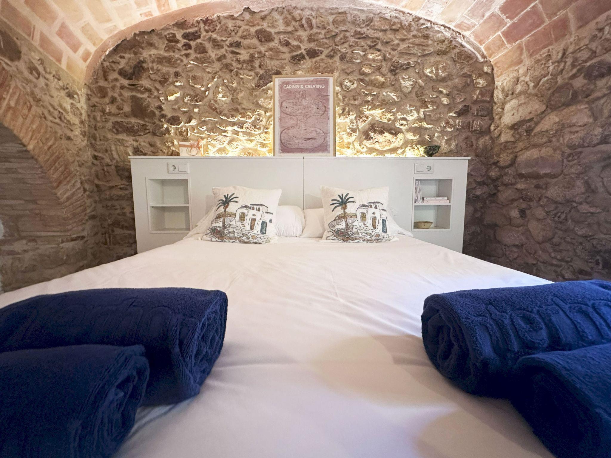 Terraced house "Can Caritat". In the centre of Pals, excellent location: right in the centre but still quiet, 6 km from the sea, 6 km from the beach. Public car park at 10 m. Shop 80 m, supermarket 6 km, restaurant, café 40 m, bus stop "Pals - Marquesina" 85 m, railway station "Flaça" 24 km, sandy beach "Platja de Pals" 6 km. Sports harbour 15 km, golf course (18 hole) 6 km, tennis 5 km. Nearby attractions: Pals - Pueblo Medieval 100 m, Parc Aventura (tirolinas.) 4 km, Peratallada - Pueblo Medieval 6 km, Castell del Montgrí 10 km, Islas Medas 17 km, Platja d'Aro - Avenida de tiendas 25 km. Please note: no lift. Not suitable for small children. The owner does not accept any youth groups. Part of the house is closed and unoccupied. Neighbourhood highly sensitive to noise. Quietness and good behaviour expected.