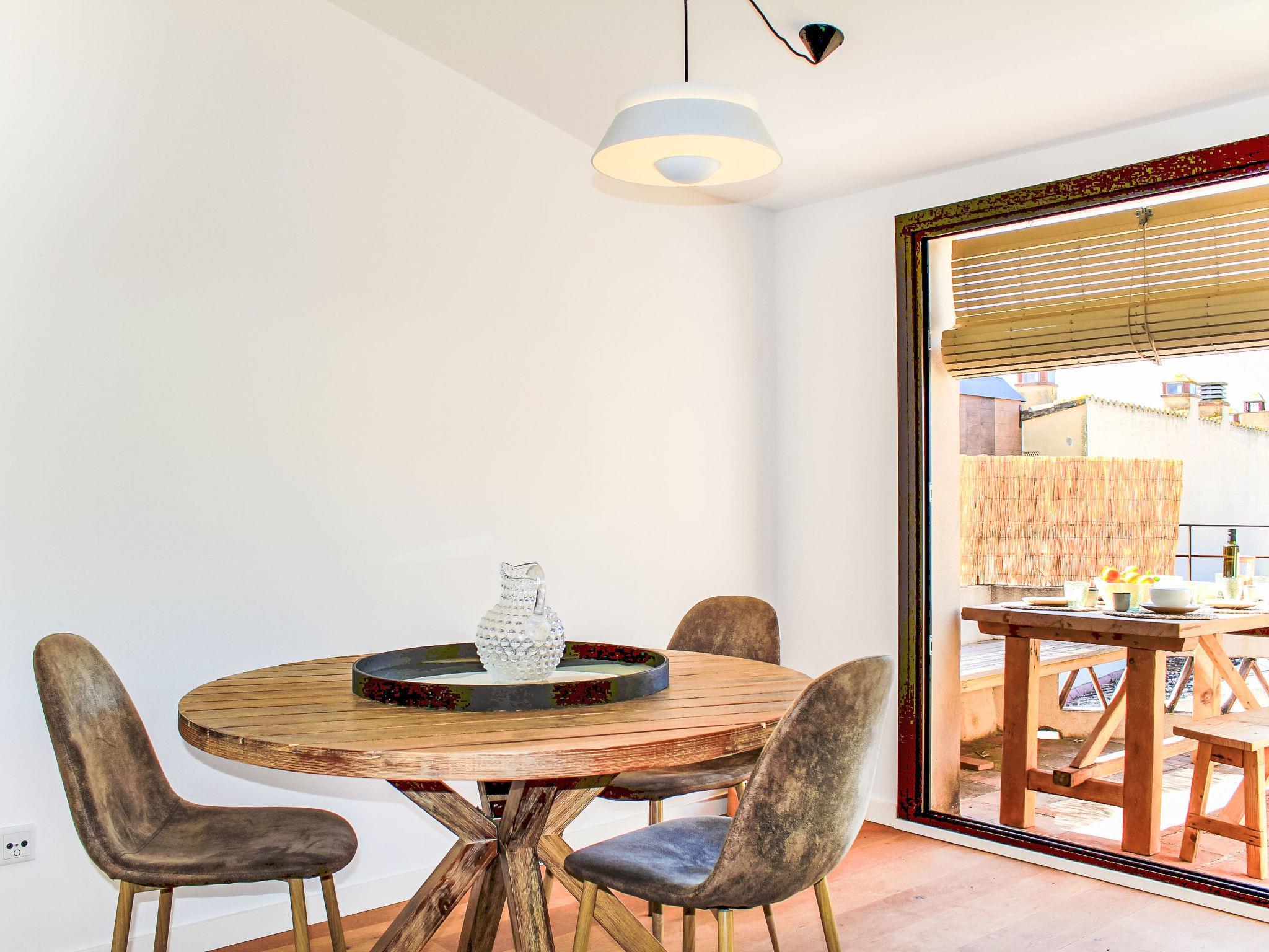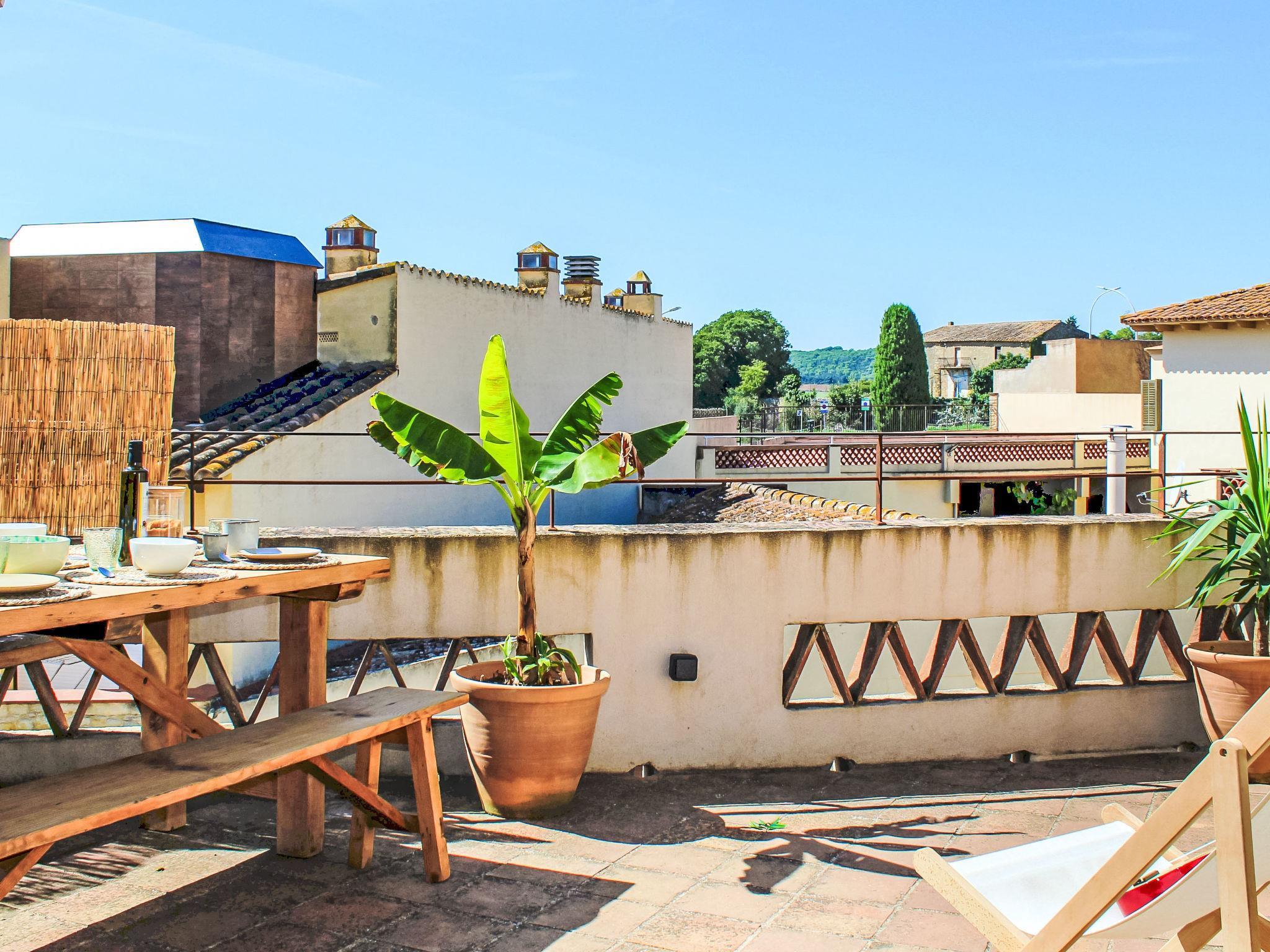 "Can Caritat", 6-room terraced house 120 m2 on 3 levels. Practical and comfortable furnishings: entrance hall. Exit to the terrace. Upper floor: living room. Dining room. 1 room with 1 french bed (150 cm, length 190 cm). 1 room with 1 french bed (140 cm, length 190 cm). Open kitchen (oven, dishwasher, 4 induction hot plates, toaster, kettle, electric coffee machine). Shower/WC. Heating. 2nd upper floor: living room. Exit to the terrace. 1 room with 1 french bed (135 cm, length 190 cm), shower/WC. 1 room with 1 french bed (140 cm, length 190 cm), shower/WC. Kitchen (oven, 4 induction hot plates, kettle, electric coffee machine). Exit to the terrace. Large terrace. Terrace furniture, sitting area. Beautiful view of the town. Facilities: washing machine, iron, hair dryer. Internet (WiFi, free). Please note: not suitable for small children. Non-smoking house, no parking. The house does not have a TV or microwave. HUTG-055650