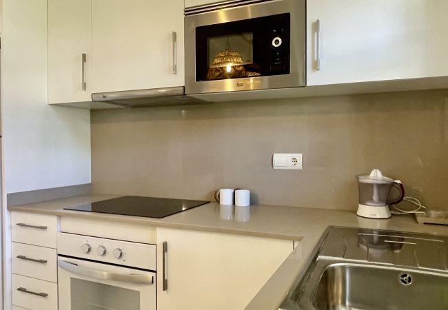 In the electric open plan kitchen, refrigerator, microwave, oven, freezer, washing machine, dishwasher, dishes/cutlery, kitchen utensils, coffee machine and toaster are provided.
