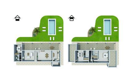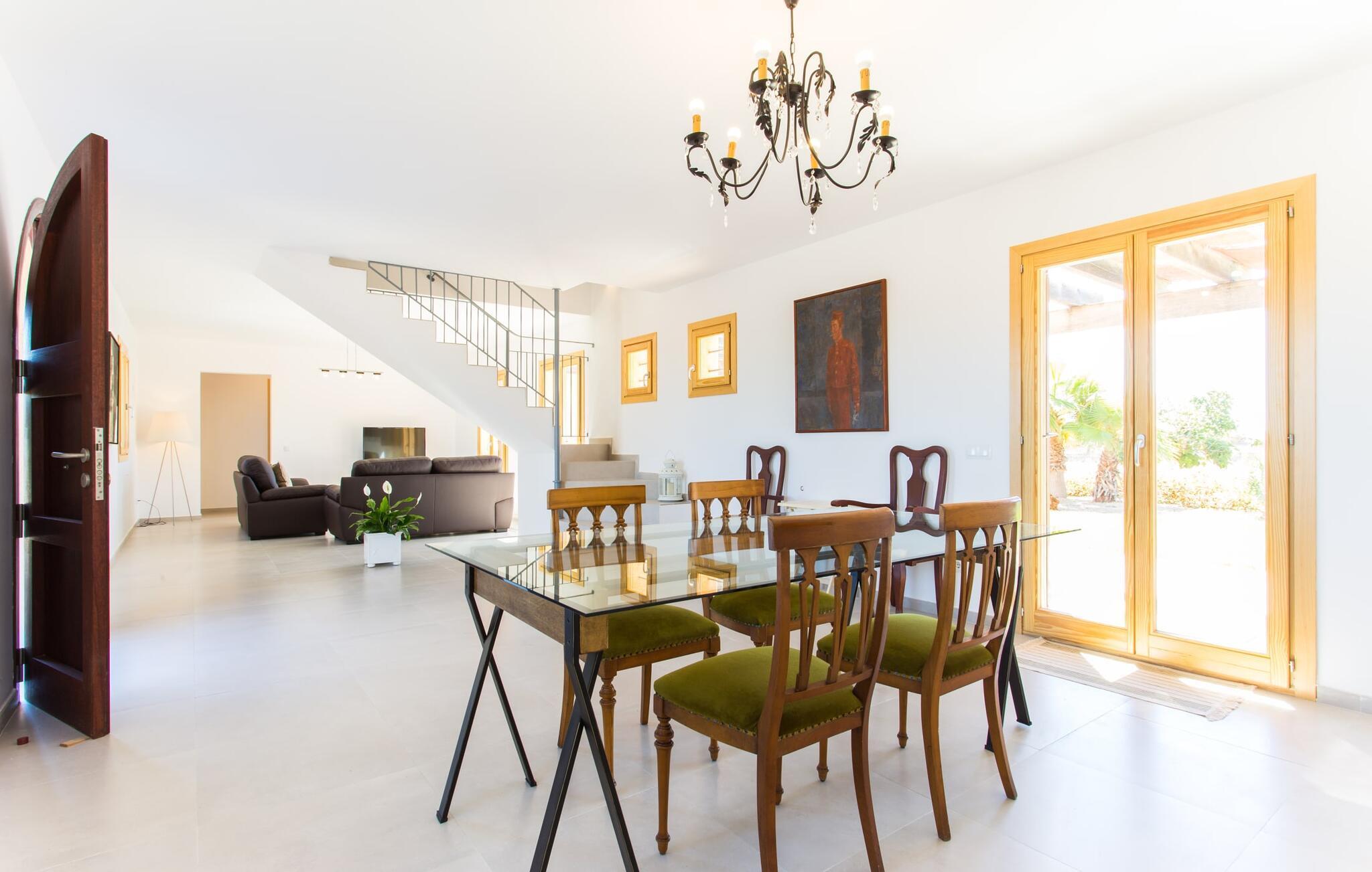 Aber der Innenraum ist kühl, fast ein wenig puristisch, mit klaren Linien. Der großzügig gestaltete, geschmackvolle Wohn- und Essbereich hat Loft-Charakter und eignet sich auch sehr gut für kleinere Teambesprechungen und kreative Pausen. Mehrere Flügeltüren öffnen sich zum Garten, geben den Blick frei auf die Palmenoase und lassen viel Licht herein. Auch die moderne, voll ausgestattete Küche steht im Dialog mit der Terrasse, sodass Speisen und Getränke stets auf kürzestem Weg an den Tisch gelangen. Ideal: Wenn der nächste Strand so nah ist, können Sie bequem nach Hause gehen, um einen Snack zu sich zu nehmen oder ein Nickerchen (Siesta) zu machen, und sich entweder im Schlafzimmer unten (das Badezimmer befindet sich direkt gegenüber) oder oben in einem der beiden oberen Doppelbetten niederlassen mit eigenem Bad und eigenem Balkon (die zweite Option bietet maximale Privatsphäre). Die einen blicken nach rechts, die anderen nach links, aber darüber, wer die schönere Aussicht hat, muss man sich nicht streiten. Und hier können Sie sich auch problemlos ausziehen, um sich für den Urlaub eine sanfte Sonnenbräune zu holen und Ihren Sommerkörper auf einer der zahlreichen Promenaden zu präsentieren.