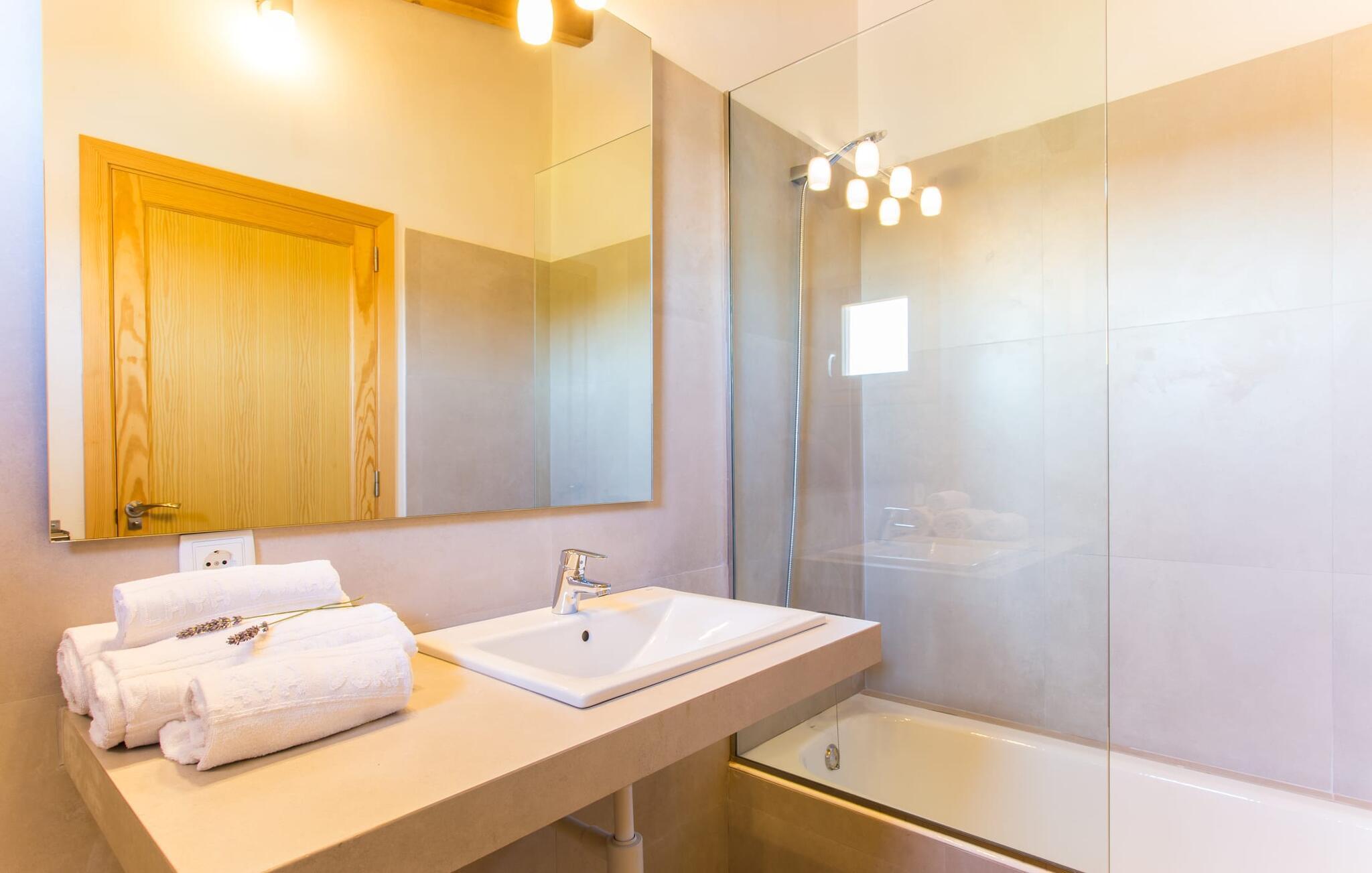 (Yacht-)Häfen, Strandperlen in allen Schattierungen, Promenaden mit Chic – das (hörbare) kleine Straßennetz rund um die Villa schafft ideale Verbindungen, um je nach Lust und Laune die Perspektive zu wechseln. Porto Cristo mit seiner malerischen Altstadt ist ein guter Anlaufpunkt, wenn es um ausgezeichnete Fischrestaurants oder einen (romantischen) Abendspaziergang geht; Wer sich dem Drachen der Coves del Drac in der Tiefe mutig gestellt hat, ist definitiv stärker als je zuvor. Im Süden, in S'Estany d'en Mas, empfehlen wir Ihnen wärmstens einen Besuch des weißen Sandstrandes von Cala Romàntica, wo täglich Glasbodenboottouren angeboten werden. Die 90 Meter lange Cala Varques in frischem Karibikblau ist außerhalb der Hauptsaison ein besonderer Paradiesort. Es muss jedoch zu Fuß oder mit dem Boot bezwungen werden. Im Vergleich dazu ist die Reise nach Cala d'Or, wo Mallorca „ein bisschen wie Ibiza“ ist, sehr einfach. Bade- und Einkaufsmöglichkeiten in unmittelbarer Nähe: Von unserer modernen Neubauvilla sind es nur wenige Schritte zum Strand und zum nächsten Supermarkt, nur 2 km zum Hafen von Porto Cristo und zur Strandpromenade mit Restaurants mit fantastischem Meerblick . Manacor, die drittgrößte Stadt Mallorcas, ist ebenfalls gut erreichbar und bietet eine Innenstadt als Fußgängerzone mit Cafés und Modeboutiquen sowie Museen, Busse und Bahnen für einen entspannten Ausflug nach Palma. S'Illot, Sa Coma und Cala Millor entlang der Küste garantieren eine Vielzahl an Stränden und tolle Orte für Wassersport.