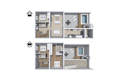 Im Inneren beeindruckt das Stadthaus weiterhin durch sein modernes, luftiges Design. Der großzügige, offene Wohn- und Essbereich sowie die L-förmige Küche befinden sich im Erdgeschoss. Die voll ausgestattete Küche bietet alles, was Sie für die Selbstverpflegung während Ihres Aufenthalts benötigen. Ein Schlafzimmer und ein Duschbad befinden sich ebenfalls auf dieser Ebene. Im Obergeschoss bieten zwei weitere Schlafzimmer mit eigenem Duschbad Komfort und Farbharmonie. Mit Heizung und Klimaanlage warm/kalt ist dieses Haus zu jeder Jahreszeit ideal für einen erholsamen Urlaub.