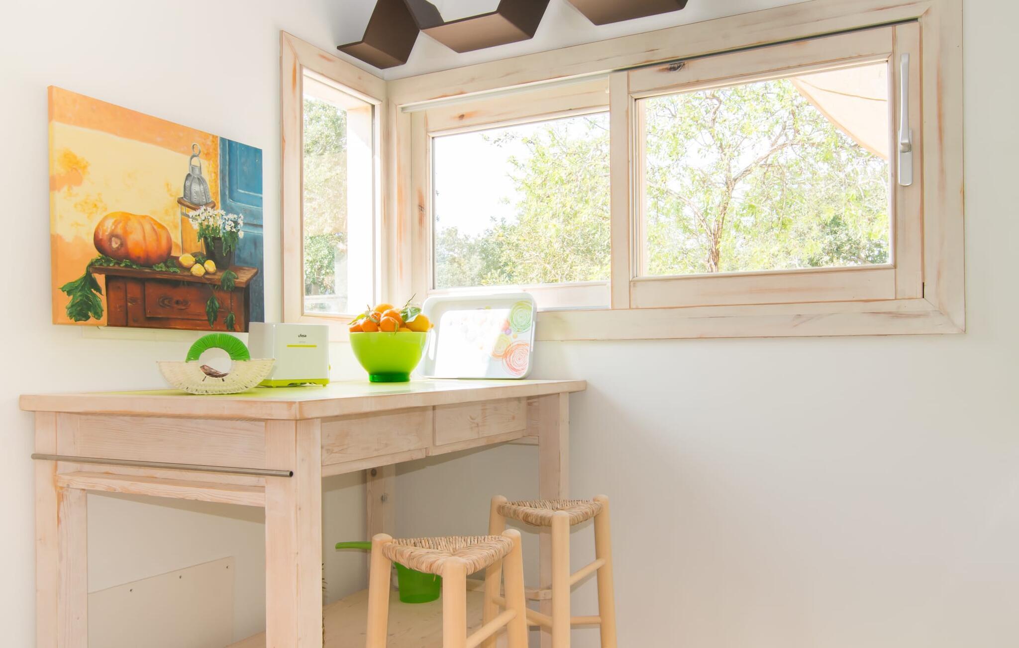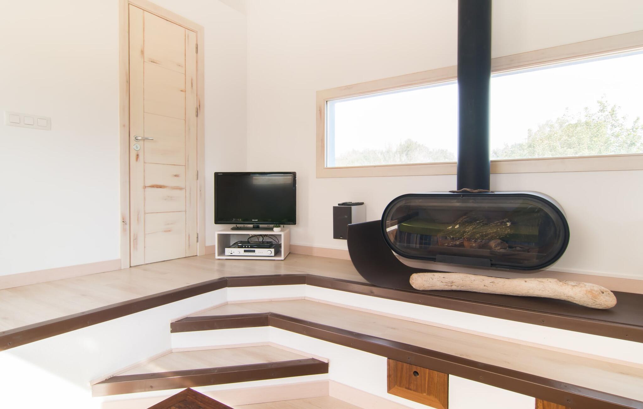 Sie haben sich bei der Größe der Wohnfläche dieser superschönen Studio-Villa, die ein tolles Ambiente auf wenig Platz bietet, nicht geirrt. Dieses kleine, lichtdurchflutete Zimmer bietet ein freundliches und dennoch absolut geschmackvolles Interieur, angenehm minimalistisch, aber mit unzähligen praktischen Details. Alle Möbel sind maßgefertigt und überzeugen durch ihr helles Design. Es gibt eine voll ausgestattete Küche aus gebeiztem Holz mit einem erhöhten Tisch und zwei eleganten Barhockern im gleichen Stil, die als Essbereich genutzt werden können. Lebhafte apfelgrüne Akzente ziehen sich durch die Küche und den Wohnbereich. Der Vorraum liegt nur ein paar Stufen tiefer als die Küche. Eine um die Ecke aufgestellte Sitzgruppe (auf Wunsch) bietet einen zusätzlichen Schlafplatz für Kinder. In den kühleren Monaten wird das Studio über den ovalen Kamin beheizt. Sie werden das Gefühl haben, auf Wolken zu schlafen, da der Schlafbereich buchstäblich über dem Wohnraum „schwebt“ und über eine Leiter zugänglich ist. Dort finden Sie zwei separate Matratzen, die ein bequemes Nest bilden – perfekt für verliebte Paare oder auf dem Weg dorthin. Das moderne Badezimmer mit ebenerdiger Dusche und einem Waschbecken auf einem Holzregal liegt auf der gleichen Ebene wie die Küche. Besonders praktisch ist in diesem Fall die Außendusche am Pool, die Sie im milden, warmen Klima gerne nutzen. Wir halten diese Villa für ein kleines Schloss, wie der Name schon sagt, und für ein beispielloses Meisterwerk in der Wohnraumnutzung, das dem Eigentümer hervorragend gelungen ist. Hier in diesem kleinen Wohnraum werden Sie sich besonders frei fühlen und merken, wie Sie mitten in der Natur zu Ihren Wurzeln zurückkehren können.