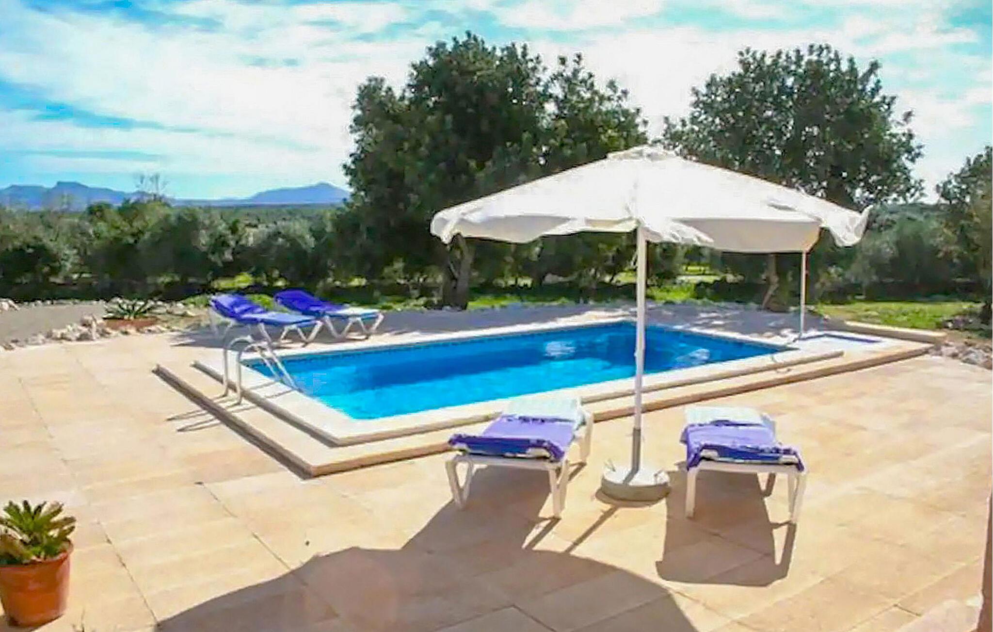Das Ferienhaus „Petit Saraix“ im Nordosten Mallorcas ist ideal für alle, die einen privaten Pool genießen oder spontane Ausflüge zum nur 7 km entfernten Strand der Bucht von Alcúdia unternehmen möchten. Der nach Südosten ausgerichtete Außenbereich bietet wunderschöne Ausblicke über Felder bis zum Meer und Berge in der Nähe von Artà. Die Villa bietet Platz für bis zu 8 Gäste, ideal zum Frühstück auf der überdachten Veranda, zum Faulenzen am Pool oder zum abendlichen Grillen, mit einfachem Zugang über eine Landstraße zum Strand von Can Picafort 7-minütige Fahrt.