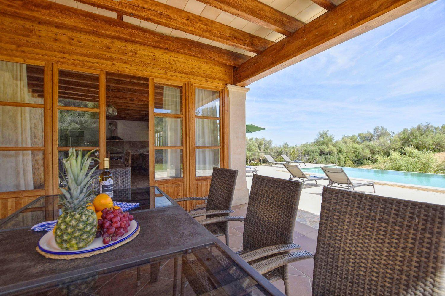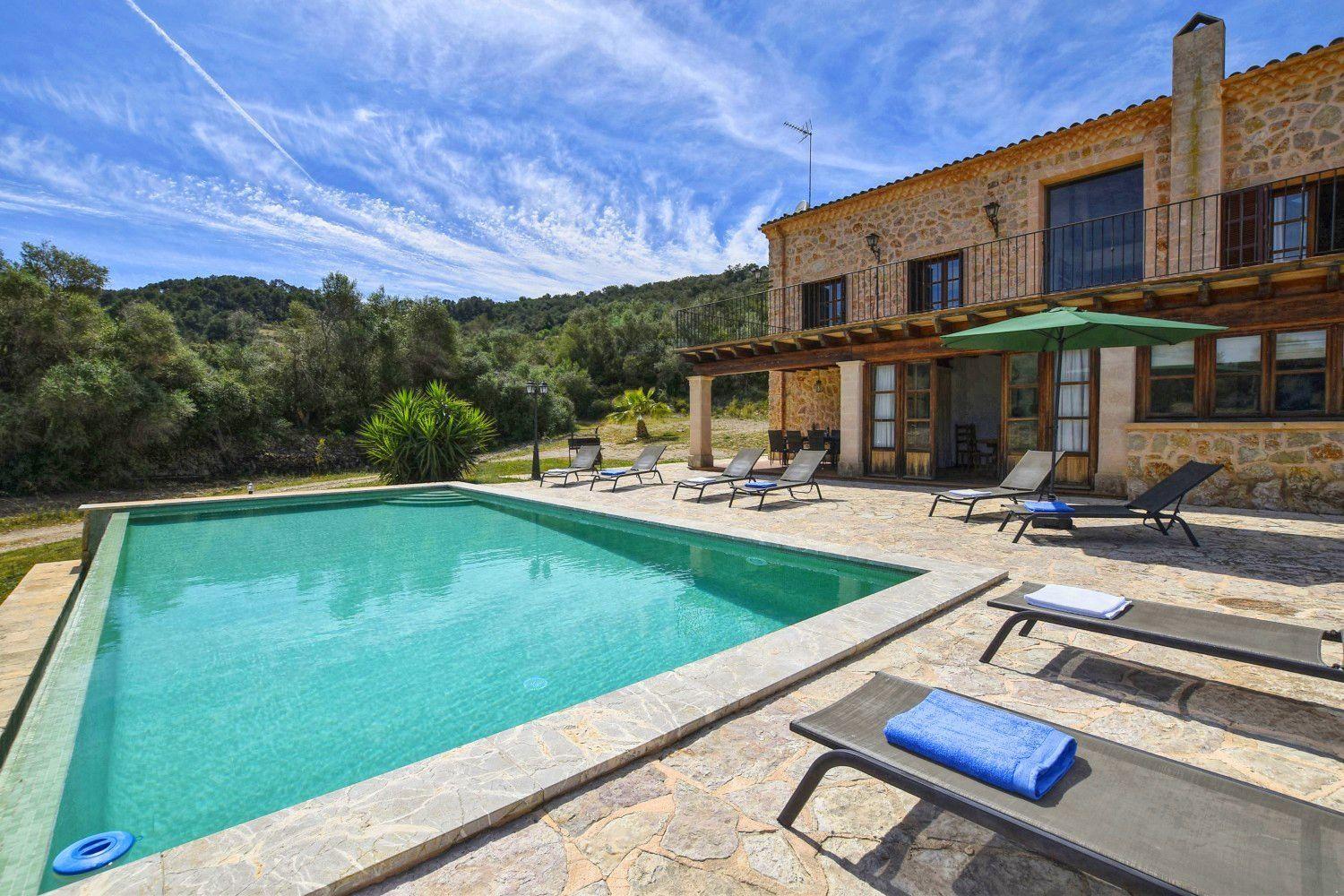 Country house, recently built preserving the rural style of its surroundings, in a beautiful estate of 20.000 m2, on the outskirts of the village of Petra. The property has a house of 400 m2, with dream interiors. It is spacious and bright, tastefully decorated and furnished with top quality furniture. It has a beautiful entrance, typical of rural houses, a living-dining room open to the porch, a large and modern kitchen, 2 double bedrooms, 2 twin bedrooms and 4 bathrooms, one of them en suite and with hydromassage.