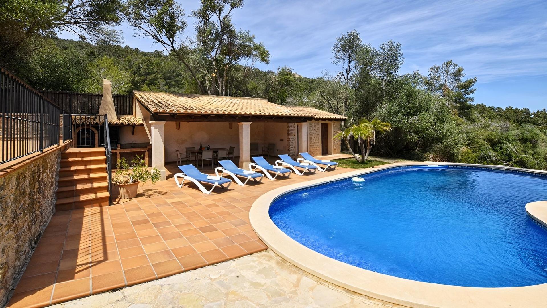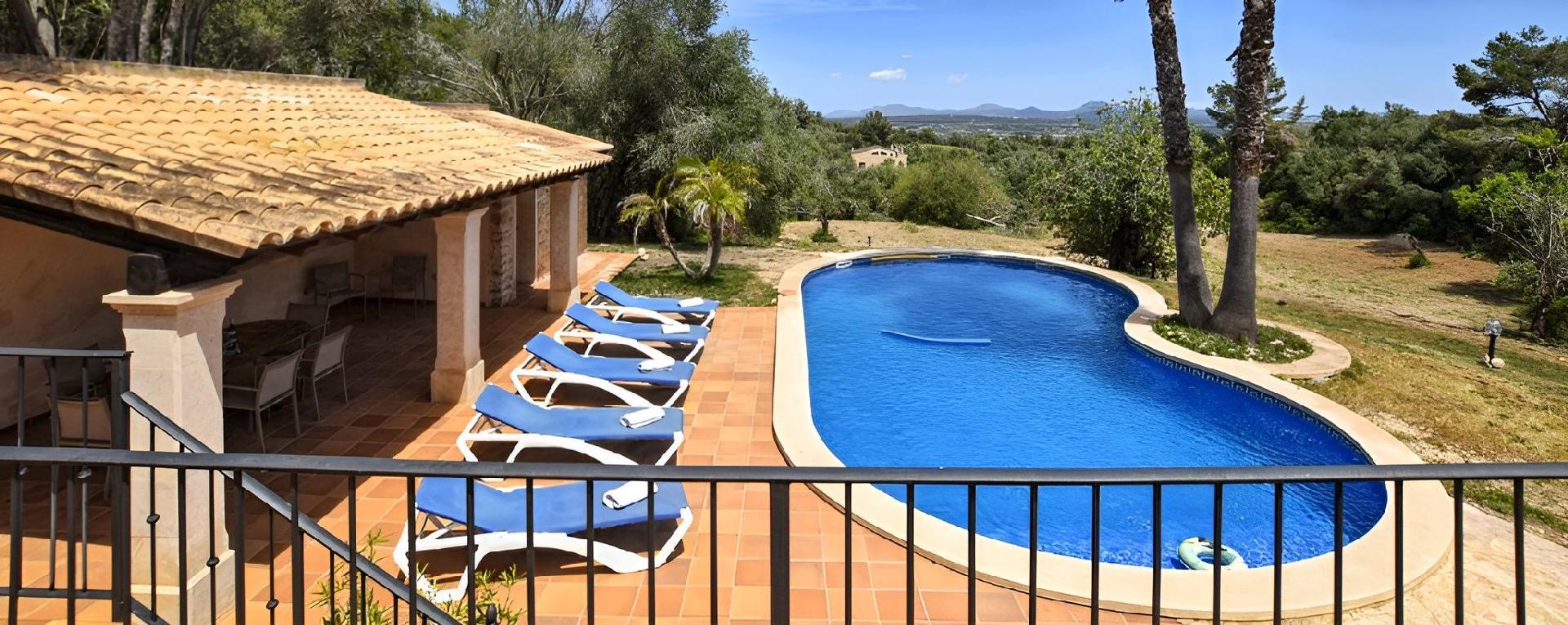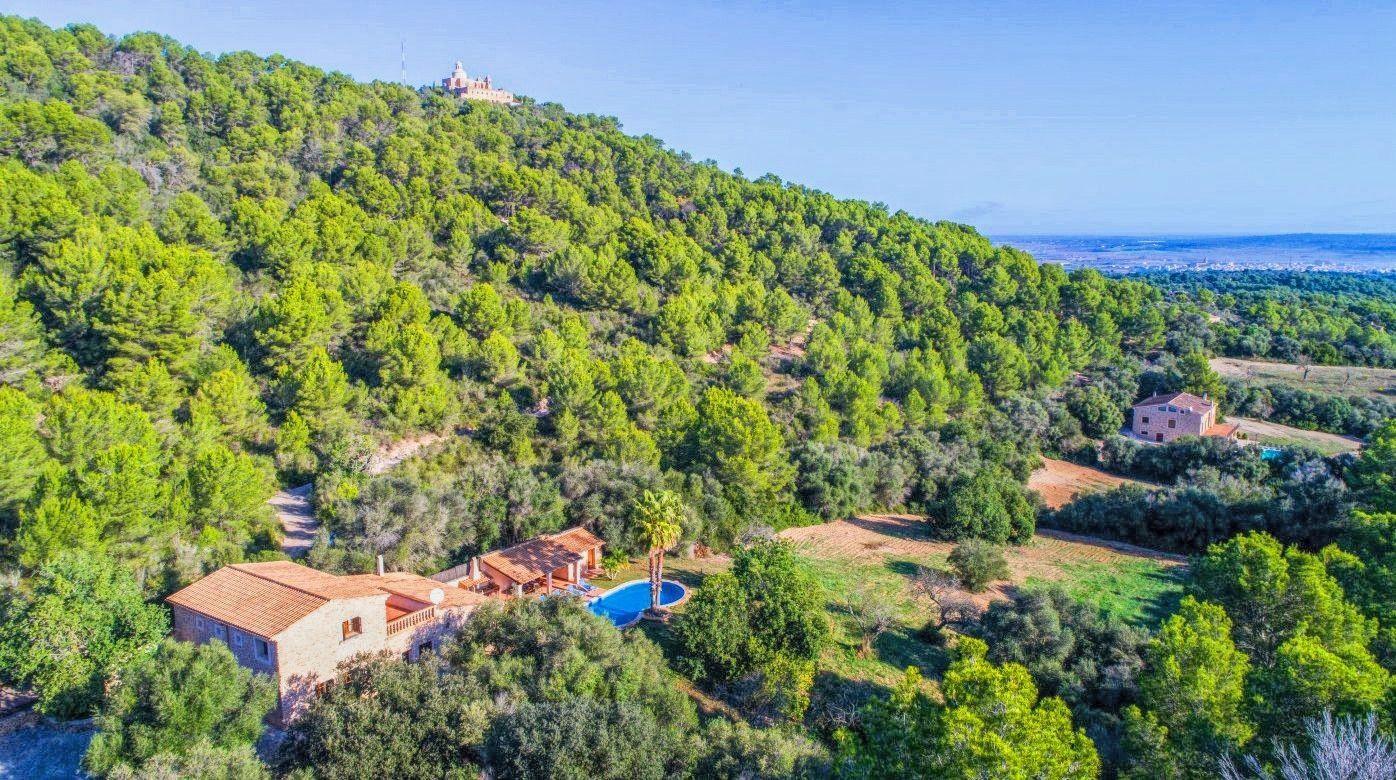 Old house with thick stone walls, built in 1919, and recently restored with a lot of character, luxuriously equipped and decorated. Oil central heating. Situated on a large estate of 20.000 m2, near the village of Petra, on top of a hill with magnificent panoramic views. The house, of 270 m2, is distributed in 2 floors with spacious and elegantly decorated rooms in classic Majorcan style, with many restored antique furniture, impeccable finishes, such as wooden beams and interior walls with exposed stone, a large living-dining room with fireplace, a fantastic fully equipped kitchen, 4 bedrooms and 5 bathrooms. It also has a well kept and extensive garden with many trees, a nice furnished porch and a swimming pool with solarium in a beautiful environment with lots of nature. It is situated about 3 km from the village and 20 km from the sea and the beach.