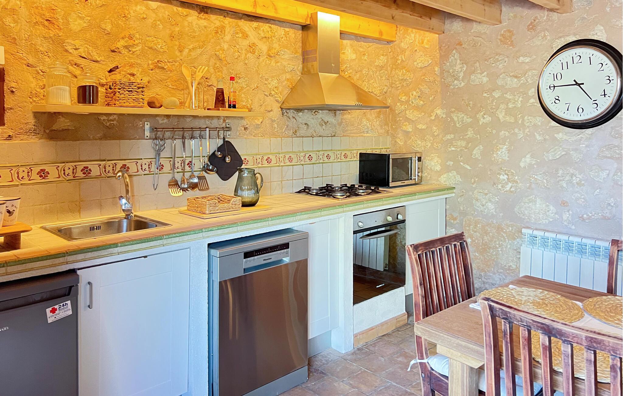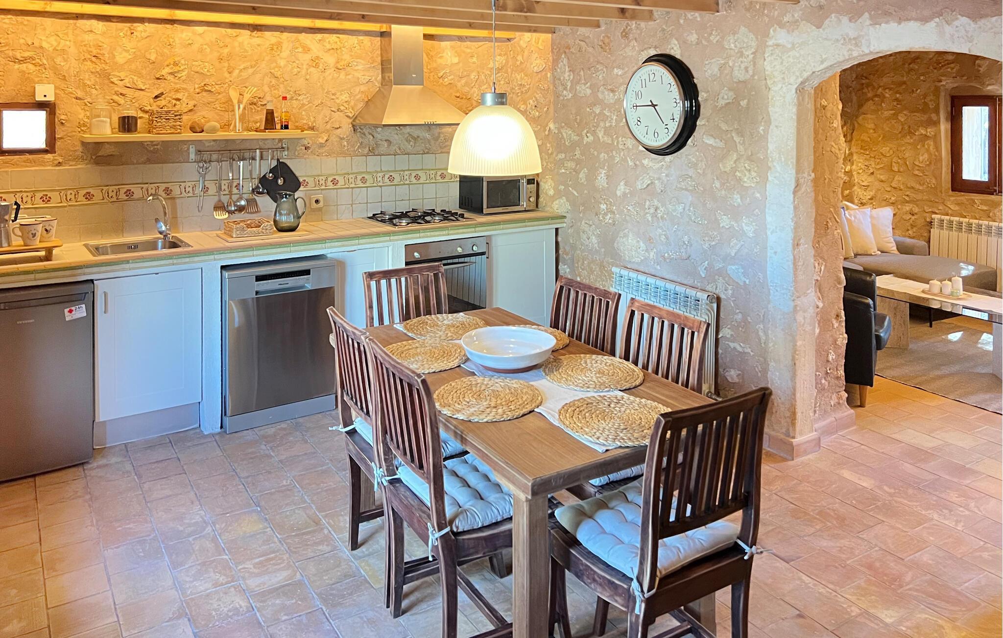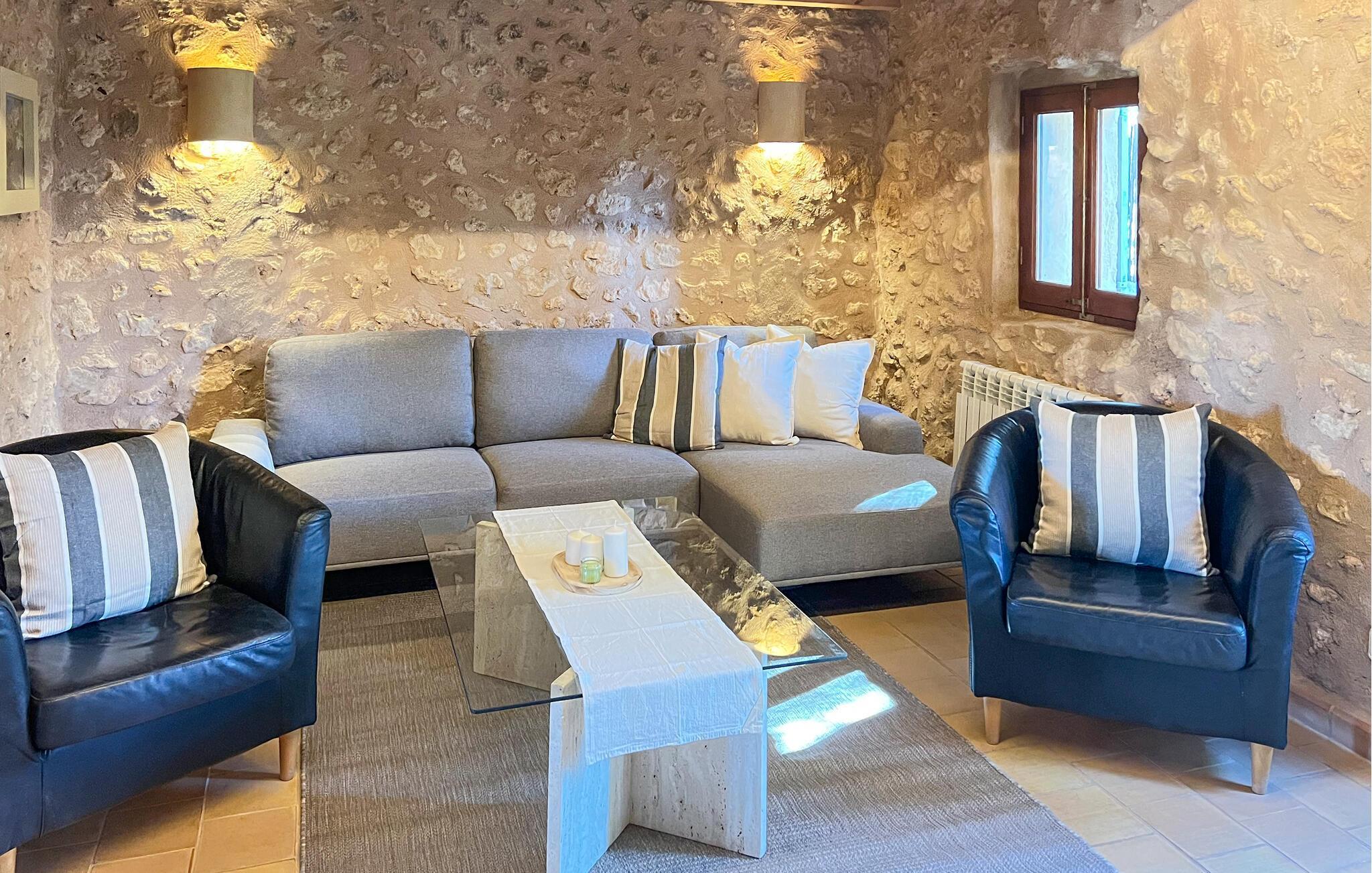 Im Inneren sorgen Natursteinelemente, Sichtbalken und typisch mallorquinische Fliesen für ein warmes, einladendes Ambiente. Entspannen Sie sich im Wohnzimmer mit Ledersesseln oder genießen Sie einen Film auf dem großen Flachbildfernseher. Die voll ausgestattete Küche und der großzügige Essbereich machen die Zubereitung von Mahlzeiten zum Vergnügen. Drei gemütliche Schlafzimmer sorgen für erholsame Nächte, während zwei moderne Badezimmer für Komfort sorgen. Villa "Pina“ ist perfekt für alle, die einen idyllischen Rückzugsort auf Mallorca suchen.