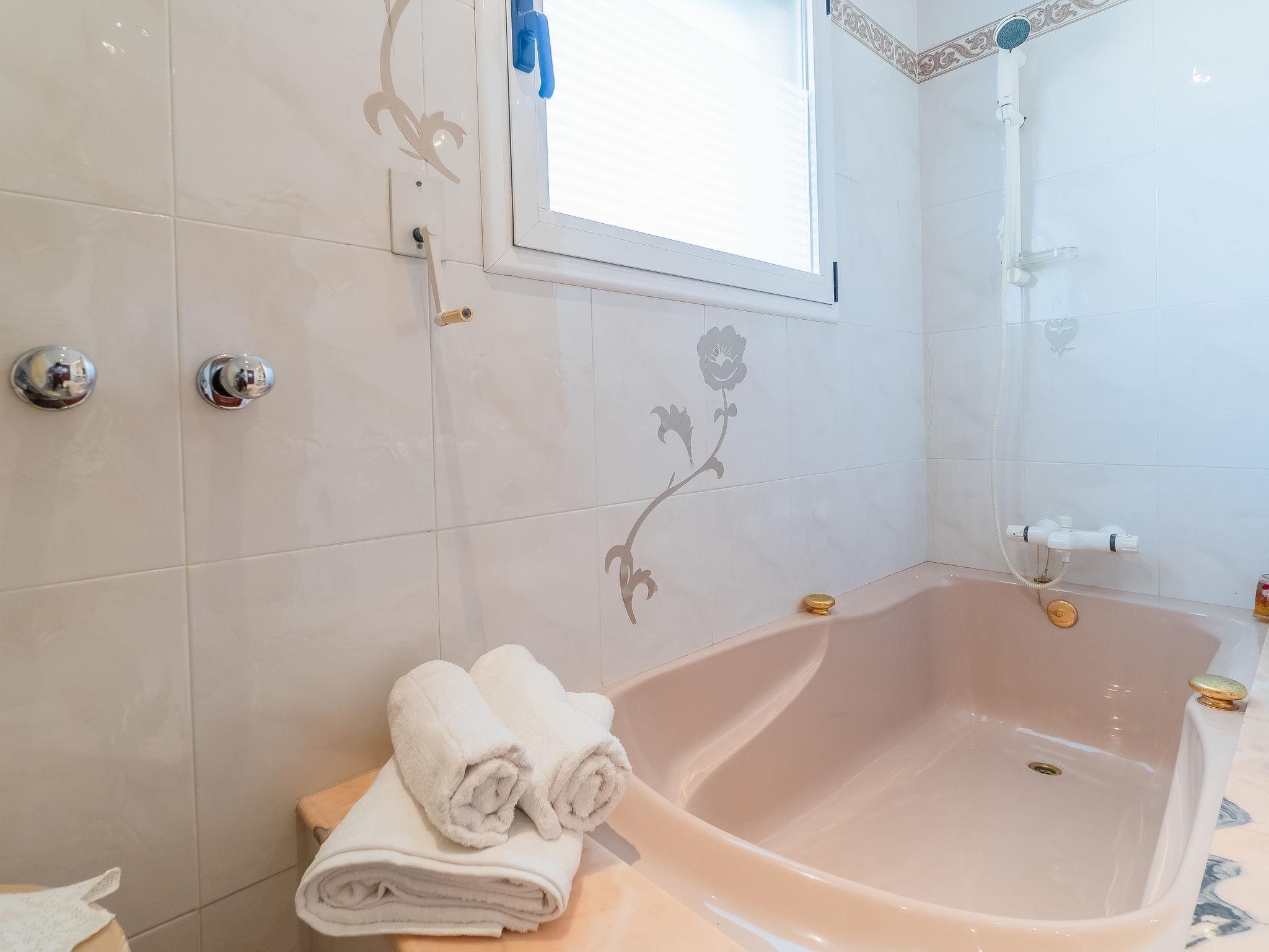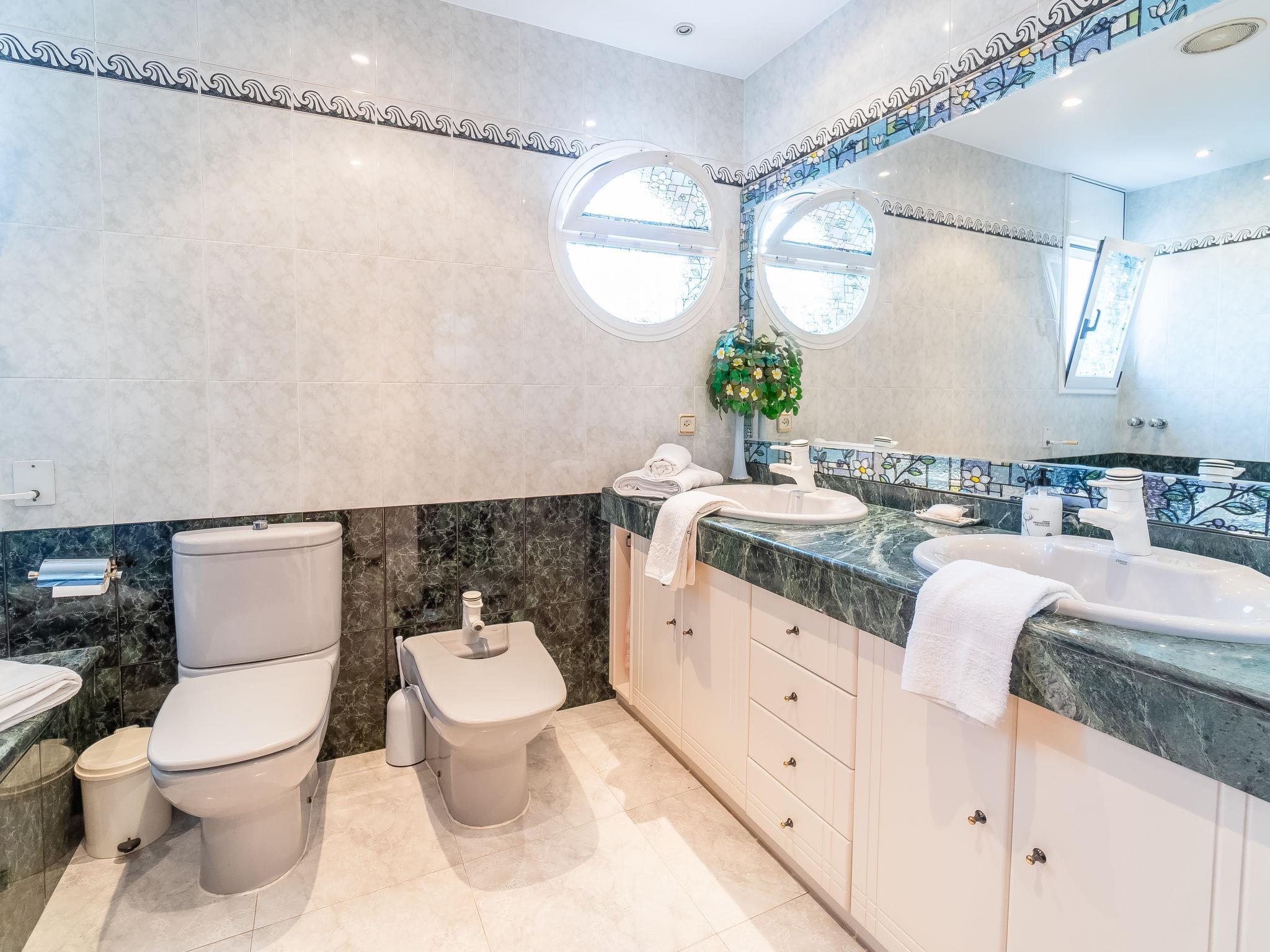 "Aurea", 5-room house 203 m2. Comfortable and beautiful furnishings: living/dining room with dining table, digital TV, gas heating and air conditioning. Exit to the garden. Lounge with digital TV and air conditioning. Kitchen (oven, dishwasher, 4 induction hot plates, toaster, microwave, electric coffee machine) with dining table, digital TV and air conditioning. Exit to the patio. Sep. WC. Upper floor: 1 room with 1 french bed (160 cm, length 200 cm), bath/bidet/WC, gas heating and air conditioning. 1 room with 1 french bed (150 cm, length 190 cm), gas heating and air conditioning. 1 room with 2 beds (90 cm, length 190 cm), gas heating and air conditioning. 1 room with 2 beds (90 cm, length 190 cm), air conditioning. Exit to the balcony. Bath/bidet/WC. Balcony, patio. Terrace furniture, balcony furniture, barbecue. Facilities: washing machine, iron, hair dryer. Internet (WiFi, free). Parking (1 car). HUTB-066896 // Reg. Nr.: ESFCTU00000809800012442200000000000000000HUTB-0668967