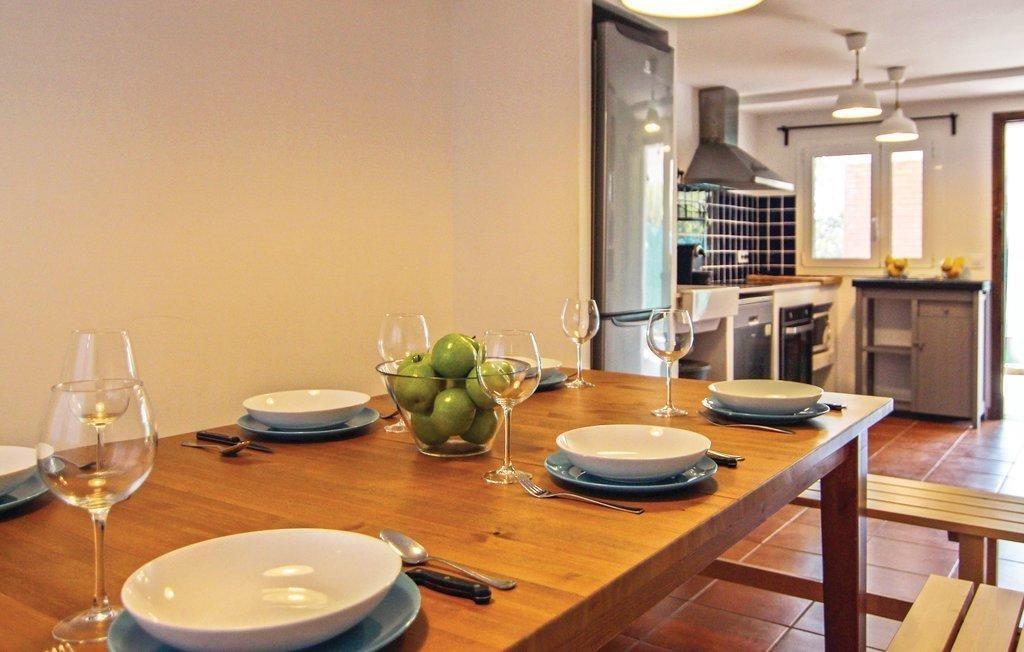 It has 5 spacious and exquisitely decorated bedrooms, 4 of them with QUEEN SIZE bed and another one with triple bunk bed, perfect for children. Living room with LCD TV and comfortable sofas, large dining room with fully equipped kitchen with all the appliances you might need (dishwasher, oven, ceramic hob, microwave, washing machine, wine fridge...). Two bathrooms (one on each floor), in which we can find: Jacuzzi bathtub - hydromassage and shower in one of the bathrooms. Second bathroom with 2 showers and hydromassage column. We also offer our sunny private swimming pool of 6mx4m, saline water, with a variable depth of 0,50cm to 1,60m, ideal for cooling off on hot days.