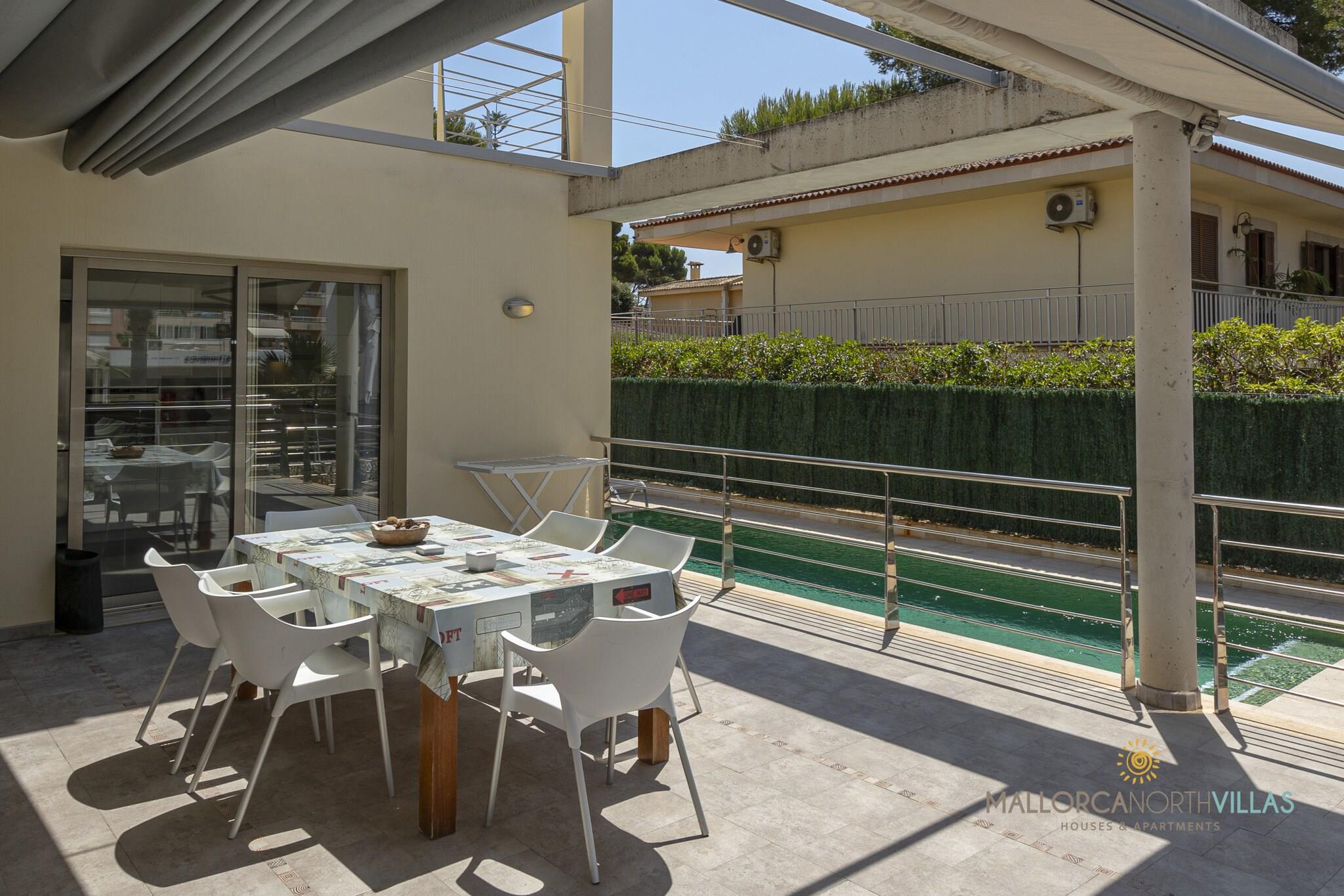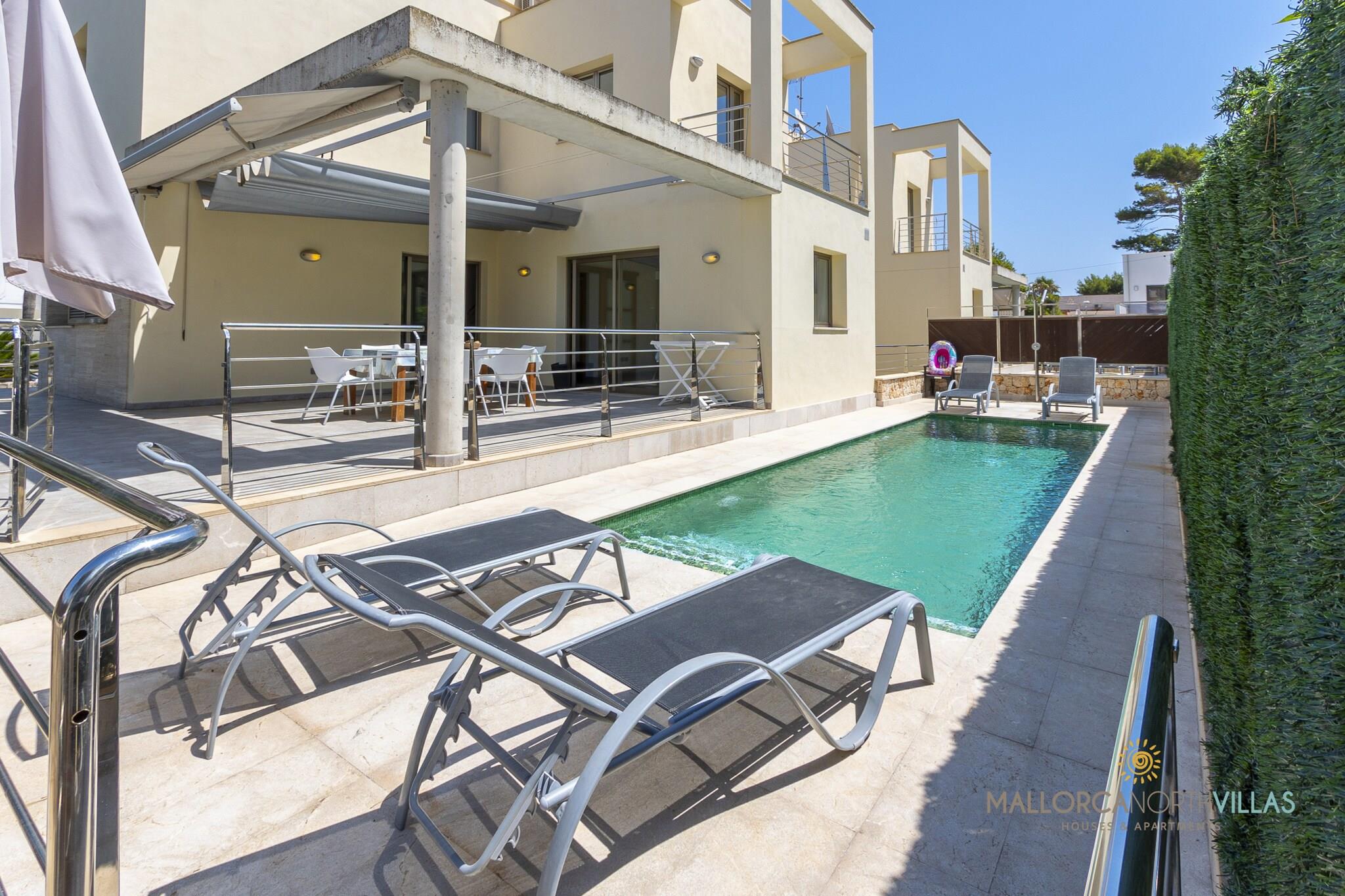 This modern and tastefully furnished villa offers 3 comfortable bedrooms and accommodates up to 6 guests in 180 m² of stylish living space. Situated just 50 meters from the sandy shores of Playas de Muro, the villa provides a family-friendly and serene environment by the sea. Guests can enjoy a private swimming pool, a fenced plot for added security, and a terrace equipped with outdoor furniture for relaxing or dining. Additional amenities include Wi-Fi, air conditioning, satellite TV in multiple languages, a washing machine, barbecue, and a safe, ensuring both comfort and convenience throughout the stay. The villa’s prime location places guests close to various attractions and amenities. Within walking distance, you'll find a supermarket just 150 meters away and popular dining spots like Restaurante Can Boy and Royal Beach Gastrosenses, located 180 and 200 meters away, respectively. Nature enthusiasts can explore the nearby Parc Natural de s’Albufera, only 1 km from the villa. For family fun, the Hidropark water park is just 6 km away, while cultural and historical attractions await in the charming towns of Alcúdia and Pollensa, both a short drive away. Golf enthusiasts will appreciate the proximity to Club de Golf Alcanada and Pollensa Golf Club. The villa features a fully equipped independent kitchen with modern appliances, including a glass-ceramic hotplate, refrigerator, microwave, oven, freezer, and dishwasher. Guests can also make use of smaller appliances like a coffee machine, toaster, kettle, and juicer, ensuring effortless meal preparation.