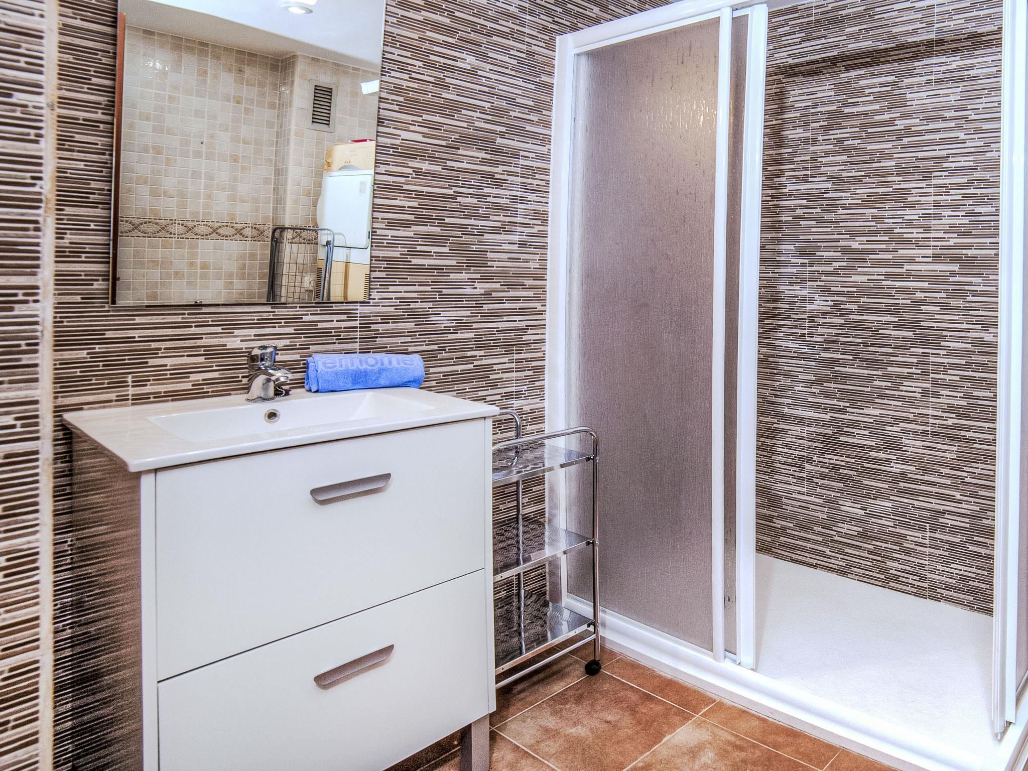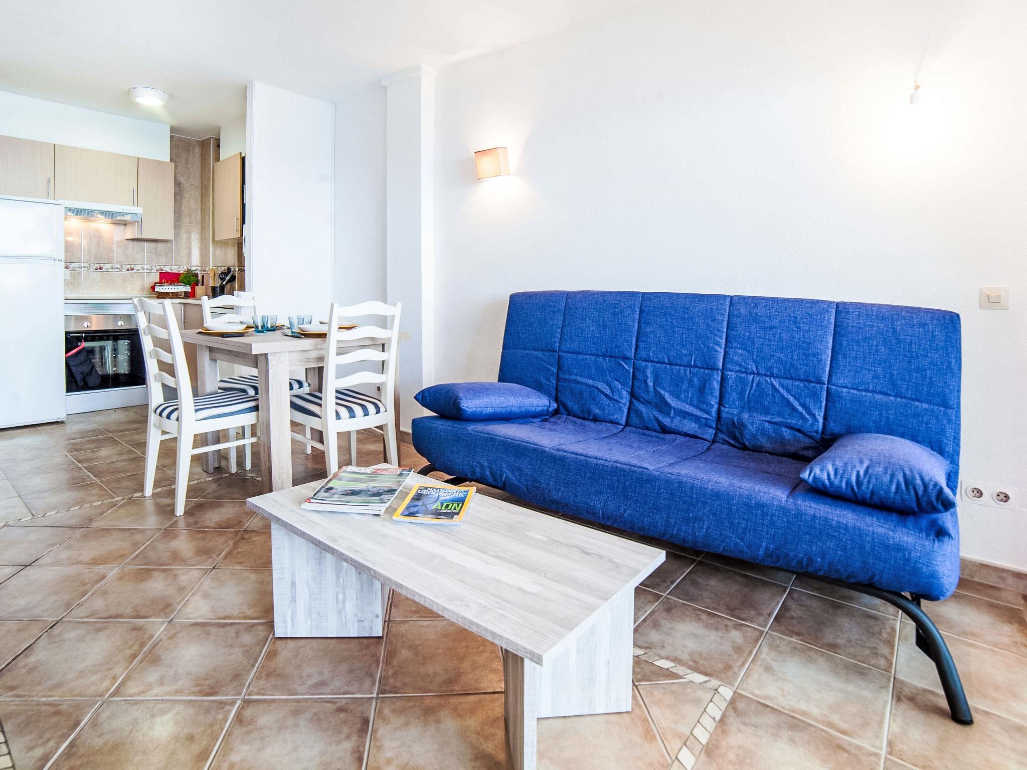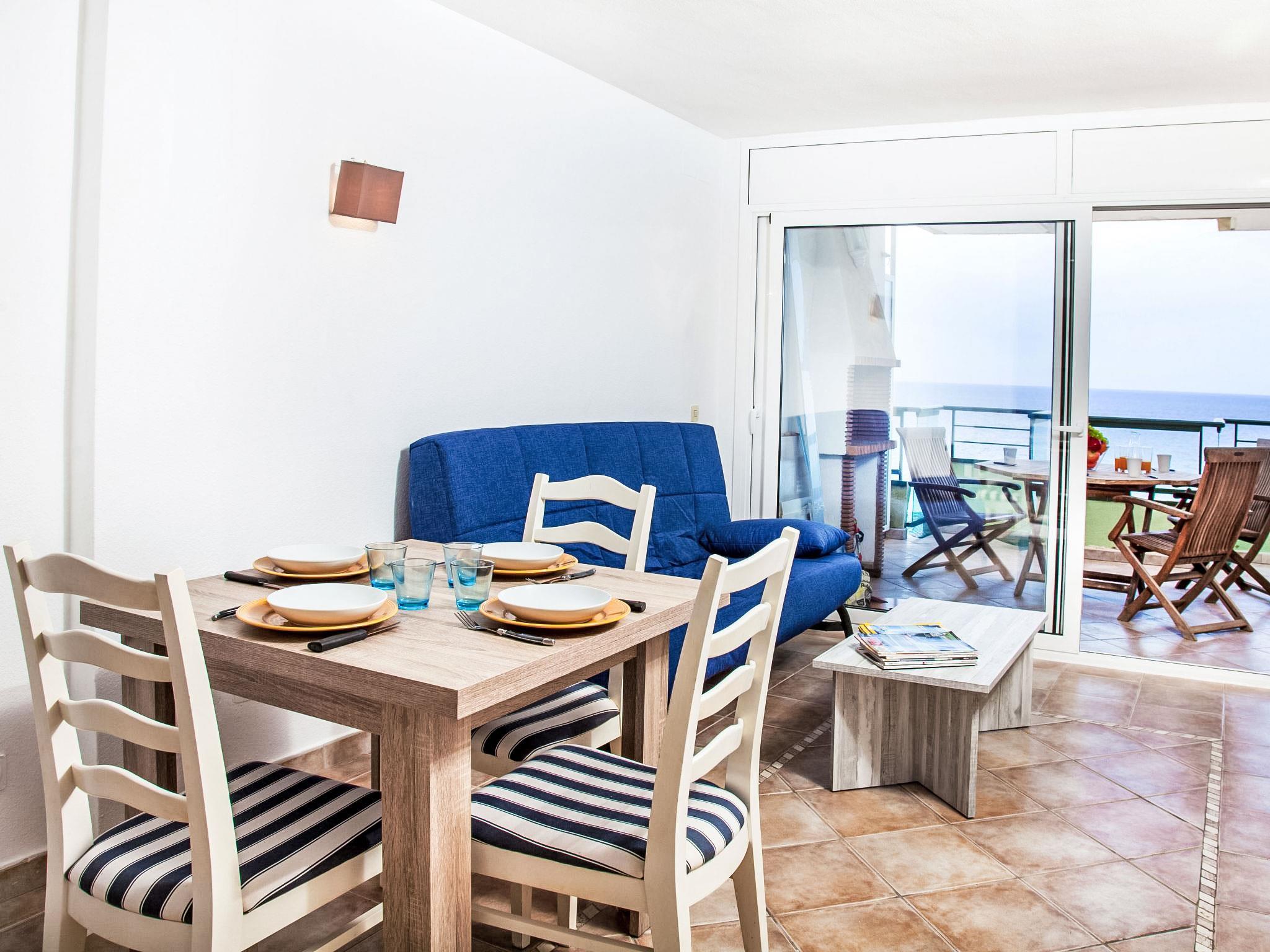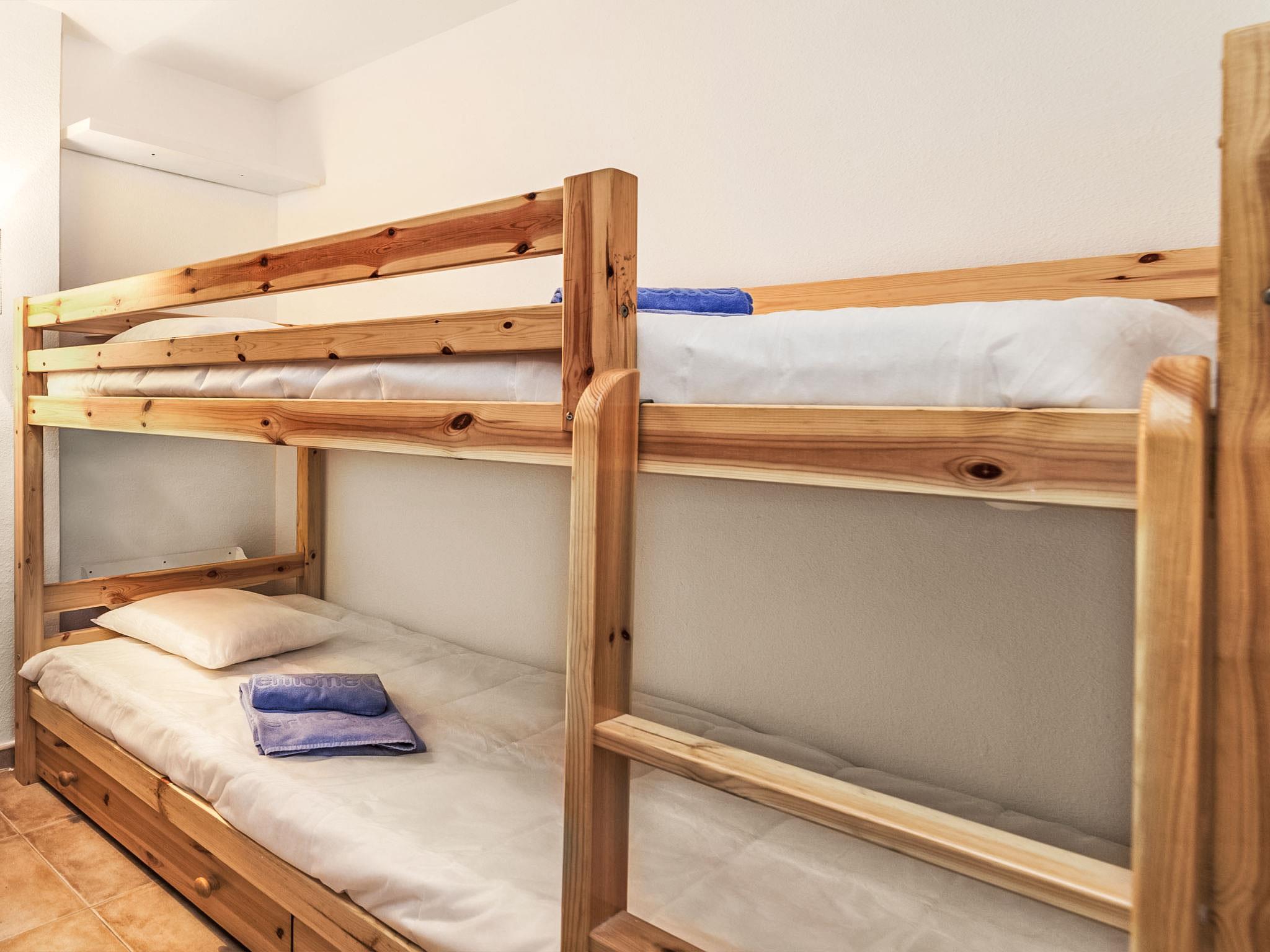 "Vermell", 3-room apartment 30 m2 on 8th floor. Renovated in 2017, practical furnishings: living/dining room with digital TV and air conditioning. Exit to the terrace. 1 room, without window with 1 french bed (150 cm, length 190 cm), electric heater. 1 room, without window with 1 x 2 bunk beds (80 cm, length 180 cm), electric heating. Kitchen-/living room (oven, dishwasher, 3 ceramic glass hob hotplates, toaster, kettle, microwave, electric coffee machine). Shower/WC. Electric heating. Terrace. Terrace furniture. Marvellous view of the sea. Facilities: washing machine, iron. Internet (WiFi, free). Please note: non-smokers only. TV only ES. HUTG-027555 // Reg. Nr.: ESFCTU00001701700010748600000000000000000HUTG-0275551