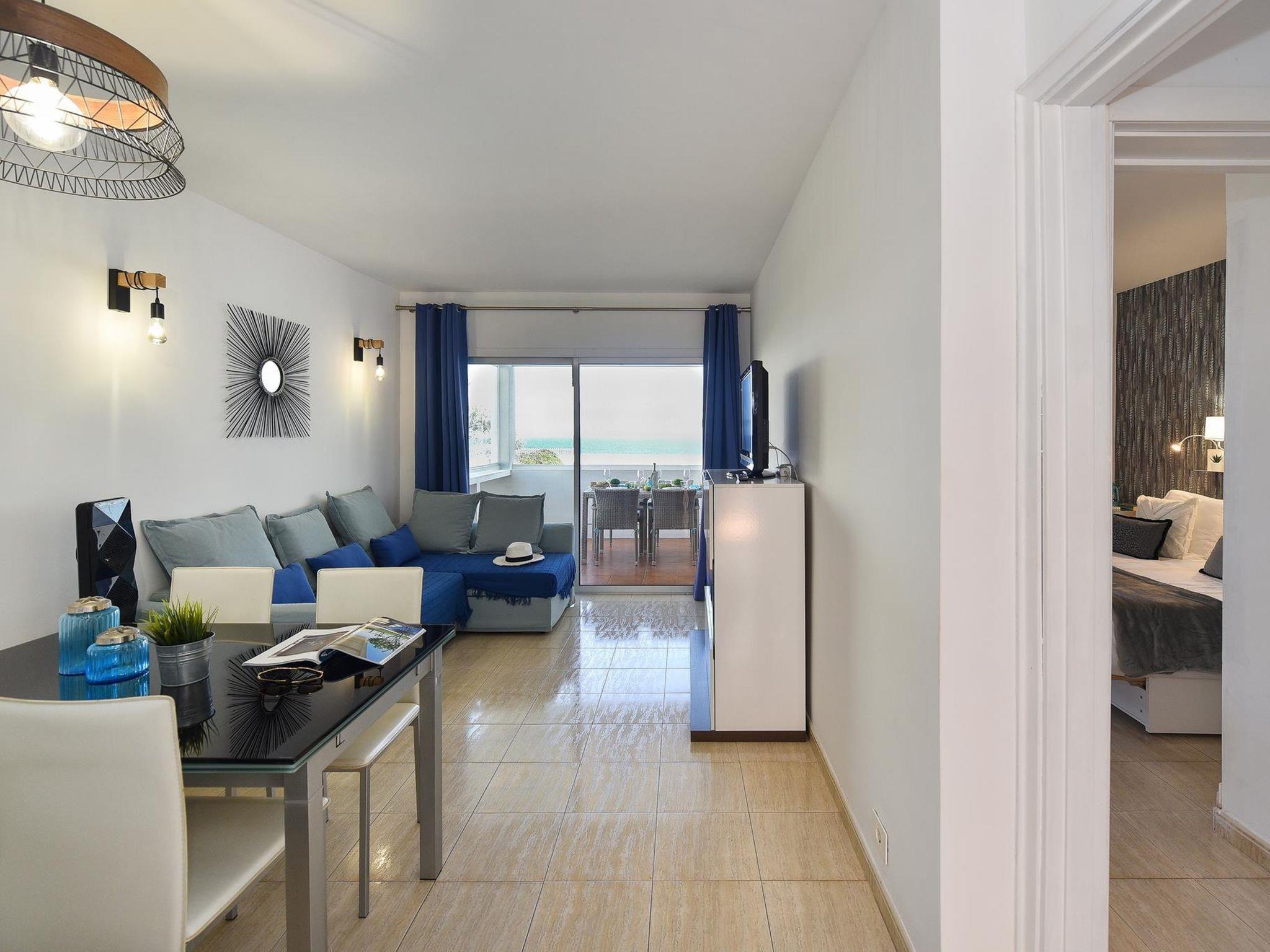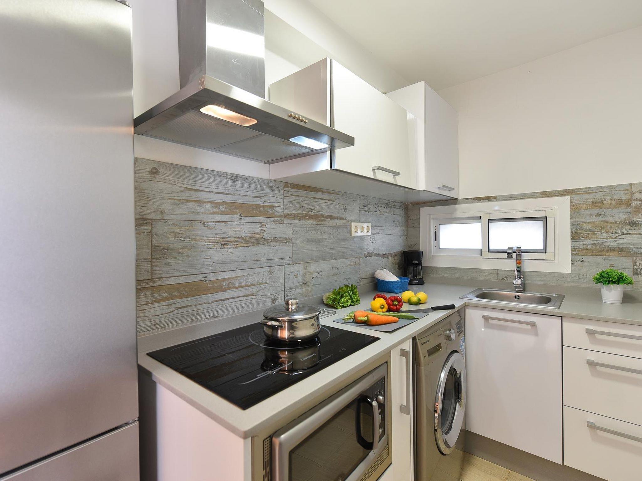 "Aida 202", 2-room apartment 55 m2. Comfortable and modern furnishings: living/dining room with dining table and digital TV. Exit to the balcony. 1 room with 1 french bed. Exit to the balcony. Kitchen (2 ceramic glass hob hotplates, toaster, kettle, microwave, freezer, electric coffee machine). Shower/WC. Balcony. Balcony furniture. View of the sea. Facilities: washing machine, children's high chair, baby cot for up to 2 year olds, hair dryer. Internet (WiFi, free). Please note: non-smokers only. VV-35-1-0018066 // Reg. Nr.: ESFCTU0000350130003259010000000000000VV-35-1-00180663