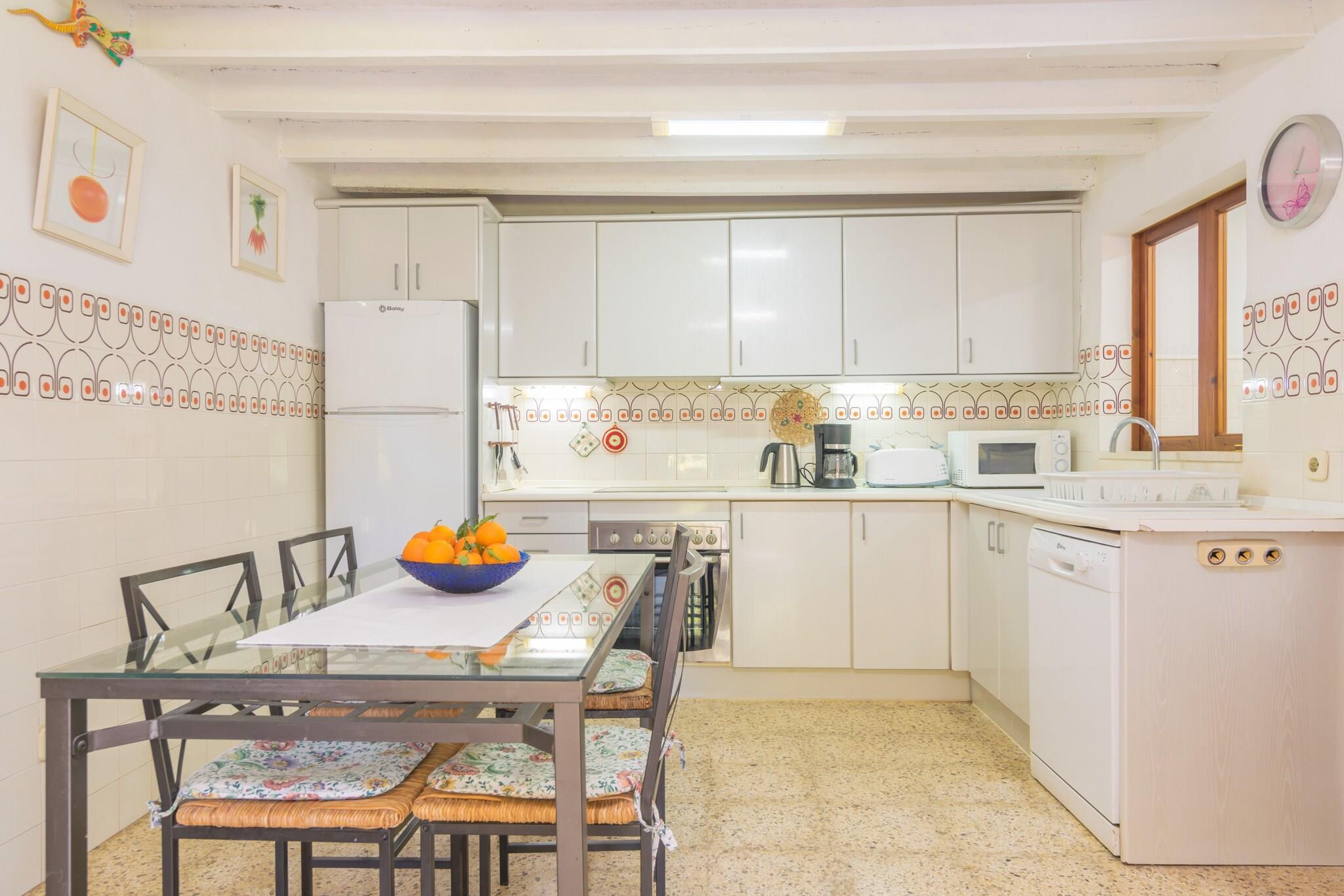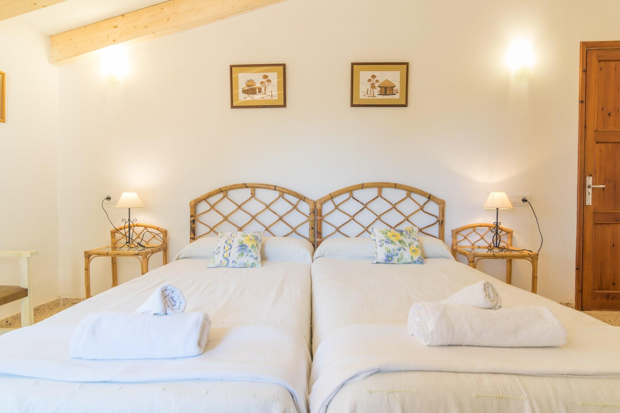 The beautiful garden of this wonderful rustic house invites to peacefully relax while enjoying a nice swim in the chlorine pool or maybe sunbathing on one of the 4 sun loungers or on the fresh lawn. The pool sizes 7 x 5 metres and its water depth goes from 1 to 1.8 metres. The furnished porch awaits after a nice morning and here you will be able to taste a delicious barbecue prepared by those who love to cook alfresco. The property is fenced and privacy is total. Comprising 2 floors, the accommodation surprises with its strong Mallorcan character. It clearly reflects the essence of the rustic houses in the island with its old but preserved furniture, its wooden beams and its beautiful decorative details. The living - dining room highlights this style with its impressive chimney and it invites to watch the satellite TV or chat all together. The kitchen is equipped with a ceramic hob, oven, a table with chairs to enjoy your meals right here and much more. The washing machine, iron and ironing board also are in the kitchen. On the first floor you will find the two bedrooms of the house, both with an en-suite bathroom with a tub, closet, AC and exit to the terrace. One of the bedrooms offers a double bed and the other has twin beds. Finally, we can prepare a cot and a high chair if you are travelling with your baby. The location of this property is perfect because you will enjoy the charm and peace of the country side but having, at the same time, all needed services for an independent stay in the lovely town of Pollensa, just a few minutes drive away. It also is near the Tramuntana mountain range, so ideal for hiking or biking excursions. You can also drive a car to know stunning corners of the island. The nearest sandy beach is Puerto de Pollensa about 4.3 km away although we recommend you visit the beautiful coves of Cala Sant Vicens. Air conditioning hours: from 7 pm to 5 am. A change of towels and sheets during the stay is included. Consult the advertiser for possible charges. Pets are not allowed. The holding of events is forbidden. There is exterior parking for 2 cars. Distances Beach: 4.3 km - Port de Pollença Airport: 62.9 km - Son Sant Joan Golf course: 7.9 km - Pollensa Club de golf Town: 4.6 km - Pollença Train station: 18.5 km - Sa Pobla Bus stop: 4.5 km - Pollença Ferry: 13.4 km - Puerto de Alcúdia Hospital: 27.9 km - Hospital Comarcal d'Inca Guests are kindly required to dispose of all rubbish and ensure the property is properly tidied before departure. Should this not be the case, a charge of EURO90 will be deducted from the security deposit. Tourist license: VT/506Single Rental Registry: ESFCTU0000070300003194780000000000000000000000VT/5060There's a mandatory tourist tax in Balearic Islands, called Ecotasa. All guests, except people under 16 years, have to pay this tax. The amount varies between 0.55EURO/night and guest during the low season and 2.2EURO/night and guest during the high season .The tax is reduced by half from the 9th day for your stay. Homerti - Central de Reservas CR/33