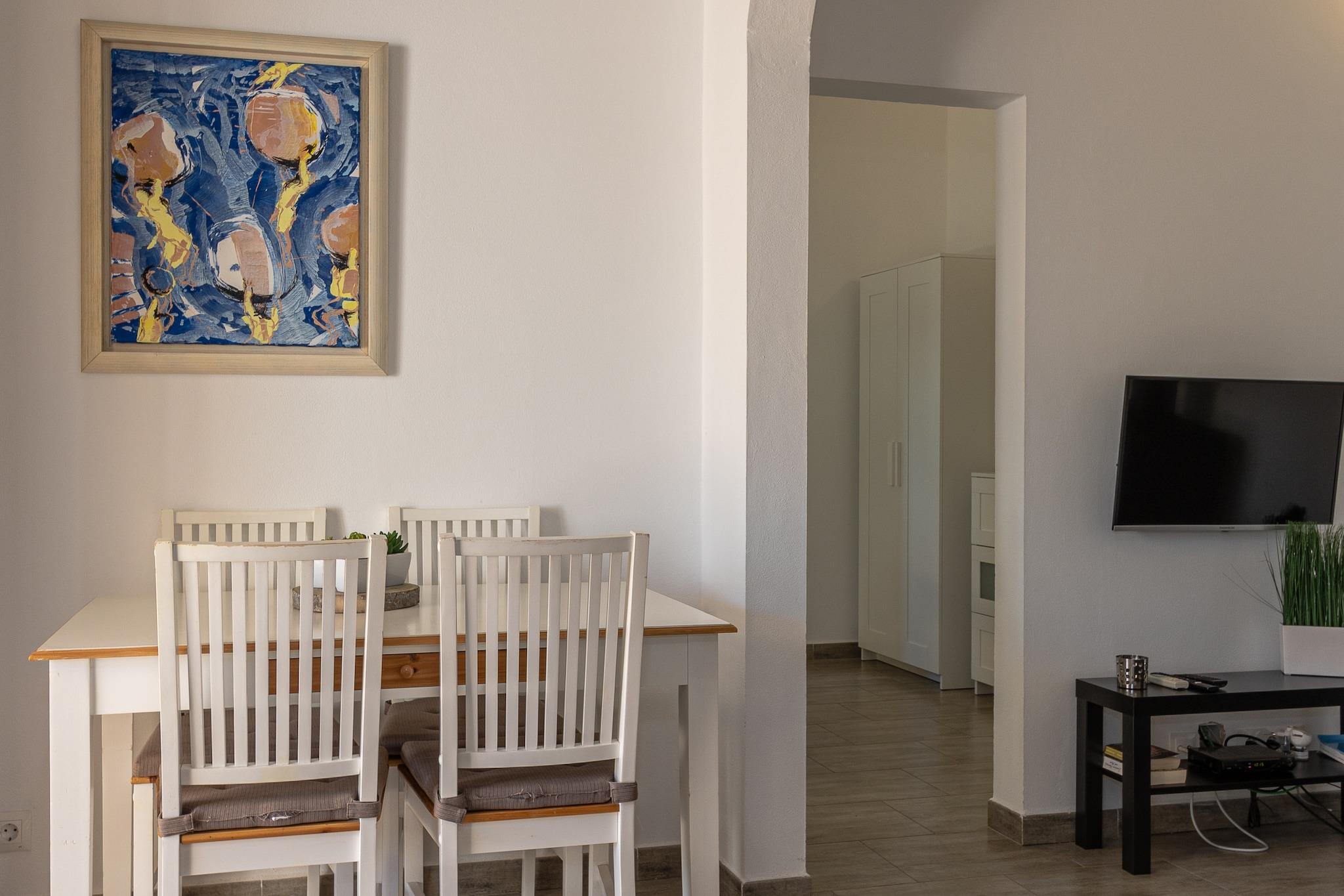 The cottage in Pollensa features 1 bedroom and can accommodate up to 2 guests. This cozy accommodation covers an area of 70 m² and is fully equipped, including a garden. It is situated in a family-friendly neighborhood and surrounded by beautiful rural scenery. The cottage includes the following amenities: a garden, outdoor furniture, a washing machine, a barbecue, a fireplace, an iron, internet (Wi-Fi), air conditioning, a TV, and satellite TV with channels in Spanish, English, and German. The independent kitchen, equipped with a glass ceramic hotplate, also includes a refrigerator, microwave, oven, freezer, dishwasher, dishes/cutlery, kitchen utensils, a coffee machine, a toaster, a kettle, and a juicer.