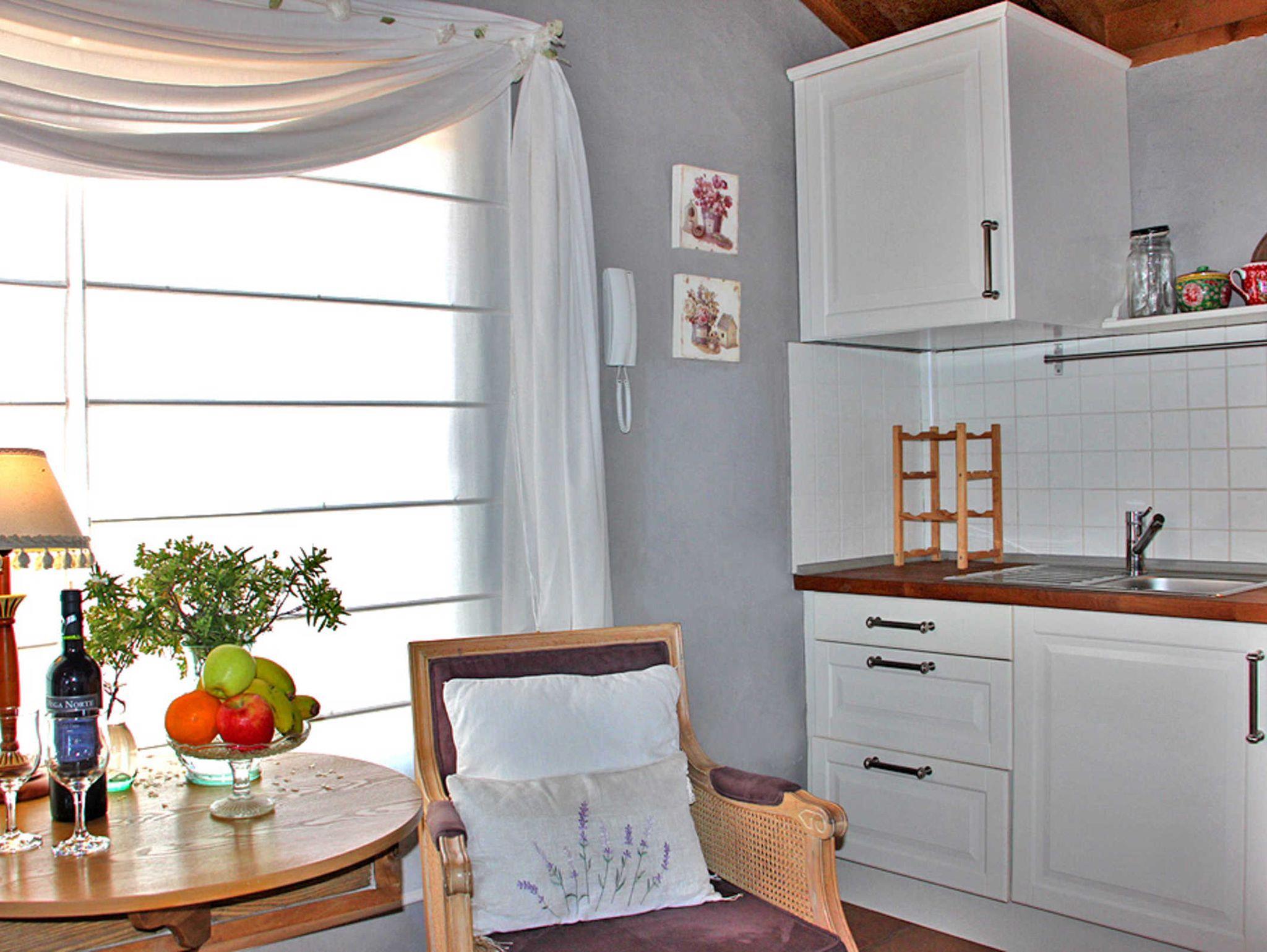• Küchenzeile mit Ceran (4 Felder), Backofen, Dunstabzug, Kaffeemaschine, Cafetera, Toaster, Kühl-/Gefrierkombination, Wasserkocher, Stabmixer, elektrische Saftpresse, Sandwichmaker