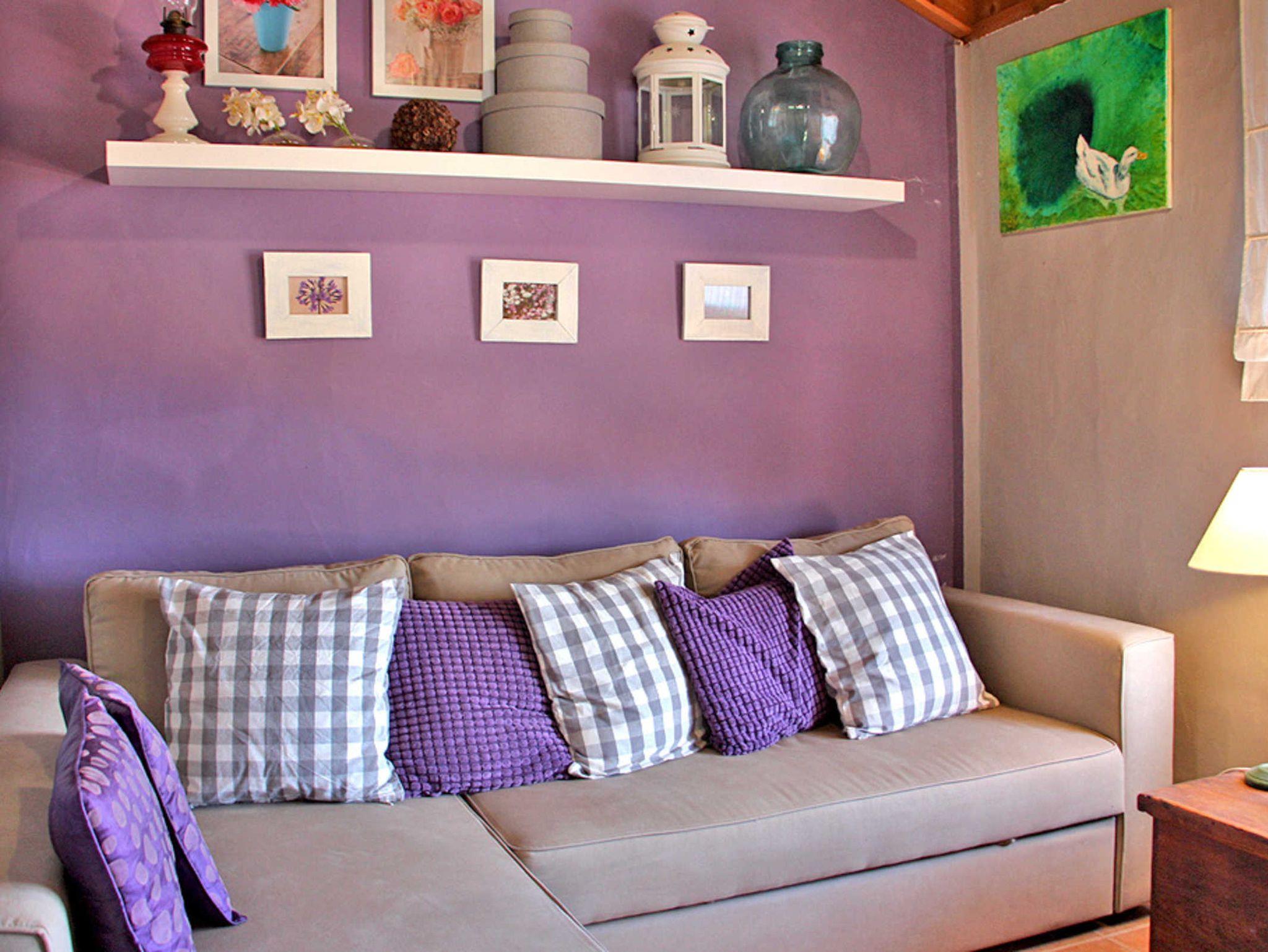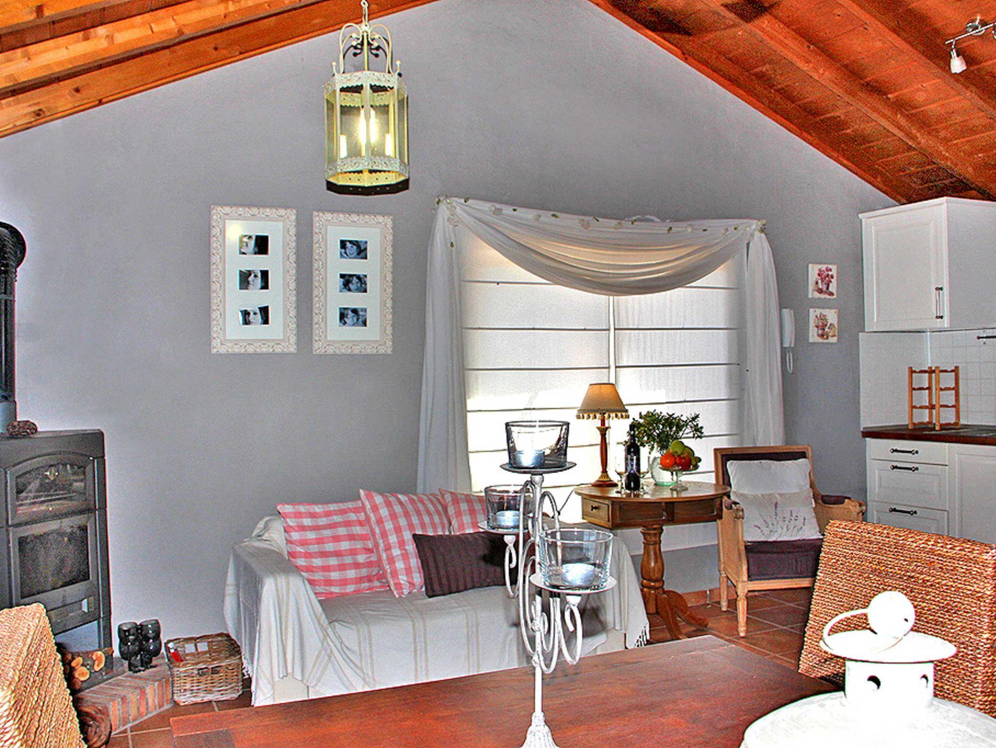 Vom Essbereich gehen die anderen Räume ab. Ein weiteres kleines Wohnzimmer kann auch als zweites Schlafzimmer genutzt werden, wenn Sie getrennt schlafen möchten. Die Chaiselongue kann zur Schlafcouch umfunktioniert werden (1,40 x 2,00m). Hier steht auch ein großer Kleiderschrank. Die Dachschräge schafft ein heimeliges Flair. Im Hauptschlafzimmer mit großem Doppelbett steht der einzige Fernseher des Hauses (Sat-TV, Flachbildschirm).