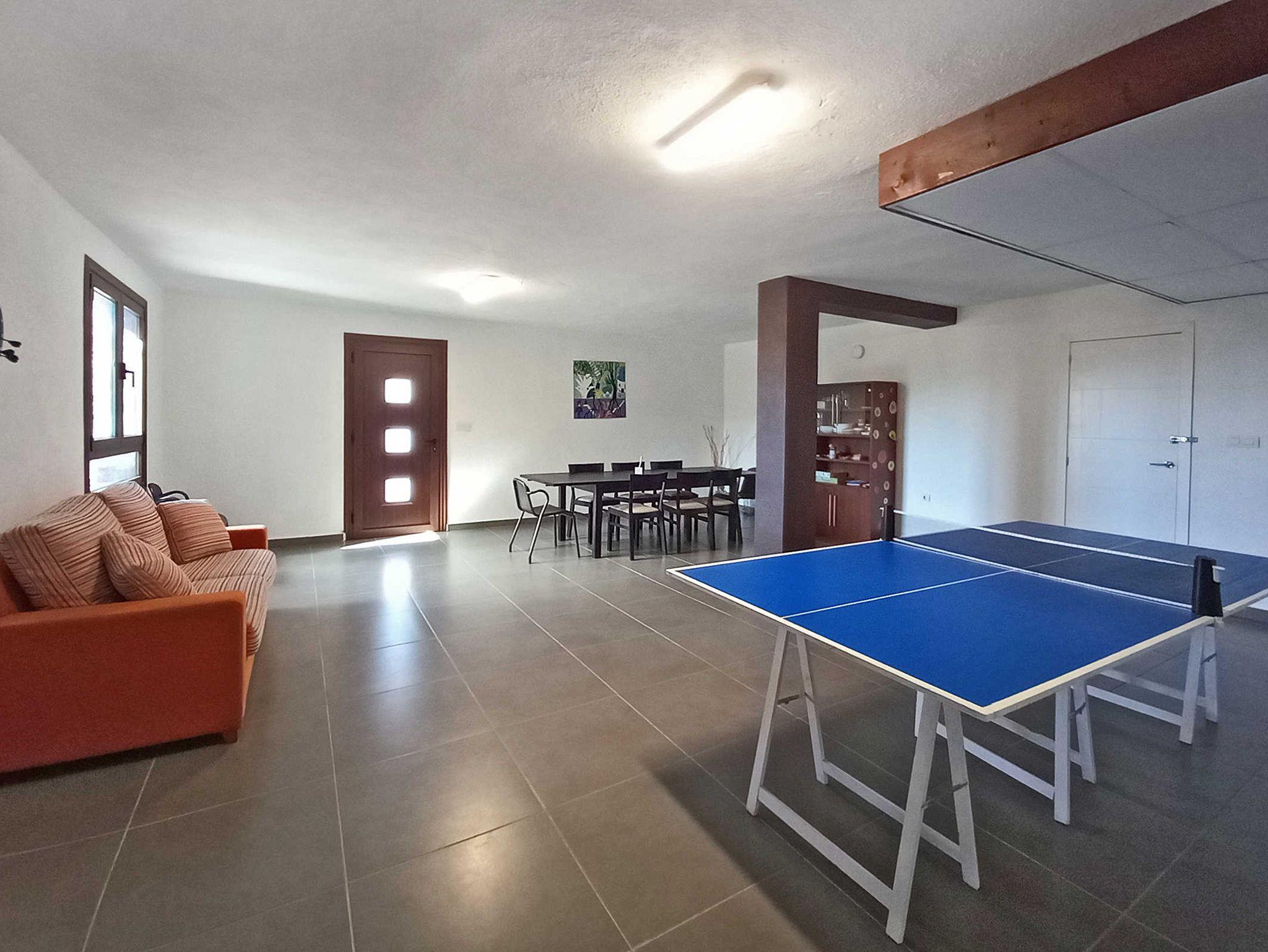 • Spielzimmer mit großem Tisch, Tischtennis und Dart