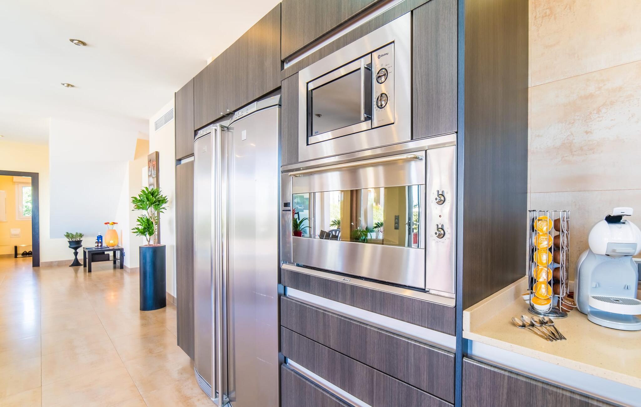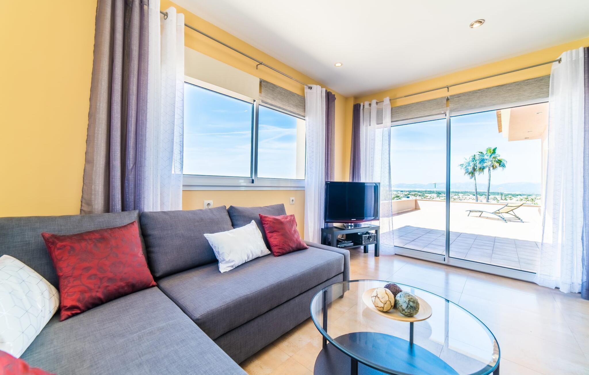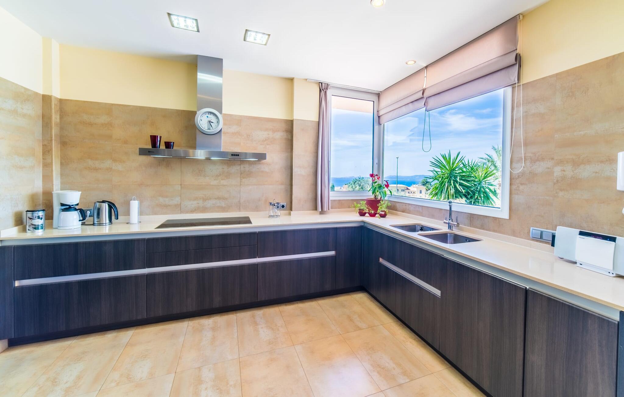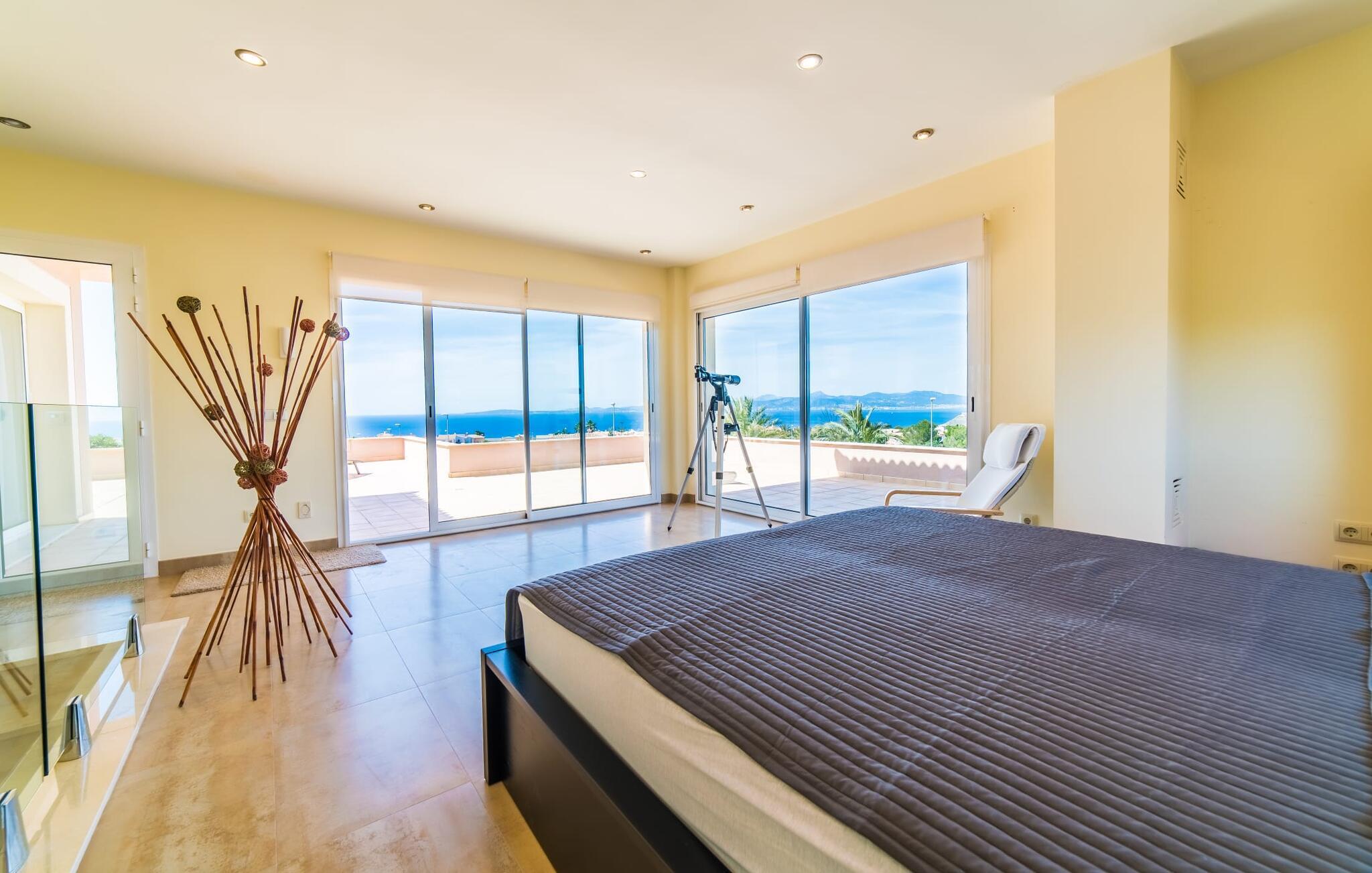 Das blaue Meer in Sichtweite und das Gefühl eines Strandtuchs auf der Haut: Diese moderne, zweistöckige Villa hat überall große Fenster, versteckt aber gleichzeitig den schönen Pool und seine Loungebereiche gekonnt hinter Bäumen und Hecken. Privatsphäre wird im Villenviertel großgeschrieben. Wenn die Terrassenmarkisen ausgefahren sind, fühlen Sie sich im gemütlichen Wohnraum im Freien wirklich von Ihren Nachbarn getrennt. Hier können Sie nach Herzenslust grillen, chillen oder schlemmen. Die gesamte Meereslandschaft liegt den Sonnenanbetern zu Füßen, die sich auf der weitläufigen Dachterrasse sonnen. Wenn Sie möchten, können Sie auch ab und zu Ihre gesamte Kleidung hier abgeben. Die Bucht von Palma zeigt sich in ihrer ganzen Schönheit. Nachts funkeln die Lichter der Hauptstadt und man fragt sich, ob man später noch hinfahren möchte, um einen Cocktail zu trinken oder einen Spaziergang zu machen. Am Haus befindet sich ein asphaltierter Parkplatz, auf dem Sie Ihren Mietwagen sicher und bequem abstellen können, und auch rund um die Tischtennisplatte ist ausreichend Bewegungsraum vorhanden. Villa „Redrema“ verspricht nicht nur rosarote Zeiten, auch Buddha durchdringt das Haus und bringt Harmonie und Urlaubsglück.