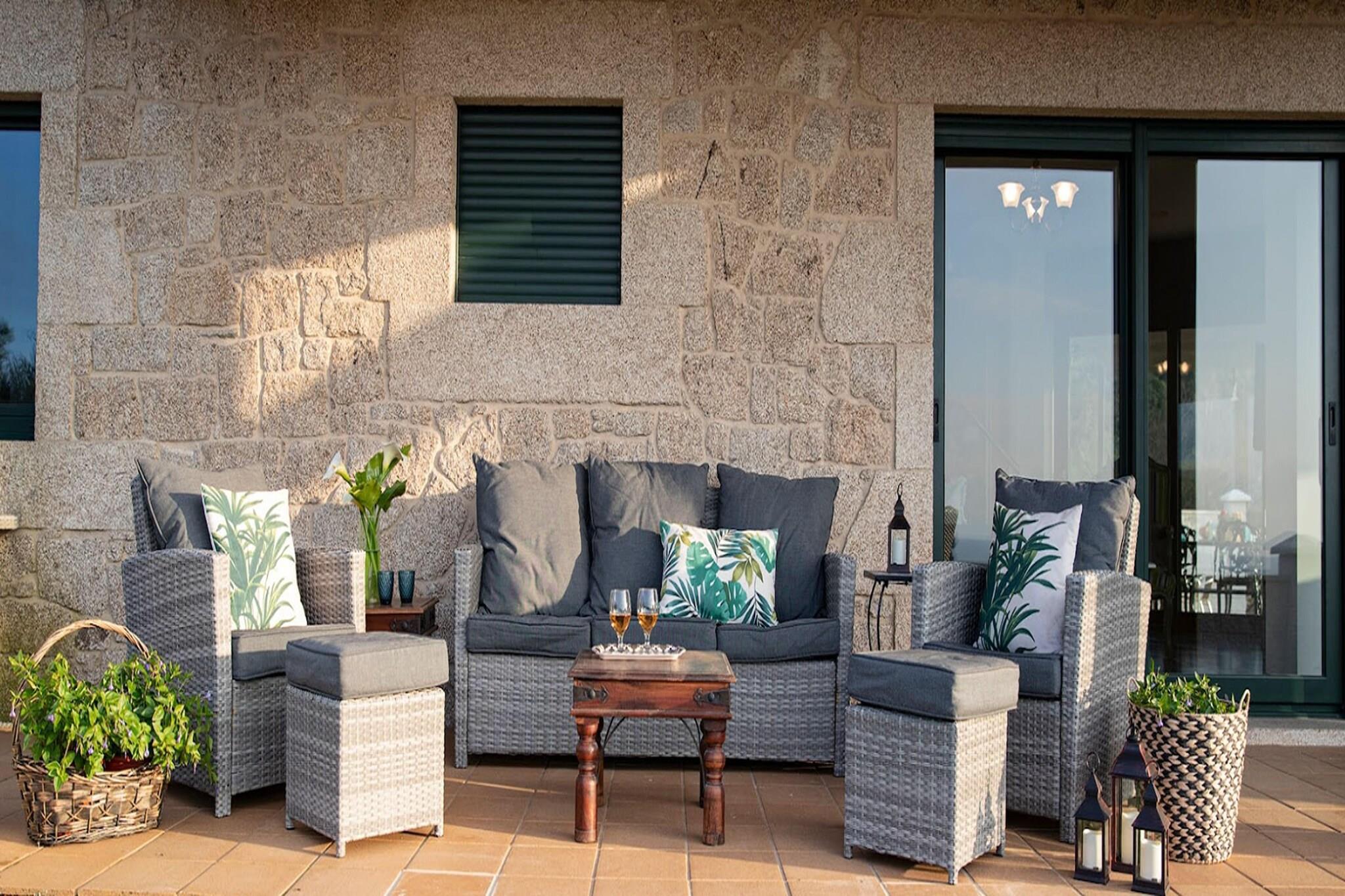 Luxury Singular Villa Carolina boasts stunning mountain views from its balcony, an inviting outdoor swimming pool, and a beautiful garden, all conveniently located near Playa de Seráns and just 2.9 km from Praia de Areas Longas. Offering free private parking, this country house is perfect for those looking to immerse themselves in activities like fishing, canoeing, and billiards. Inside, the villa features a spacious layout including five bedrooms, a cozy living room with a flat-screen TV, and an equipped kitchen with a fridge and dishwasher. With four bathrooms equipped with showers, along with provided towels and bed linen, guests will find all the comforts of home. The terrace offers breathtaking sea views, making it an ideal spot to relax. Family-friendly amenities include a children’s playground, and the property invites guests to engage in table tennis or explore the surrounding area by bicycle. Located on the beachfront of Espiñeirido beach, part of the Corrubedo Natural Beach Park, the villa offers access to pristine landscapes protected for their beauty and ecological importance. The villa's charm extends outdoors with three porches—two facing the sea and one the mountains. The pool area features comfortable hammocks and Balinese beds, perfect for unwinding at sunset. A games room with billiards and a barbecue area, complete with a large gazebo lit by twinkling lights, creates a magical atmosphere for gatherings. Luxury Singular Villa Carolina is the perfect destination for holidays filled with sun, beach, nature, water sports, and local cuisine, anytime of the year.