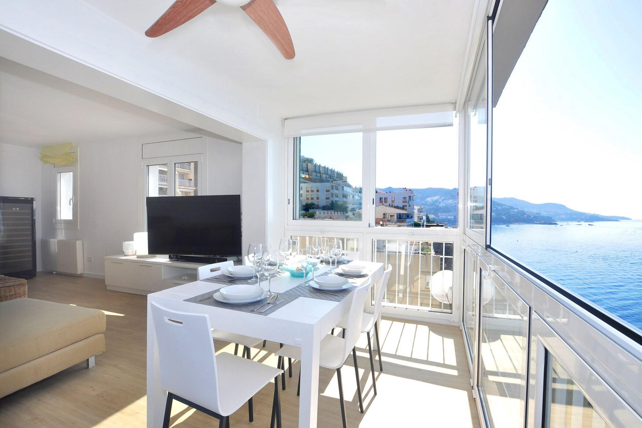 Welcome to this beautiful 60 m² apartment in Roses, featuring 2 bedrooms and accommodating up to 7 guests (maximum 6 adults). This modern, tastefully furnished accommodation is located right on the beachfront, offering stunning sea views. Conveniently situated just 50 meters from the rocky beach of Canyelles and 500 meters from the sandy beach, this apartment provides easy access to sun and surf. You'll find a "Varios" supermarket 400 meters away, as well as a restaurant just 500 meters from your doorstep. The vibrant city of Roses is 1.6 km away, while the bus station (Sarfa) is 2 km from the apartment. Nature lovers will enjoy nearby Parc Natural del Cap de Creus, located just 3 km from the property. Thrill-seekers can visit the Aqua Brava water park, 5 km away, or tee off at Golf Perelada, 19 km from the accommodation. The AVE-TGV train station is 20 km away, and Barcelona Airport is a quick 165 meters away. For those venturing further, Girona Airport is 65 km away, and Vallter 2000 ski slopes are 120 km from the apartment. This well-equipped apartment features a lift, a 20 m² terrace, and essential amenities such as WiFi and outdoor parking in the building. Enjoy entertainment options with a TV offering satellite channels in Spanish, English, German, and Russian, as well as a radio. The independent gas kitchen is equipped with a fridge, microwave, oven, freezer, washing machine, dishwasher, crockery, cutlery, kitchen utensils, coffee machine, and juicer, providing everything you need for a delightful stay. Experience the charm of this beachfront apartment in Roses, where comfort, stunning views, and a prime location come together for the perfect getaway!