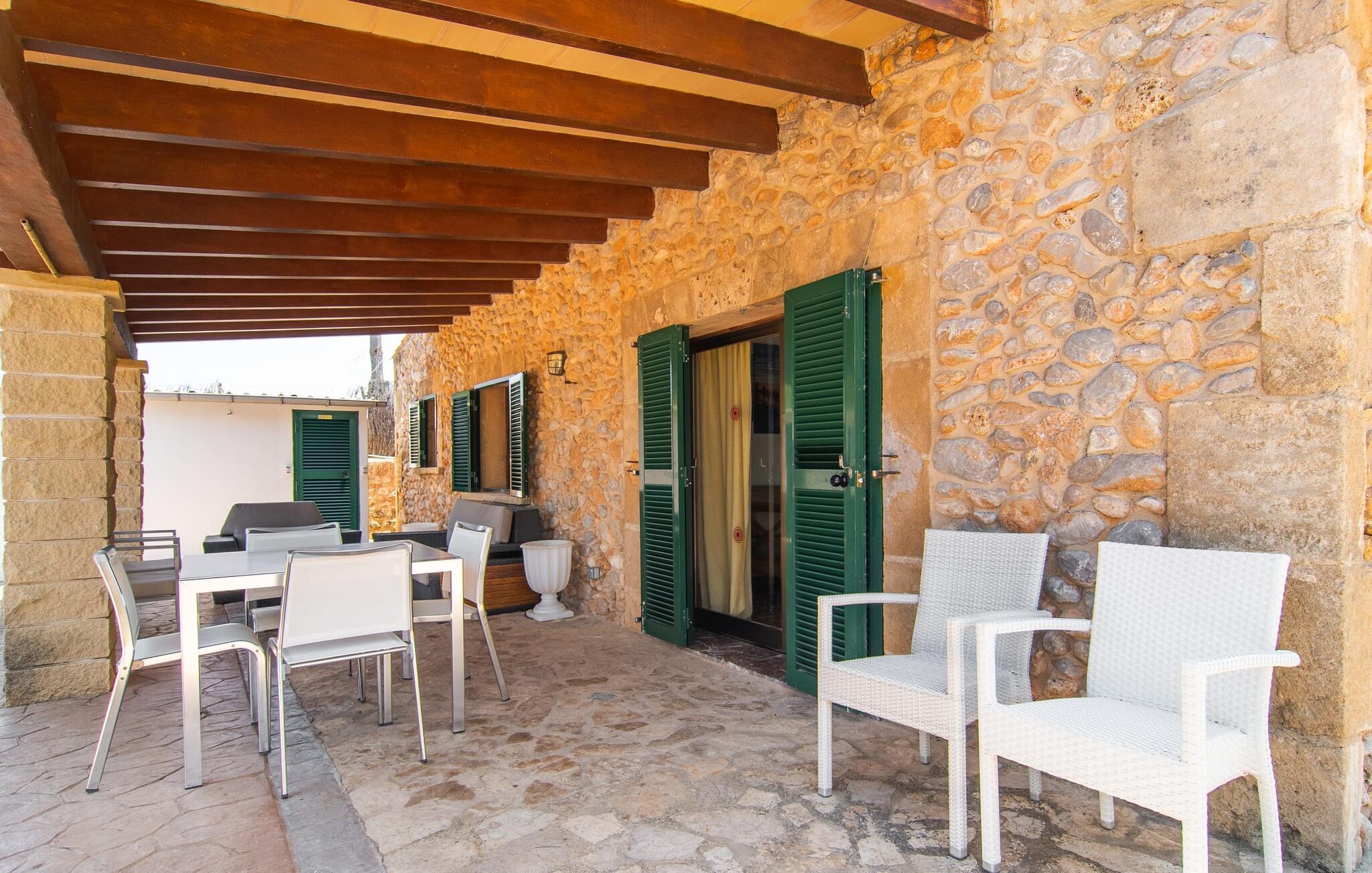 Die idyllische Villa „Rotes de Bou“ liegt in unmittelbarer Nähe einer Hauptstraße, die direkt zum örtlichen Strand führt. Das weitläufige Grundstück dieser Ferienresidenz bietet einen üppigen Bestand an Bäumen und verschiedenen anderen mediterranen Pflanzen, die die große Pool- und Terrassenlandschaft hübsch umrahmen. Im Zentrum des Außenbereichs, leicht erhöht, befindet sich der 32 m² große Pool, in dem Sie sich an heißen Tagen wunderbar erfrischen können. Es ist über eine klassische Treppe erreichbar und von einer farblich kontrastierenden Sonnenterrasse umgeben. Bequeme Sonnenliegen bieten ideale Voraussetzungen für ausgiebige Entspannung. Vielleicht möchten Sie einfach mal abschalten und eine Weile nichts tun – schließlich sind Sie ja im Urlaub. Um sich vor starker UV-Strahlung zu schützen, steht Ihnen ein Sonnenschirm zur Verfügung. Von hier aus führen ein paar Stufen auf die große, teilweise überdachte Terrasse neben dem Haus. Auf der Terrasse stehen verschiedene Sitzmöbel für den Außenbereich bereit, die den unterschiedlichsten Aktivitäten und Ansprüchen gerecht werden. Sie können zum Beispiel gemeinsam an der Sitzgarnitur zu Abend essen, in der kleinen, luxuriösen Lounge-Zone mit Polyrattan-Sesseln entspannen oder an der Holztisch-Bank-Kombination im luftigen Schatten verweilen – auch perfekt geeignet, um gemeinsam ein Abendessen zu genießen. Hier können Sie gemeinsam einen kulinarischen Grillabend zelebrieren, köstliche regionale Köstlichkeiten zubereiten und genießen und dabei den wunderschönen Blick in den Garten genießen.