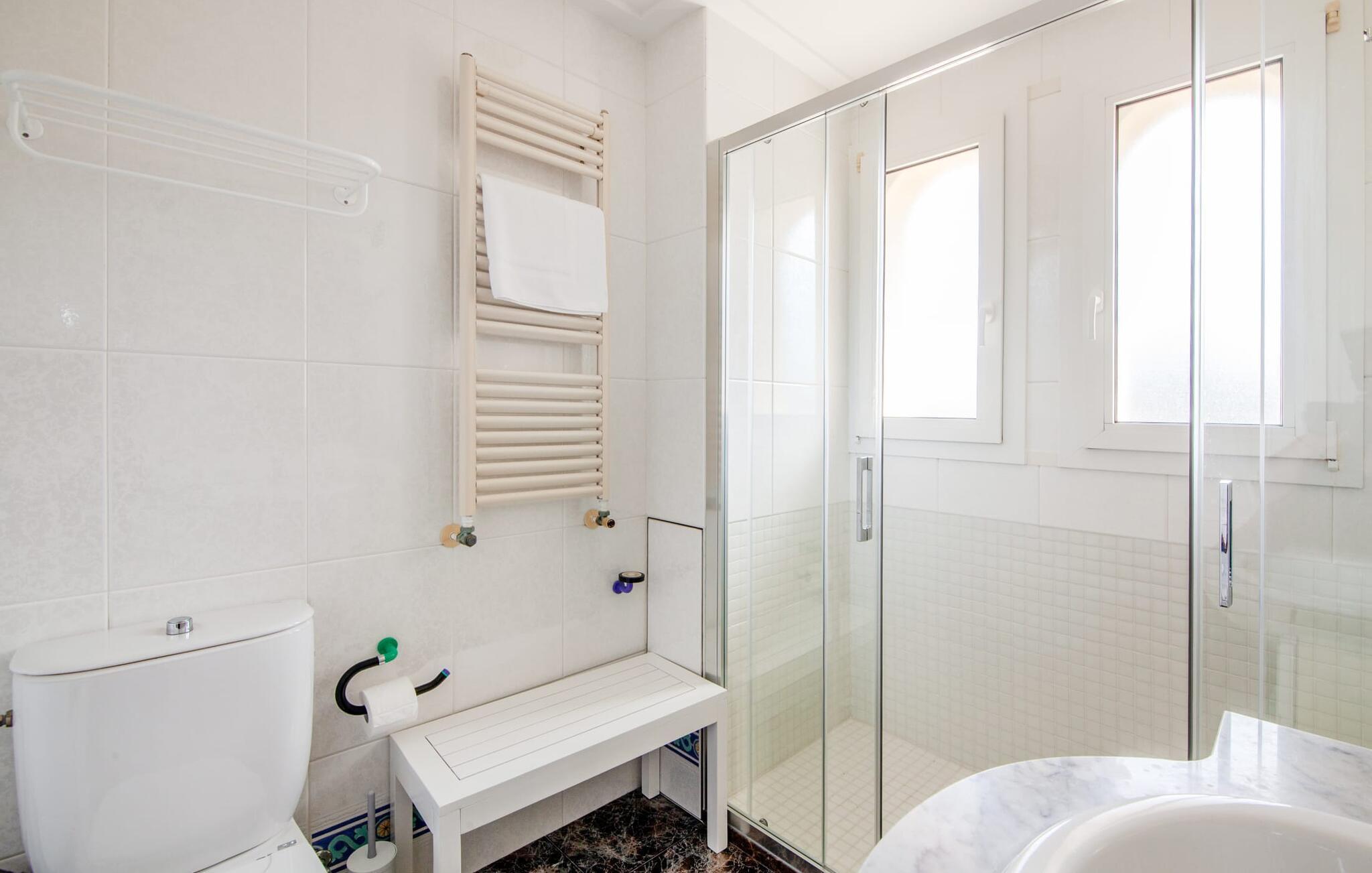 Im Inneren strahlt die Villa Eleganz und Großzügigkeit aus. Die unterste Etage umfasst ein Wohnzimmer mit Sommerküche und Innengrill, ein Schlafzimmer mit Doppelbett und ein komplettes Badezimmer mit Badewanne. Im Erdgeschoss gibt es auch ein Duschbad. Im Obergeschoss finden Sie ein großes Wohn-/Esszimmer mit bequemen Sitzgelegenheiten, einem Fernseher und einem großzügigen Esstisch sowie eine voll ausgestattete Küche und drei Doppelschlafzimmer – eines davon mit eigenem Bad und einem zusätzlichen Duschbad .