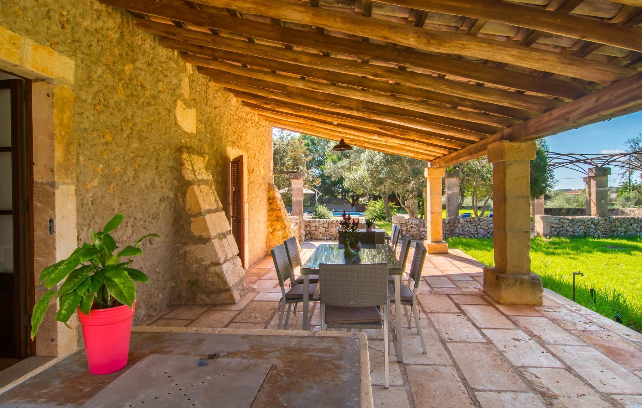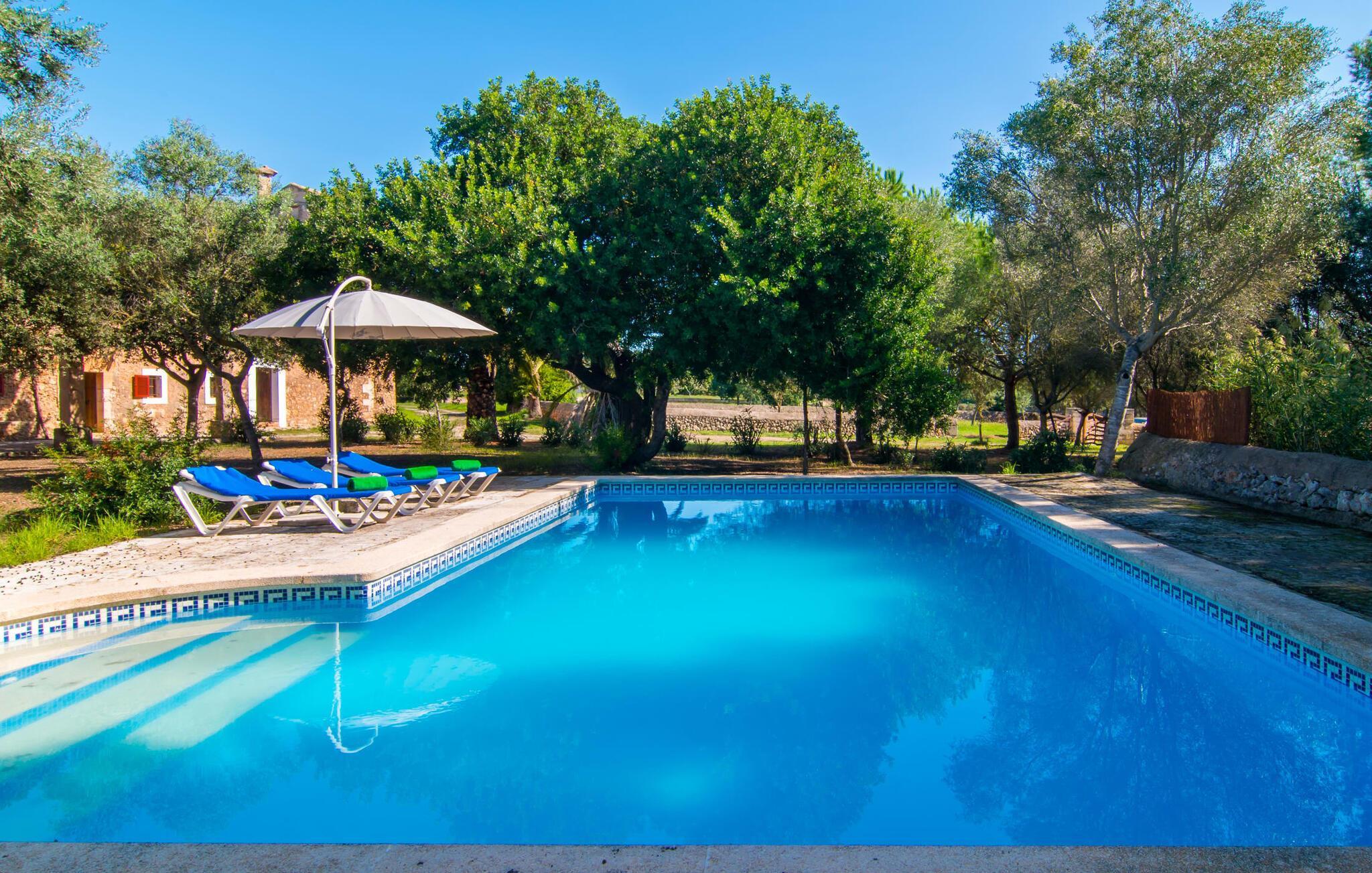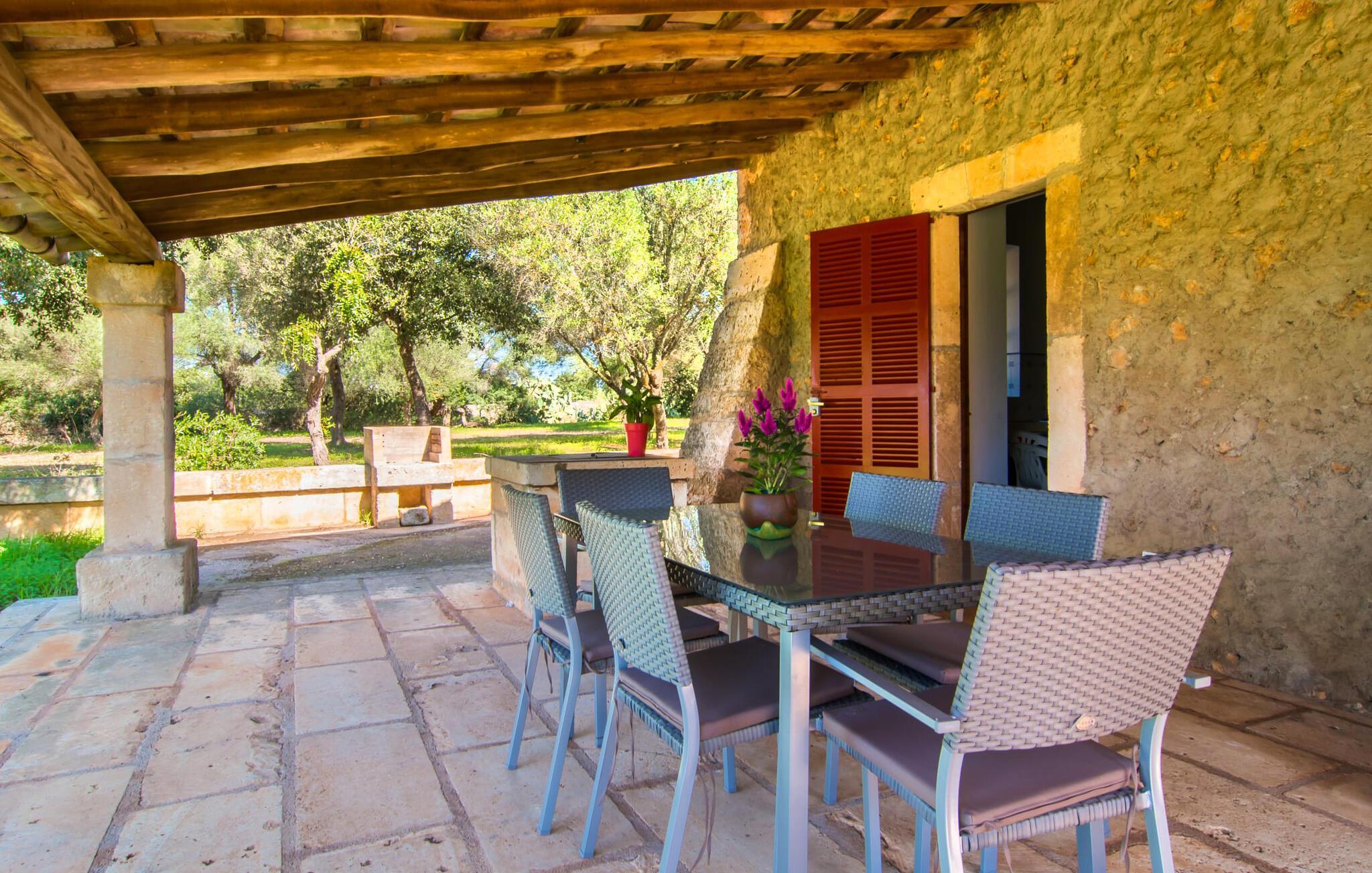 Das wohlklingende „Ca Carrotja Vella“ spielt mit seinem Namen auf seinen Charakter an – ein ehemaliges Bauernhaus auf einem beeindruckenden, riesigen 180.000 m² großen Anwesen. Das Landhaus heißt seine Besucher und Gäste herzlich willkommen, eingebettet in die unvergleichlich schöne Landschaft des Ostens der Insel, einfach perfekt zum Wandern. Bevor wir die Umgebung erkunden, nehmen wir Sie mit auf eine kleine Entdeckungstour durch das Märchenhaus von innen und außen. Der Garten mit seinem alten Baumbestand aus Oliven- und Johannisbrotbäumen, eindrucksvollen Rasenflächen, kleinen Wegen und Natursteinmauern wirkt absolut natürlich und fügt sich nahtlos in die scheinbar endlose Natur weit und breit ein. Mehr Privatsphäre könnte es kaum bieten. Sie werden sich auf jeden Fall sicher fühlen, wenn Sie sich am schlangenförmigen, mit Mosaik ausgekleideten Pool entspannen. Ganz unbemerkt können Sie hier ein erfrischendes Bad nehmen, sich auf einer der bequemen Sonnenliegen entspannen oder sich am geheimen Plätzchen im Schatten unter der Markise schließlich einem guten Buch hingeben. Sollten Sie den kleinen Hunger verspüren, zünden Sie einfach den Grill direkt neben der überdachten Außenterrasse an, auf der sich zwei ausreichend große Essplätze mit trendigen Polyrattan-Möbeln befinden – der perfekte Ort zum gemeinsamen Essen zu jeder Tageszeit.