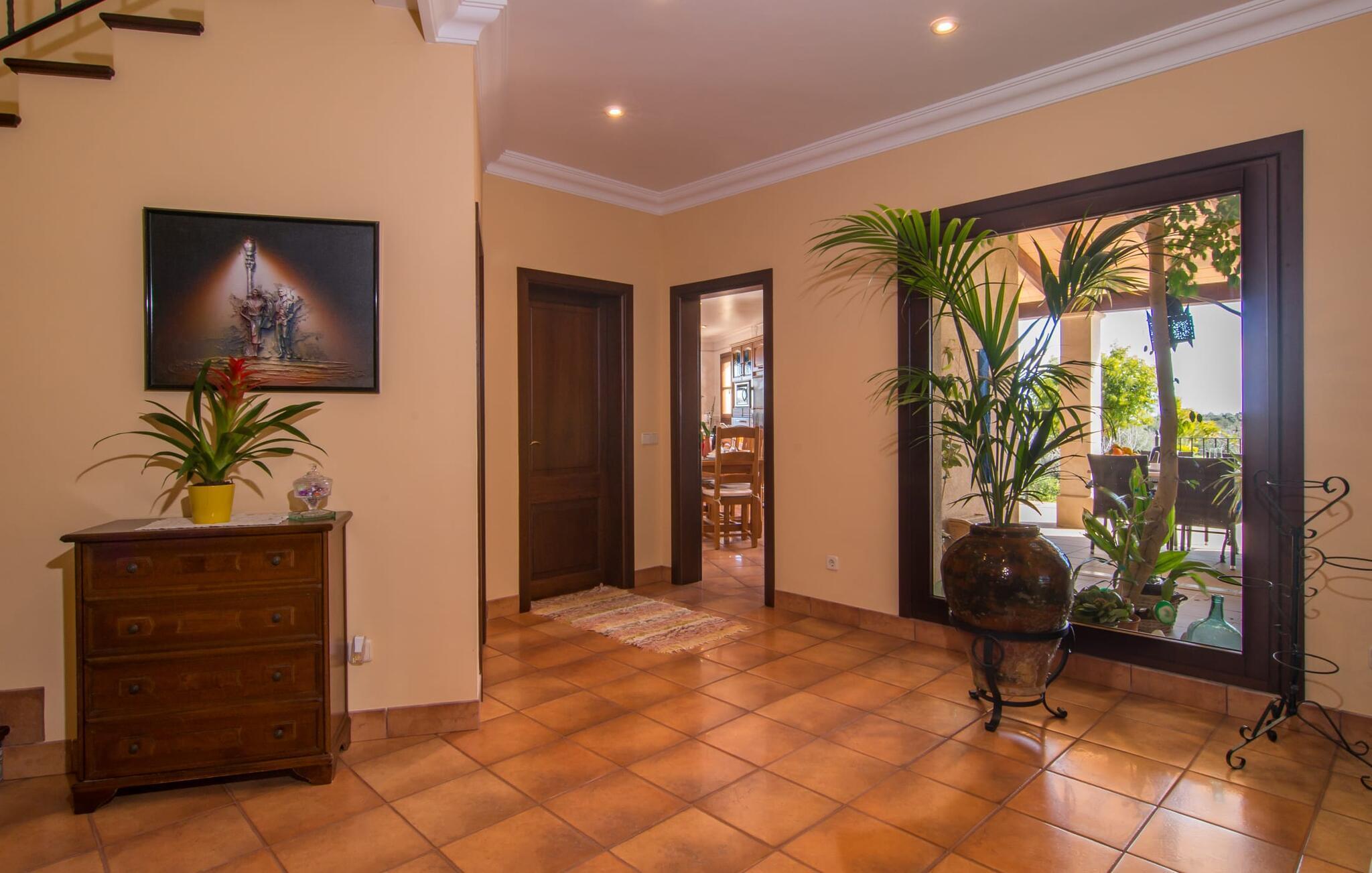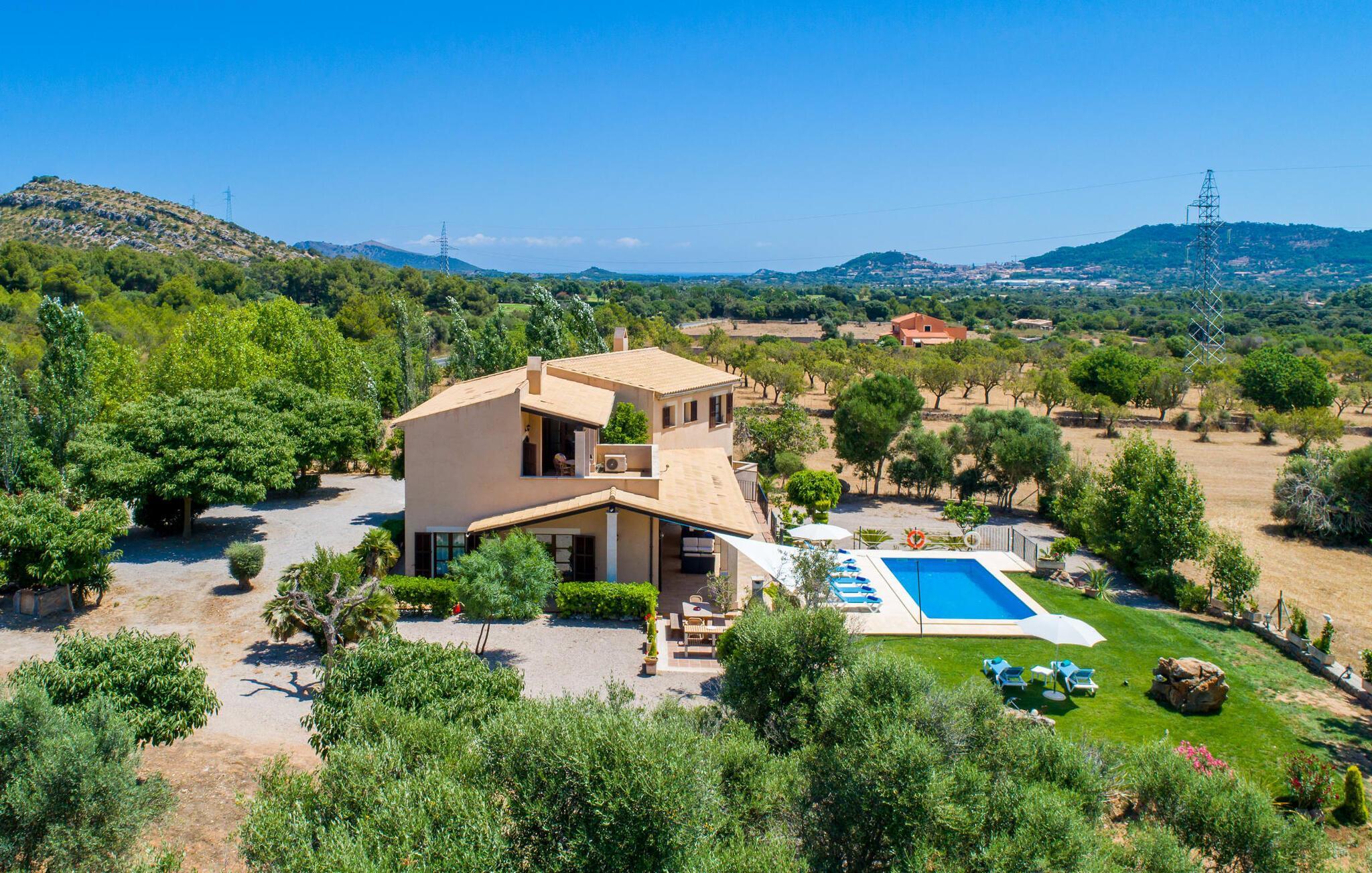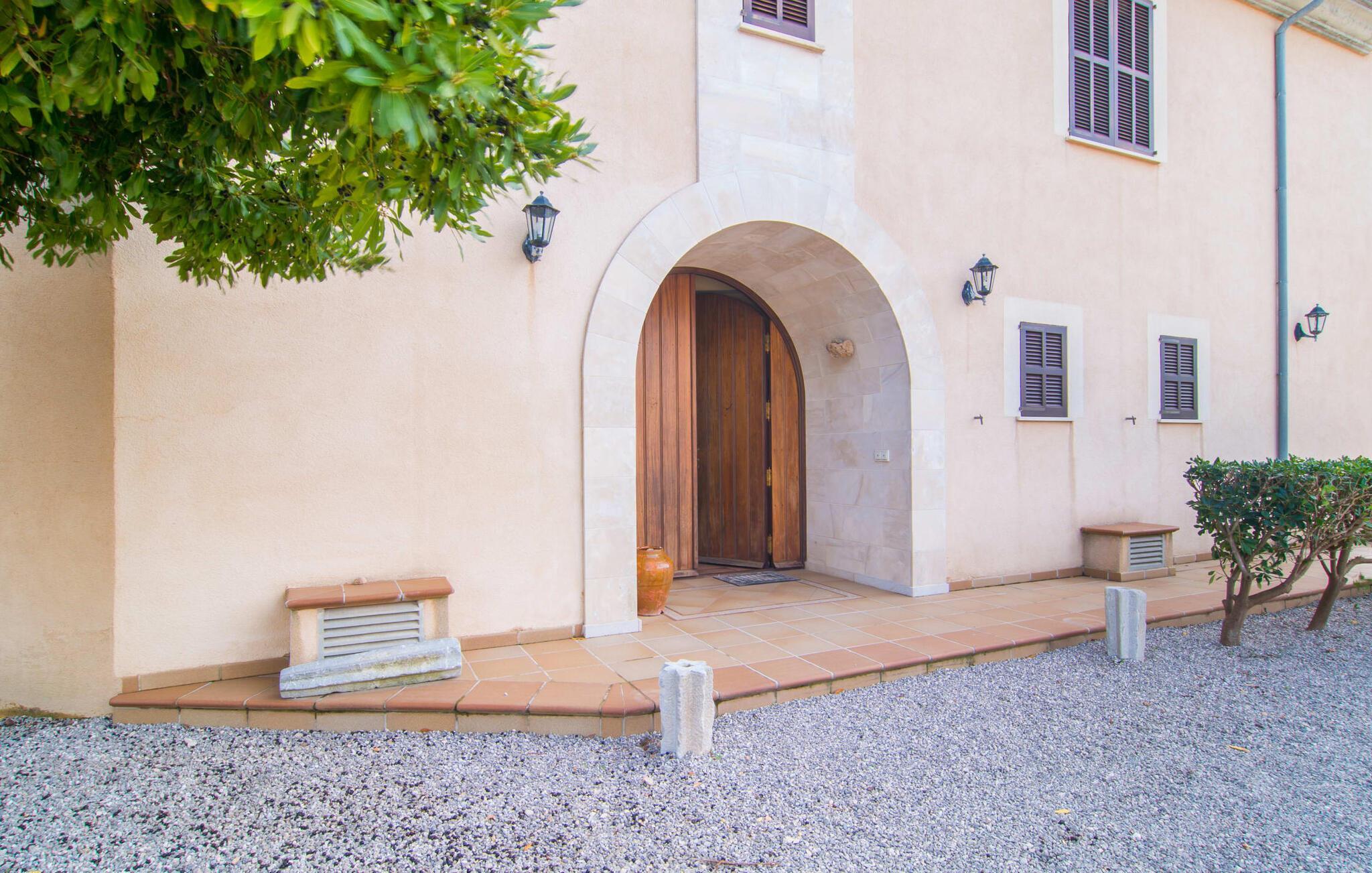 Übernachten Sie im „Sa Creu Vella Ses Ancores“ und Sie wissen, dass Sie die richtige Wahl getroffen haben: Die mediterrane Landhausvilla am Rande des Golfplatzes von Capdepera ist perfekt für Menschen, die ihren Urlaub mitten im Grünen und dennoch ruhig verbringen möchten Ich liebe es, Geschäfte, Cafés, das Meer und attraktive Strände in der Nähe zu haben. Parken Sie Ihren Mietwagen fahrbereit auf dem Schotterparkplatz vor dem imposanten Eingang. Schauen Sie sich die Bilder an und freuen Sie sich auf die gemütliche Lounge-Ecke auf der Terrasse oder die Liegen am Pool – der lange Tisch ist bereits für acht Personen gedeckt. Wie wäre es mit einem erfrischenden Fassbier neben dem rauchenden Grill oder einem Spaziergang über das 21.000 m² große Anwesen mit Blick auf den Himmel und die umliegenden Berge? Sie könnten sogar versucht sein, die sanft abfallende Hügelkette hinter der ländlichen Villa hinaufzulaufen, um in der Ferne einen Blick auf das glitzernde Meer zu genießen …
