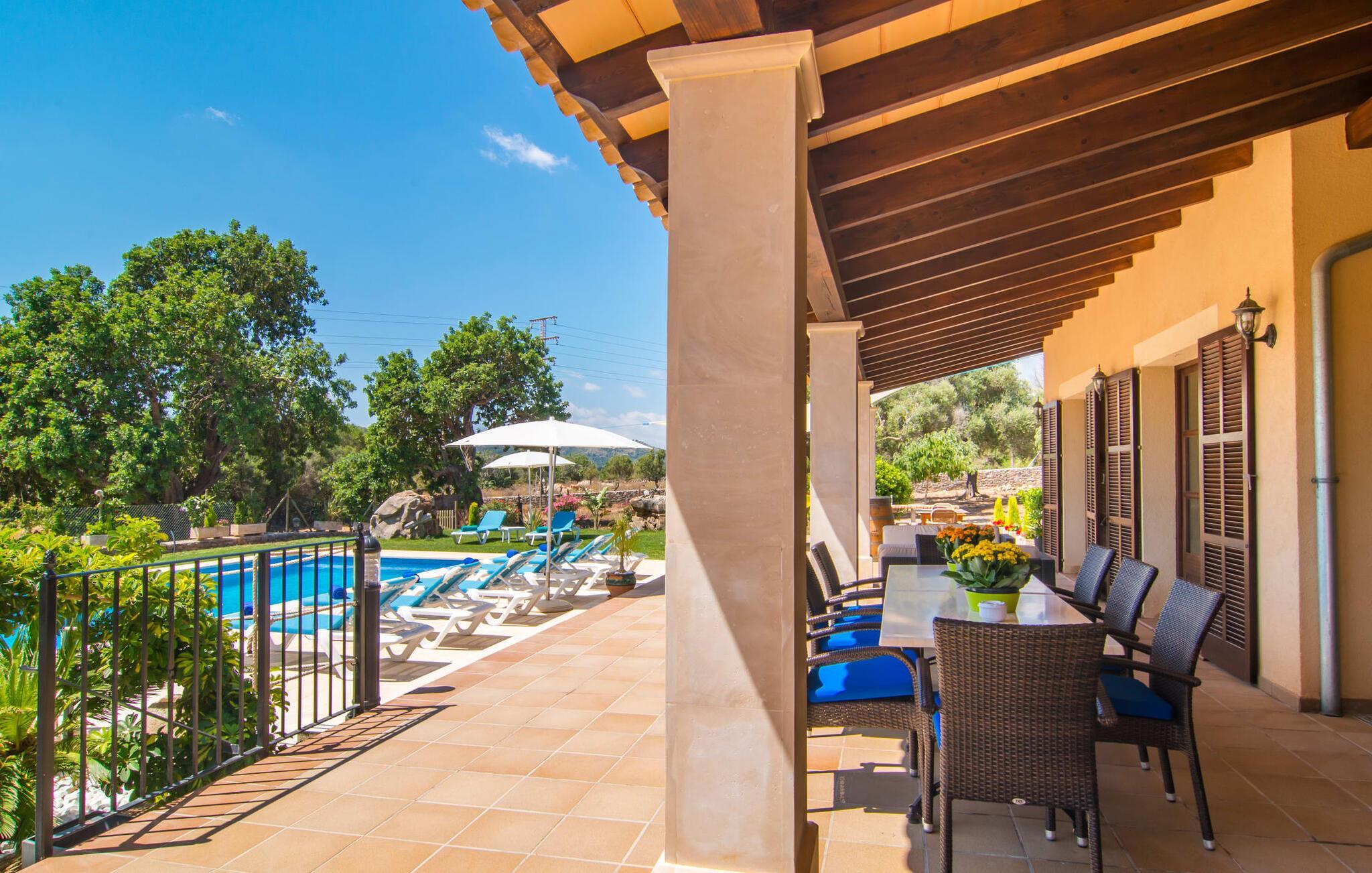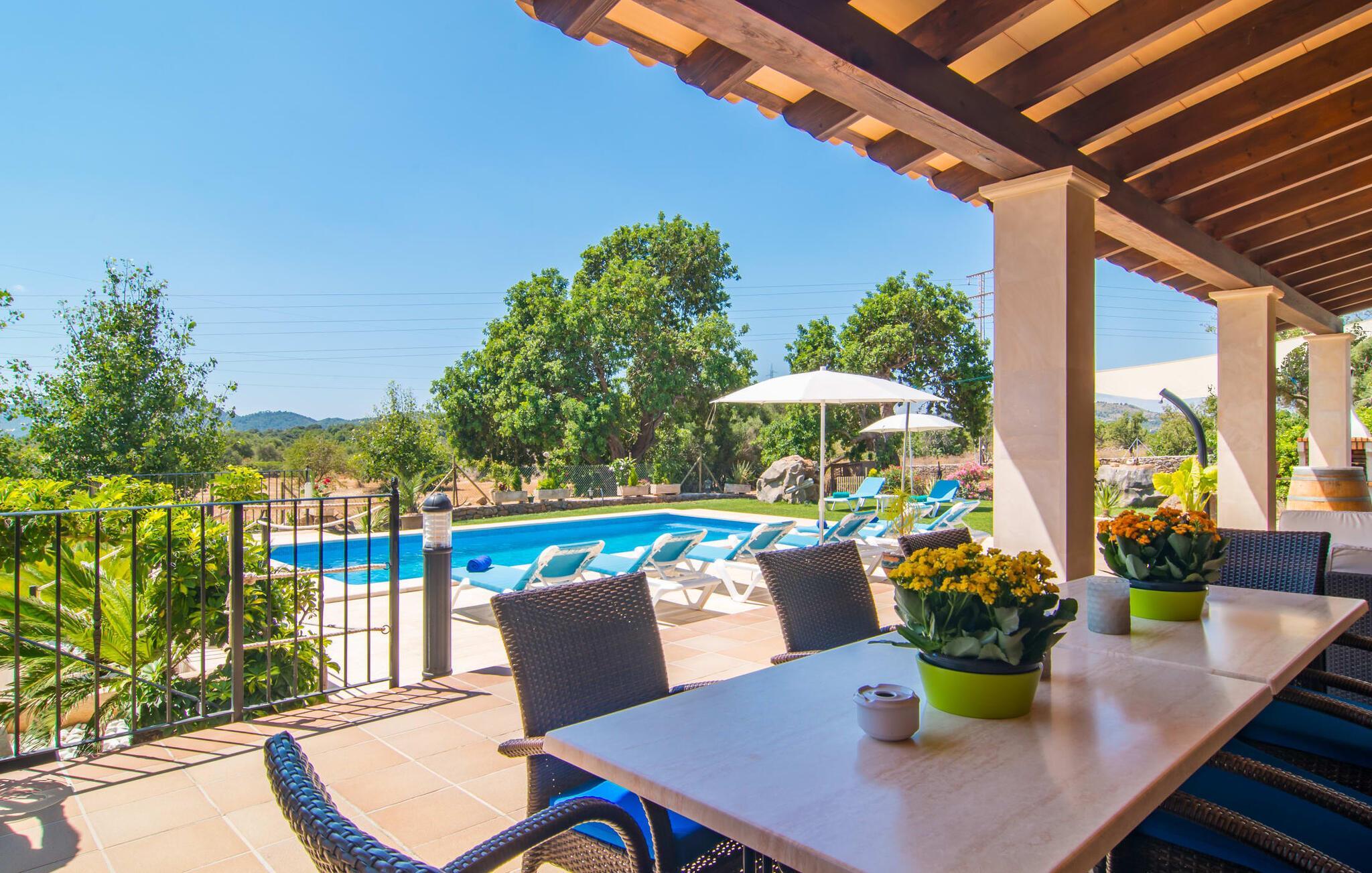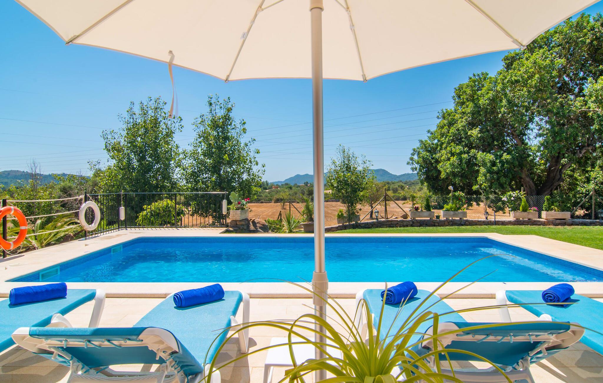 Übernachten Sie im „Sa Creu Vella Ses Ancores“ und Sie wissen, dass Sie die richtige Wahl getroffen haben: Die mediterrane Landhausvilla am Rande des Golfplatzes von Capdepera ist perfekt für Menschen, die ihren Urlaub mitten im Grünen und dennoch ruhig verbringen möchten Ich liebe es, Geschäfte, Cafés, das Meer und attraktive Strände in der Nähe zu haben. Parken Sie Ihren Mietwagen fahrbereit auf dem Schotterparkplatz vor dem imposanten Eingang. Schauen Sie sich die Bilder an und freuen Sie sich auf die gemütliche Lounge-Ecke auf der Terrasse oder die Liegen am Pool – der lange Tisch ist bereits für acht Personen gedeckt. Wie wäre es mit einem erfrischenden Fassbier neben dem rauchenden Grill oder einem Spaziergang über das 21.000 m² große Anwesen mit Blick auf den Himmel und die umliegenden Berge? Sie könnten sogar versucht sein, die sanft abfallende Hügelkette hinter der ländlichen Villa hinaufzulaufen, um in der Ferne einen Blick auf das glitzernde Meer zu genießen …