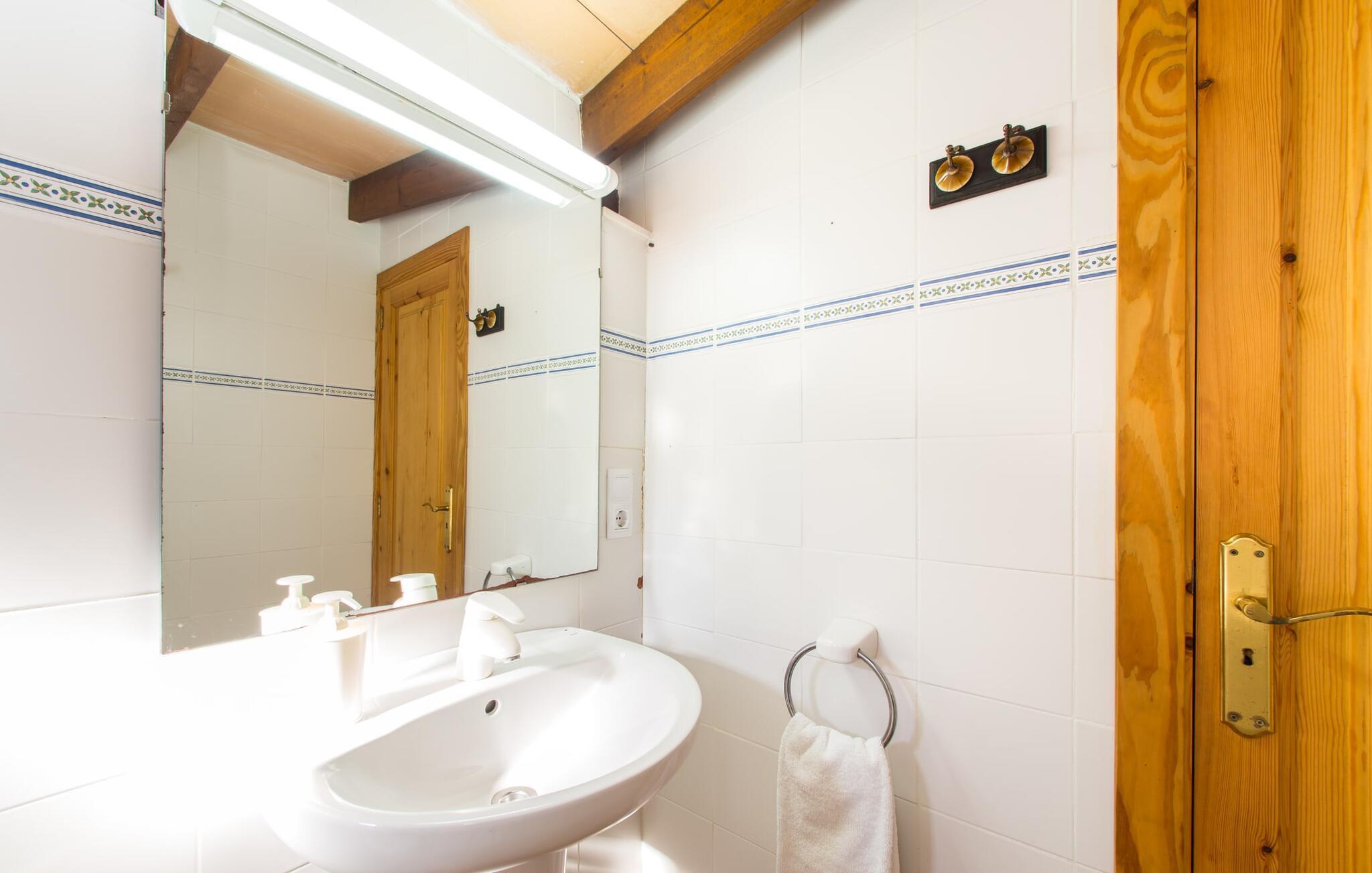 Die Villa „Sa Plana“ verfügt über drei Schlafzimmer, zwei Badezimmer, eine gut ausgestattete Küche und ein Wohnzimmer mit Esstisch. Die Villa ist für sechs Personen geeignet, ein Kinder- oder Babybett kann problemlos aufgestellt werden. Das Haus ist mit elektrischen Wandheizungen ausgestattet, während das Wohnzimmer und die Schlafzimmer auf der gegenüberliegenden Etage ebenfalls über eine Klimaanlage verfügen. Beide Badezimmer sind gefliest. Eine schnelle Internetverbindung steht den Gästen kostenfrei zur Verfügung. Sie betreten die Villa konventionell über die Terrasse und gelangen in das gemütliche Wohnzimmer, ausgestattet mit bequemen Sofas, Sat-TV und einem Esstisch für sechs Personen. Die Küche der Ferienvilla ist komplett ausgestattet mit Geschirrspüler, Doppelspüle, Cerankochfeld, Backofen Backofen, Dunstabzugshaube, Kühlschrank mit Gefrierfach, Mikrowelle, Kaffeemaschine, Toaster, Mixer und Wasserkocher. In den gemütlichen und freundlich gestalteten Schlafzimmern können Sie einen tiefen und erholsamen Schlaf genießen. Das erste Schlafzimmer verfügt über ein 1,80 m x 2,00 m großes Doppelbett, das andere über zwei 0,90 m x 2,00 m große Betten. Das Badezimmer verfügt über Badewanne, WC, Bidet und Waschbecken, sowie komfortable Handtuchheizkörper. Das Duschbad liegt außerhalb des Hauses. Der Zugang erfolgt über die Außentür der Küche. Sie können es auch direkt vom Pool aus erreichen. Sie müssen keinen Haartrockner von zu Hause einpacken, da er für Sie jederzeit griffbereit ist. Eine Waschmaschine, Bügeleisen, Bügelbrett sowie ein Wäscheständer stehen in einem Nebenraum zur Verfügung.