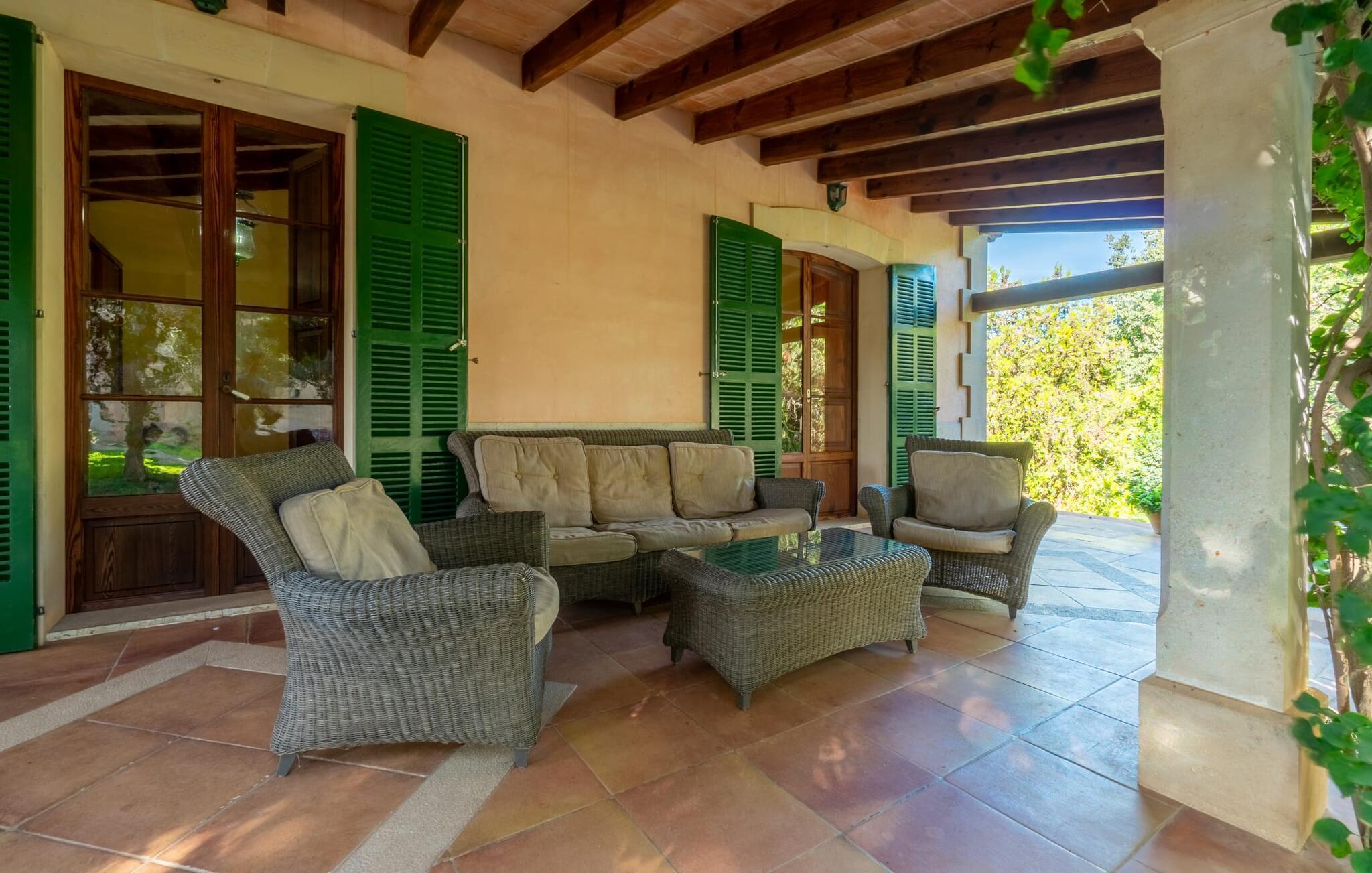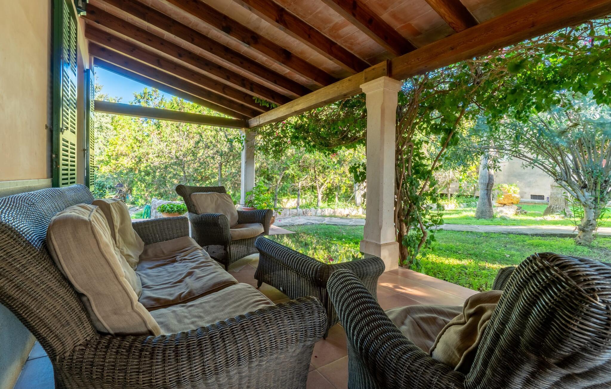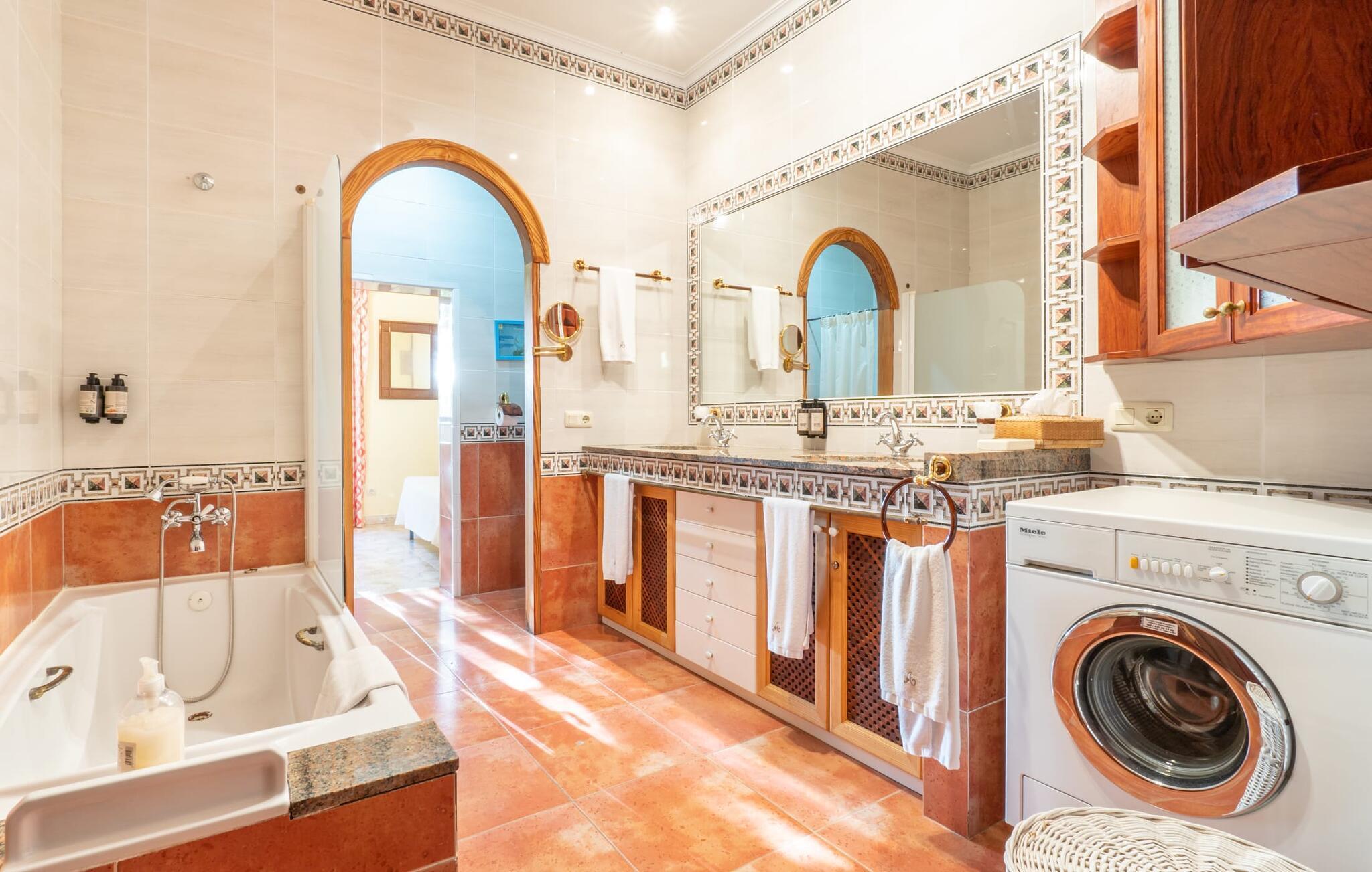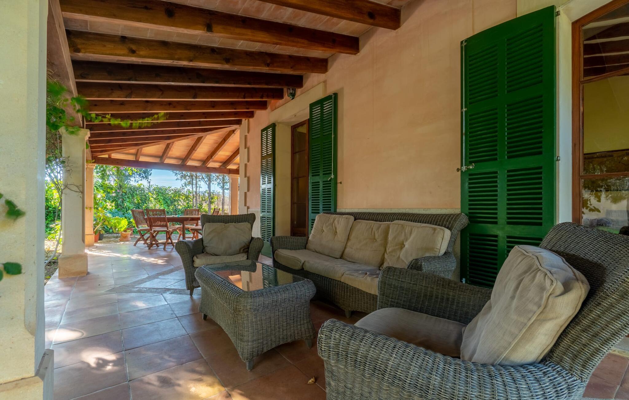 Diese großzügige Erdgeschosswohnung mit privatem Gartenanteil und großer überdachter Terrasse bietet den Komfort eines Bauernhauses und gleichzeitig alle Annehmlichkeiten eines SPA-Hotels. Gemütlichkeit herrscht im Wohnzimmer mit gemütlicher Sitzecke und TV, eine Küche direkt nebenan, zwei gemütliche Schlafzimmer und ein großzügiges Badezimmer mit Wanne und Dusche sowie eigener Waschmaschine lassen keine Wünsche offen. Dieses schöne Apartment im Süden Mallorcas ist ideal für einen ruhigen Wellness-Aufenthalt zu zweit.