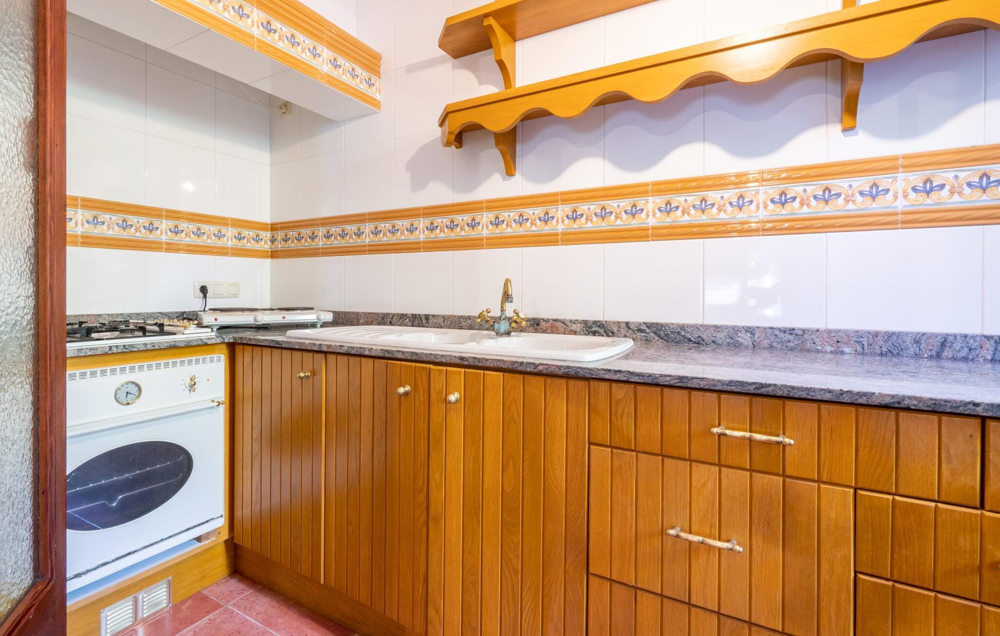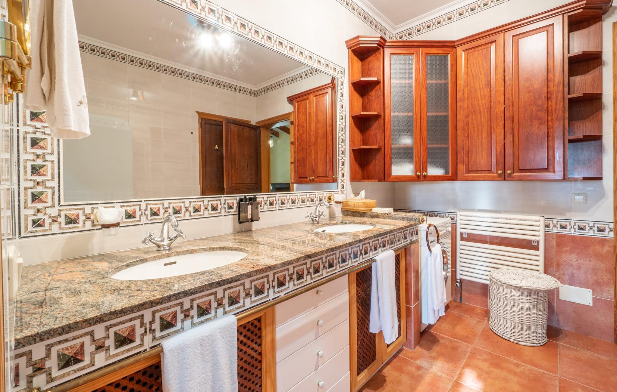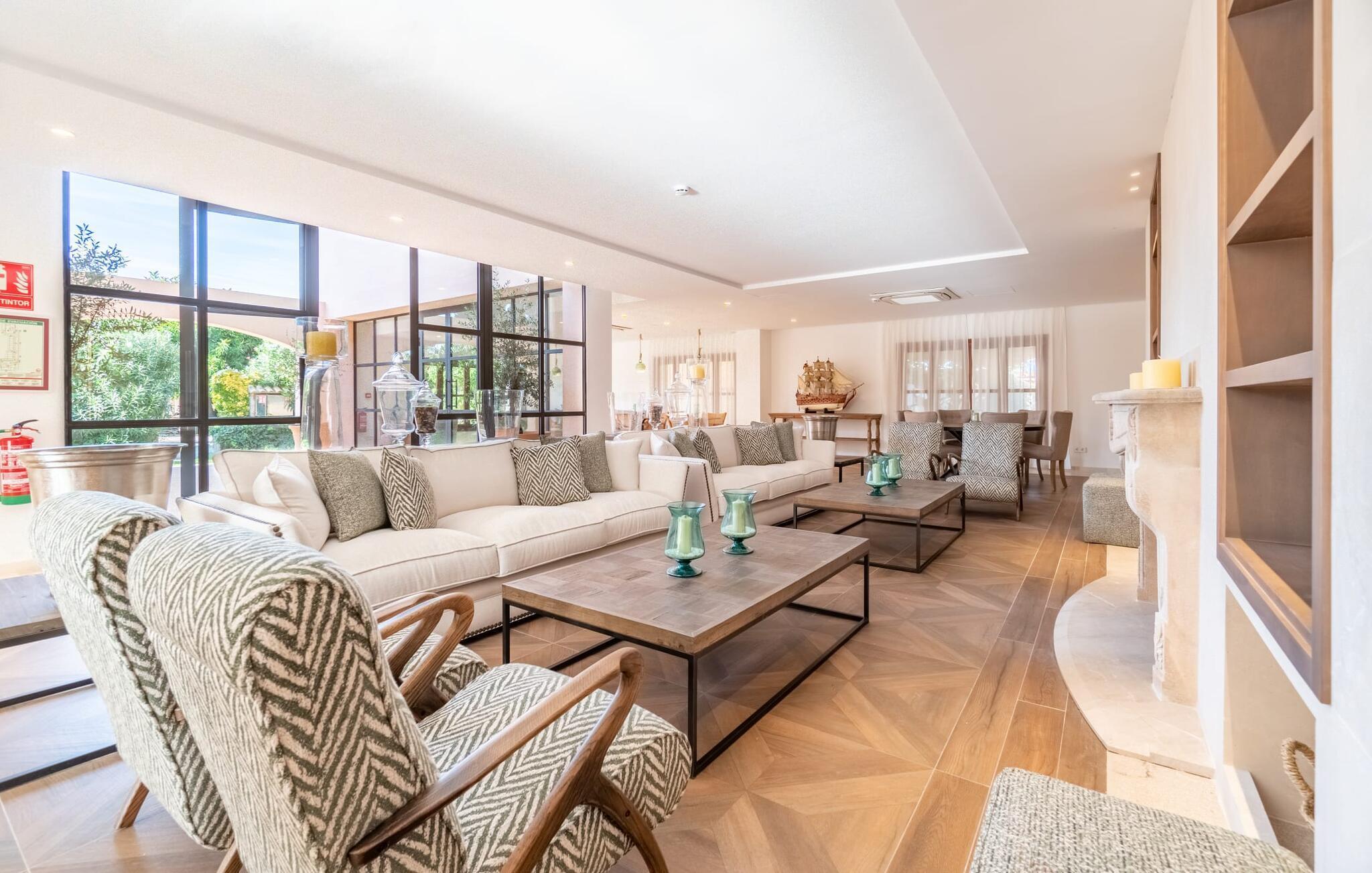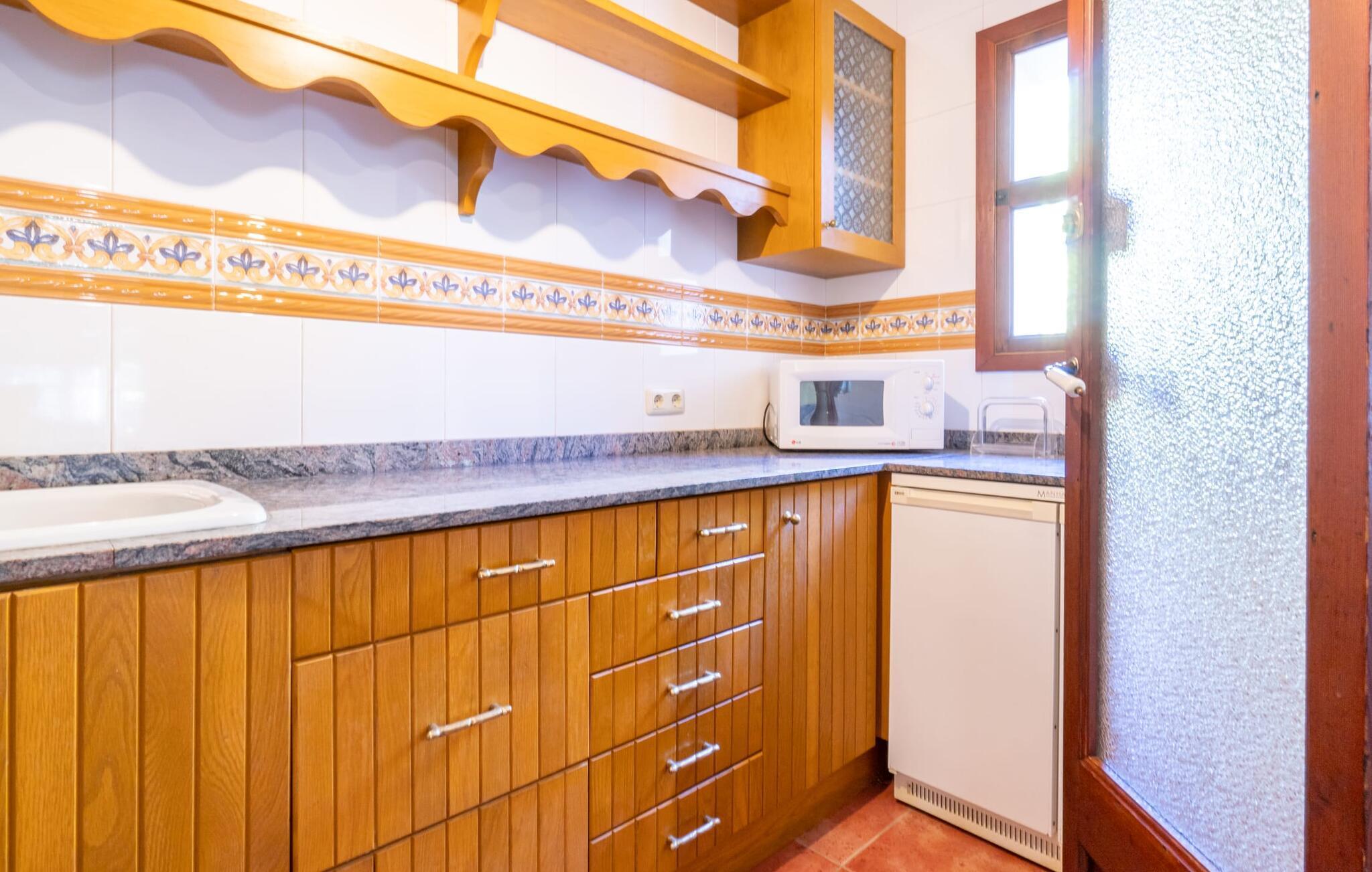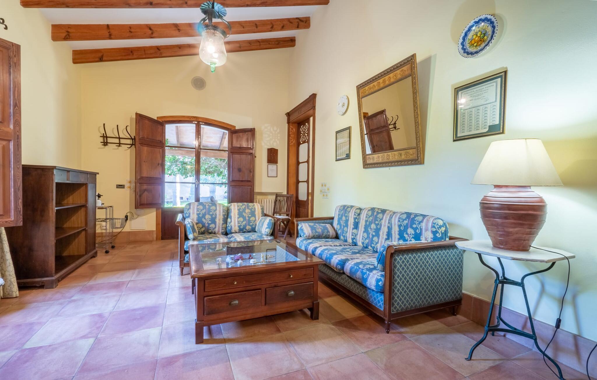 Diese großzügige Erdgeschosswohnung mit privatem Gartenanteil und großer überdachter Terrasse bietet den Komfort eines Bauernhauses und gleichzeitig alle Annehmlichkeiten eines SPA-Hotels. Gemütlichkeit herrscht im Wohnzimmer mit gemütlicher Sitzecke und TV, eine Küche direkt nebenan, zwei gemütliche Schlafzimmer und ein großzügiges Badezimmer mit Wanne und Dusche sowie eigener Waschmaschine lassen keine Wünsche offen. Dieses schöne Apartment im Süden Mallorcas ist ideal für einen ruhigen Wellness-Aufenthalt zu zweit.