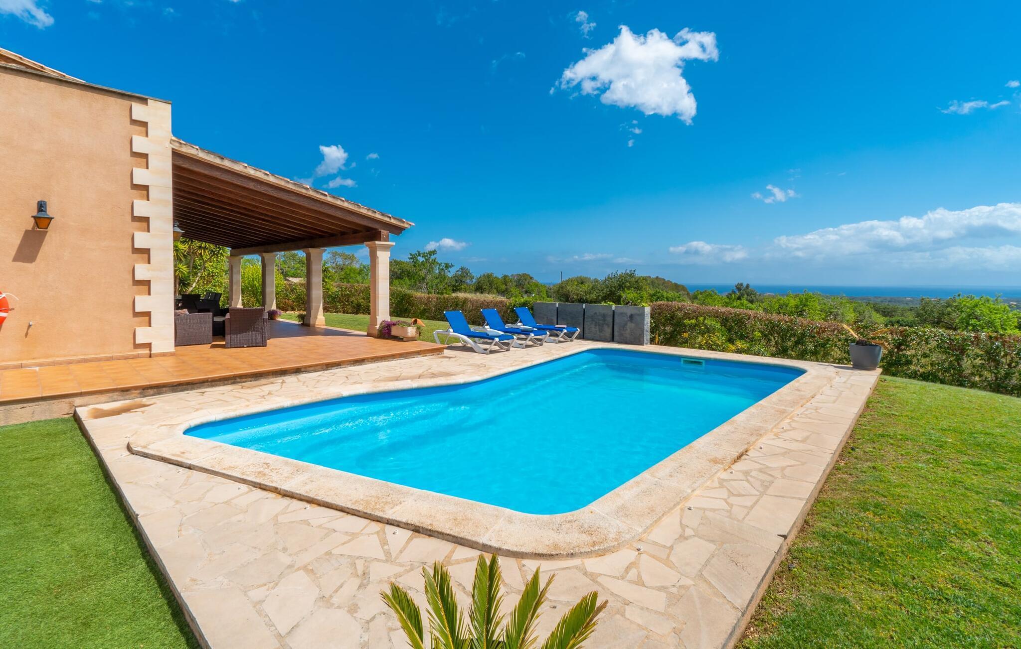 Nur 4 km Luftlinie zum Meer, viel typisch mediterrane Landschaft und eine wunderschöne Umgebung sind nur drei der vielen Vorteile, die dieses Ferienhaus auf Mallorca zu bieten hat. Auf 10.000 m² umzäuntem Grundstück gibt es viel Platz für ausgiebige Entspannung.