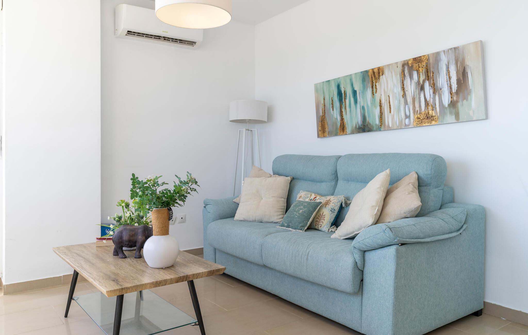 Direkt am langen Sandstrand von Sabinillas lädt Sie diese geräumige Ferienwohnung zu einer unvergesslichen Auszeit mit Freunden oder der Familie ein. Ob beim Kochen in der offenen Küche oder beim Speisen im hellen Essbereich – hier haben Sie stets das Mittelmeer im Blick. Entspannen Sie abends auf dem gemütlichen Sofa, genießen Sie gute Gespräche bei einem Glas Wein oder streamen Sie einen Film.