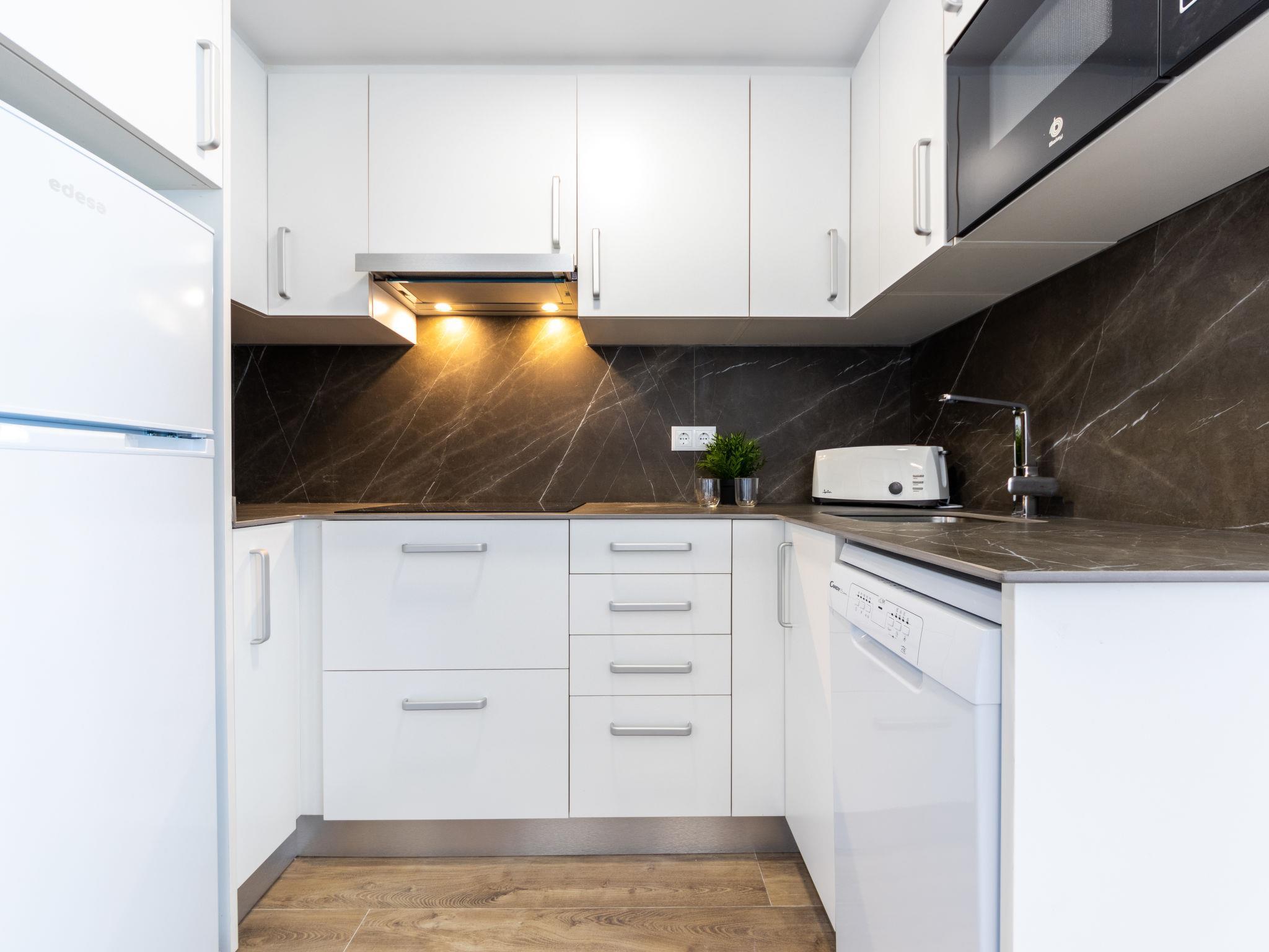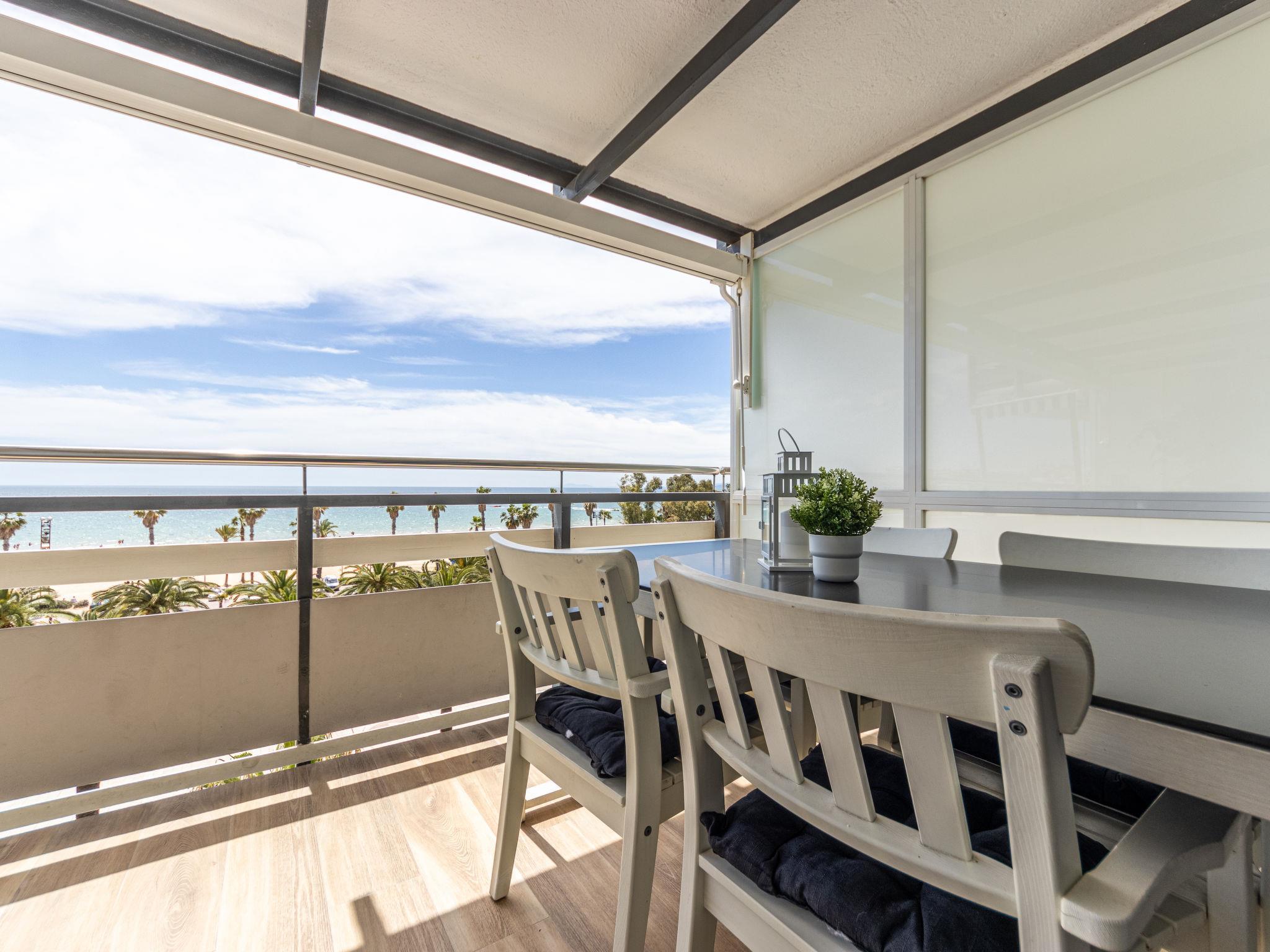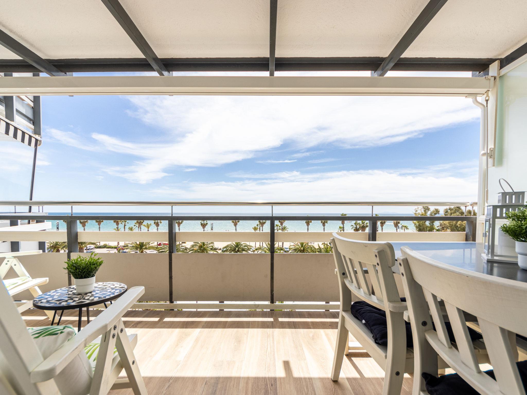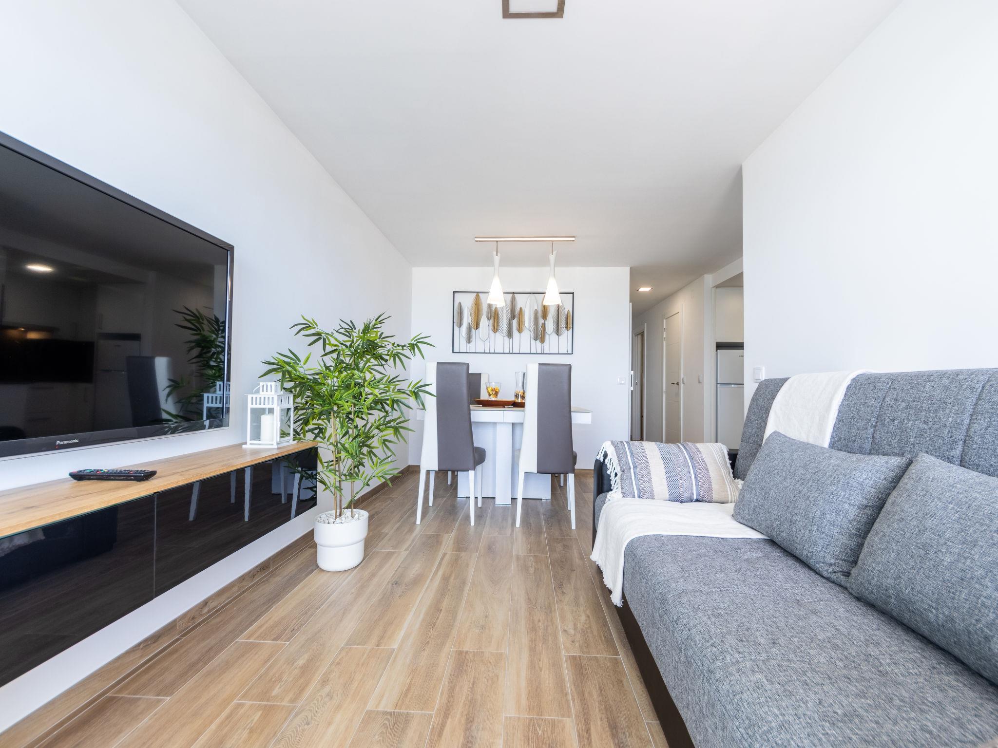 "Rodas", 3-room apartment 55 m2 on 5th floor. Object suitable for 4 adults. Fully renovated in 2023, comfortable and modern furnishings: living/dining room with 1 sofabed (130 cm, length 190 cm), air conditioning and forced-air heating. 1 room with 2 beds (90 cm, length 190 cm), TV and fan. 1 room with 1 french bed (160 cm, length 200 cm), TV and fan. Open kitchen (oven, dishwasher, 3 ceramic glass hob hotplates, toaster, kettle, electric coffee machine, combination microwave) with boiler (50 litres). Shower/WC. Heating not available in all rooms. Balcony. Terrace furniture. Marvellous view of the sea. Facilities: washing machine, iron, hair dryer. Internet (WiFi, free). Parking space n B20 no cubierto (extra) at 100 m. Please note: suitable for families. Non-smokers only. Apartment with new box springs December 2024. HUTT-075447 // Reg. Nr.: ESFCTU00004302400009696700000000000000000000075447724
