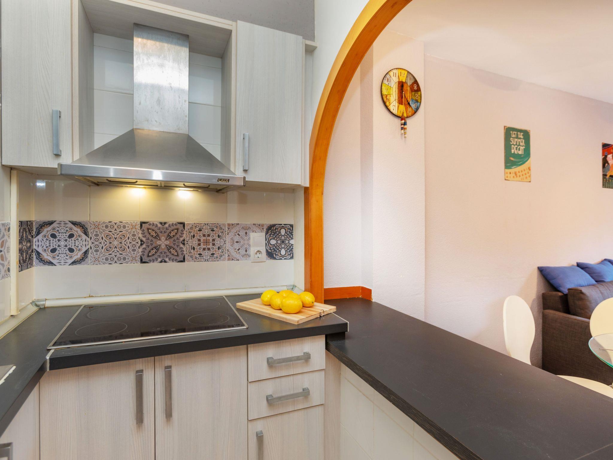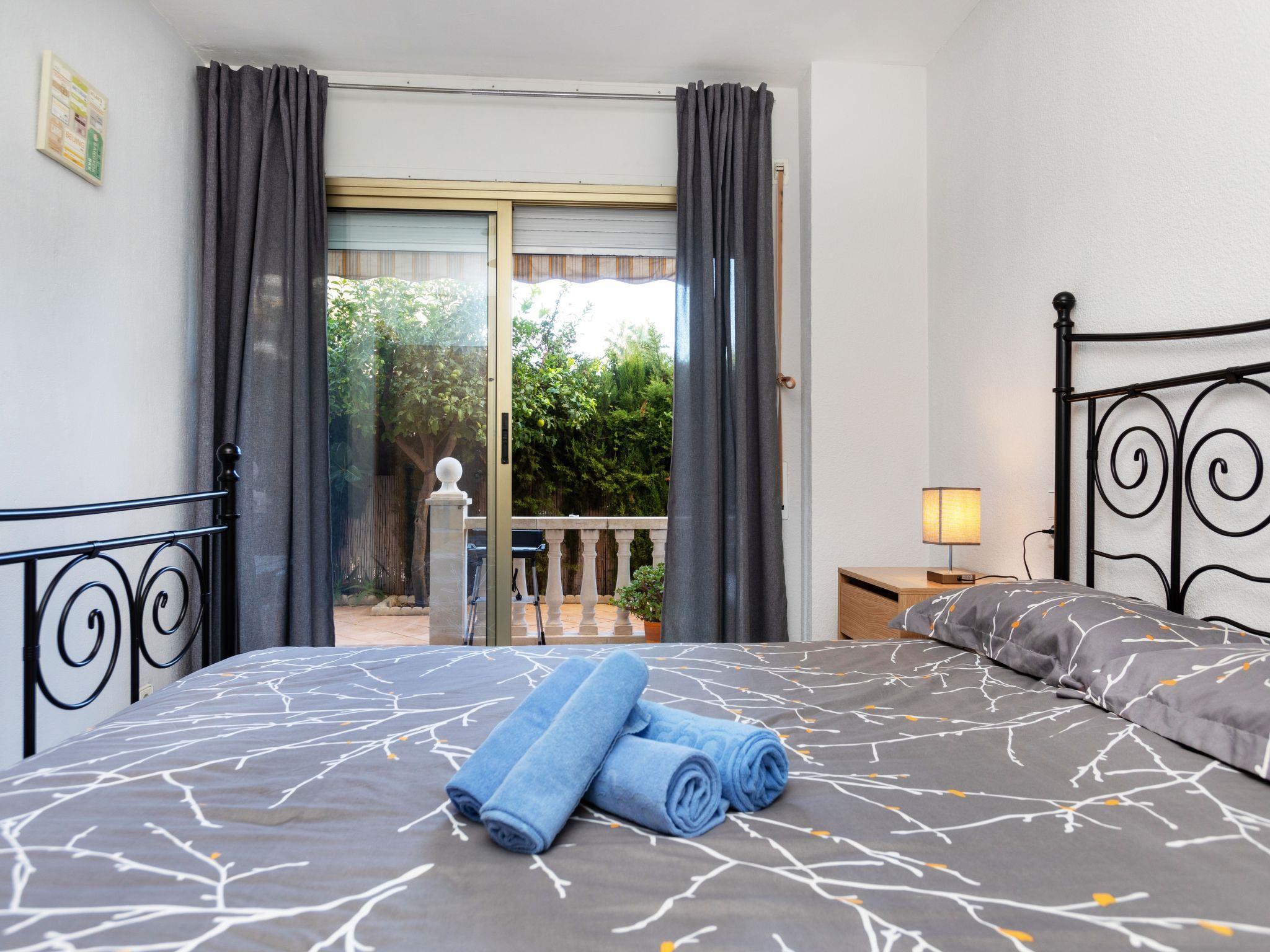 "Cordoba", 2-room apartment 52 m2, on the ground floor. Bright, practical and cosy furnishings: living/dining room with 1 sofabed (135 cm, length 190 cm), digital TV and air conditioning. Exit to the patio. 1 room with 1 french bed (150 cm, length 190 cm), fan. Open kitchen (4 ceramic glass hob hotplates, toaster, kettle, microwave, freezer, electric coffee machine). Bath/bidet/WC. Boiler (50 litres). No heating option. Patio, porch. Terrace furniture. Facilities: washing machine, iron, hair dryer. Internet (WiFi, free). Suitable for families. HUTT-033830 // Reg. Nr.: ESFCTU00004302400038175900000000000000000HUTT-0338301