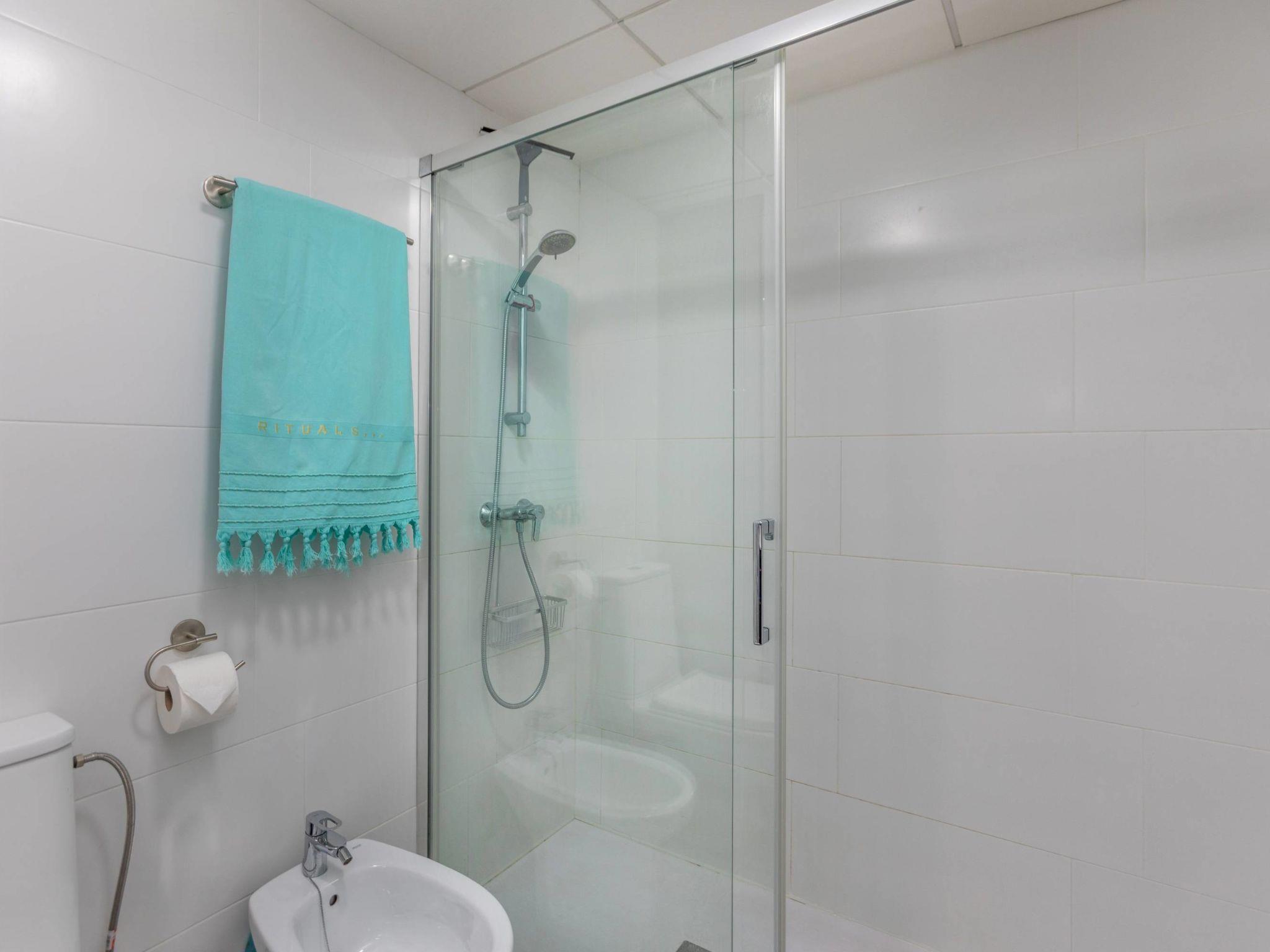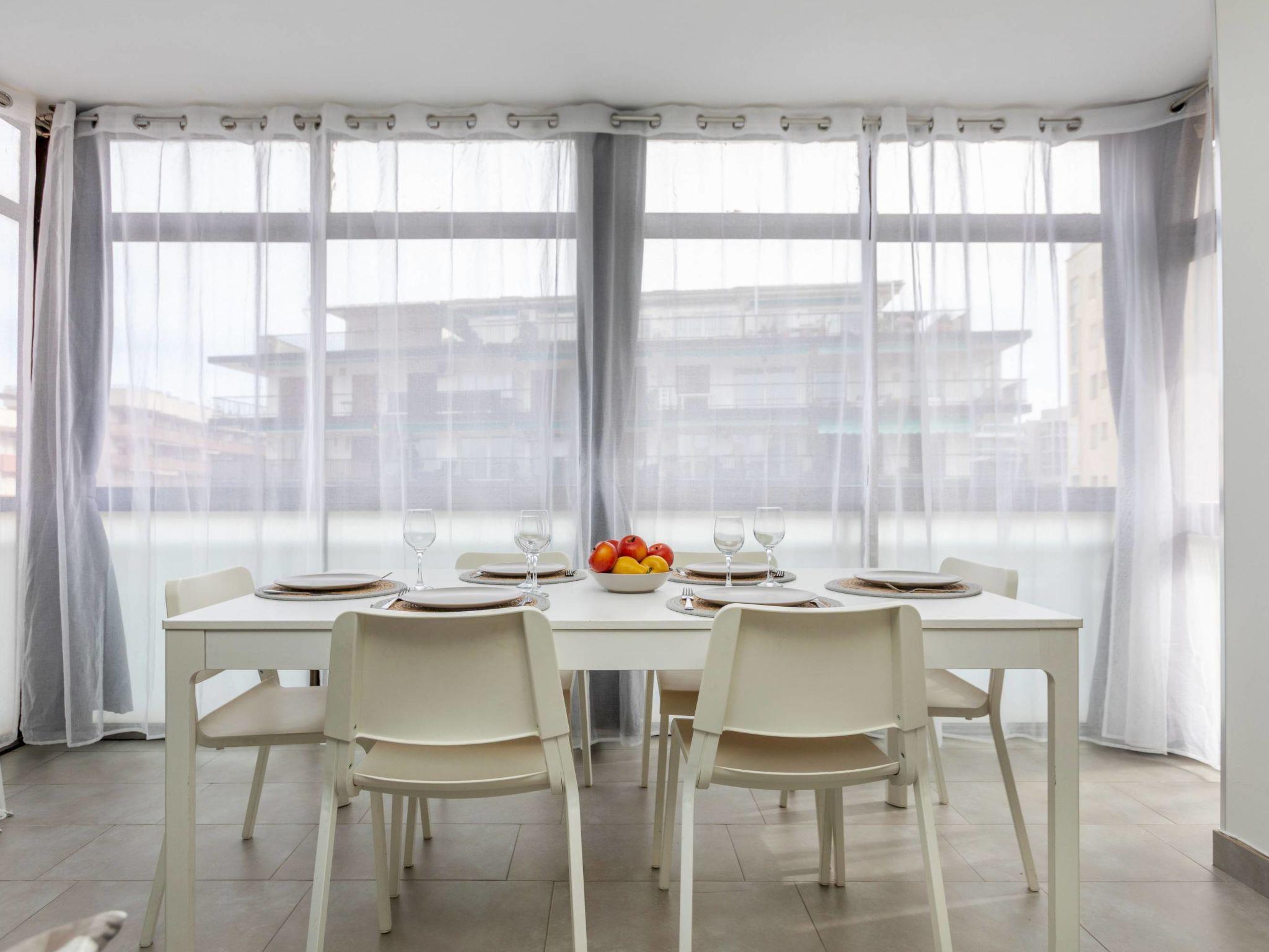 "Costa Brava", 4-room apartment 101 m2 on 5th floor. Object suitable for 6 adults. Bright, fully renovated in 2021, comfortable furnishings: living/dining room with digital TV. Exit to the terrace. 2 rooms, each room with 1 french bed (1 x 150 cm, length 190 cm). 1 room with 2 beds (90 cm, length 190 cm). Open kitchen (oven, dishwasher, 3 ceramic glass hob hotplates, toaster, kettle, microwave, electric coffee machine, Capsules for coffee machine (Nespresso) extra). 2 showers/WC. Air-conditioning, forced-air heating. Large balcony. Balcony furniture. Facilities: washing machine, iron, hair dryer. Internet (WiFi, free). Please note: non-smokers only. TV only ES. HUTT-065689 // Reg. Nr.: ESFCTU00004302400021259600000000000000000HUTT-0656896