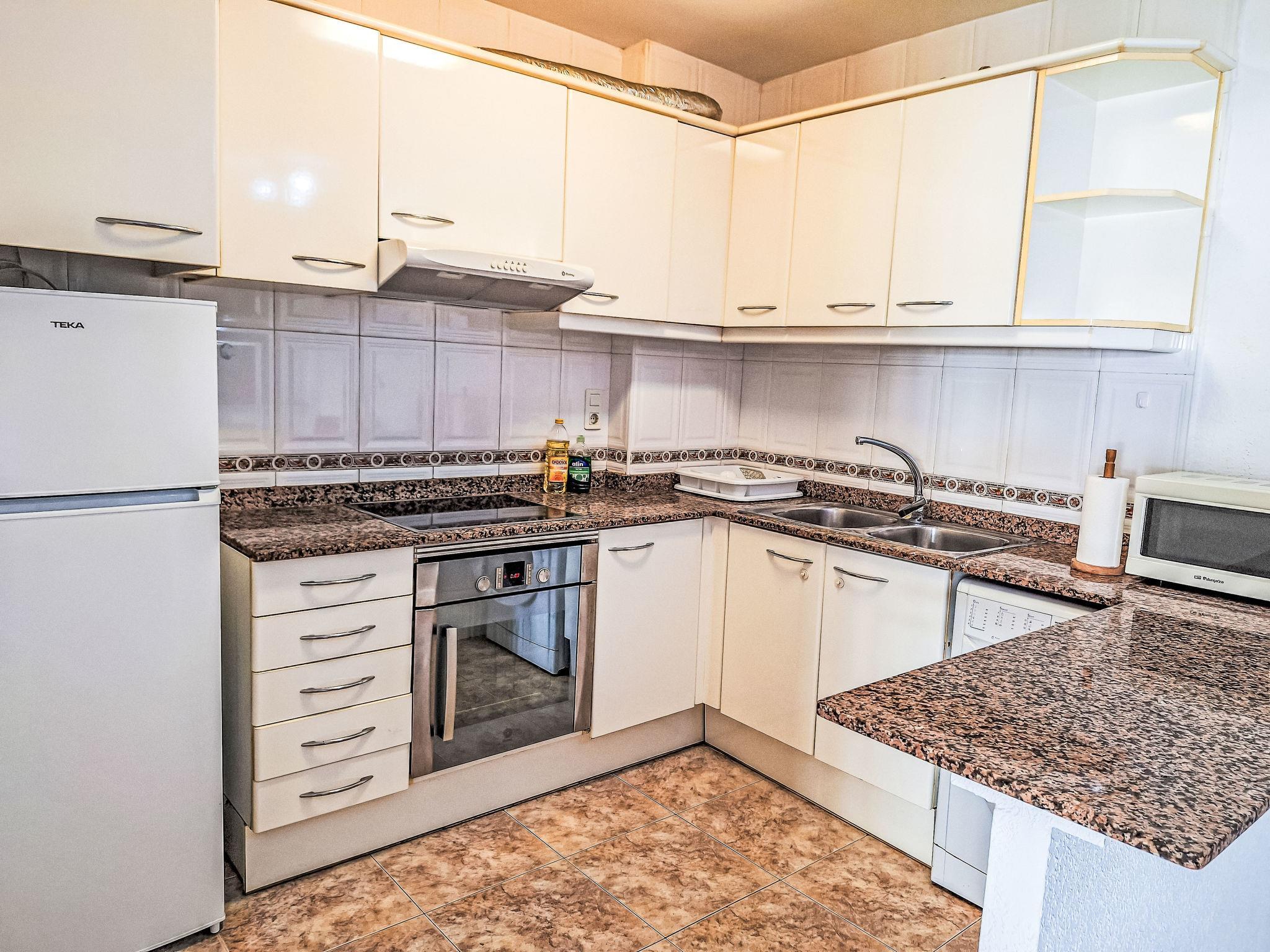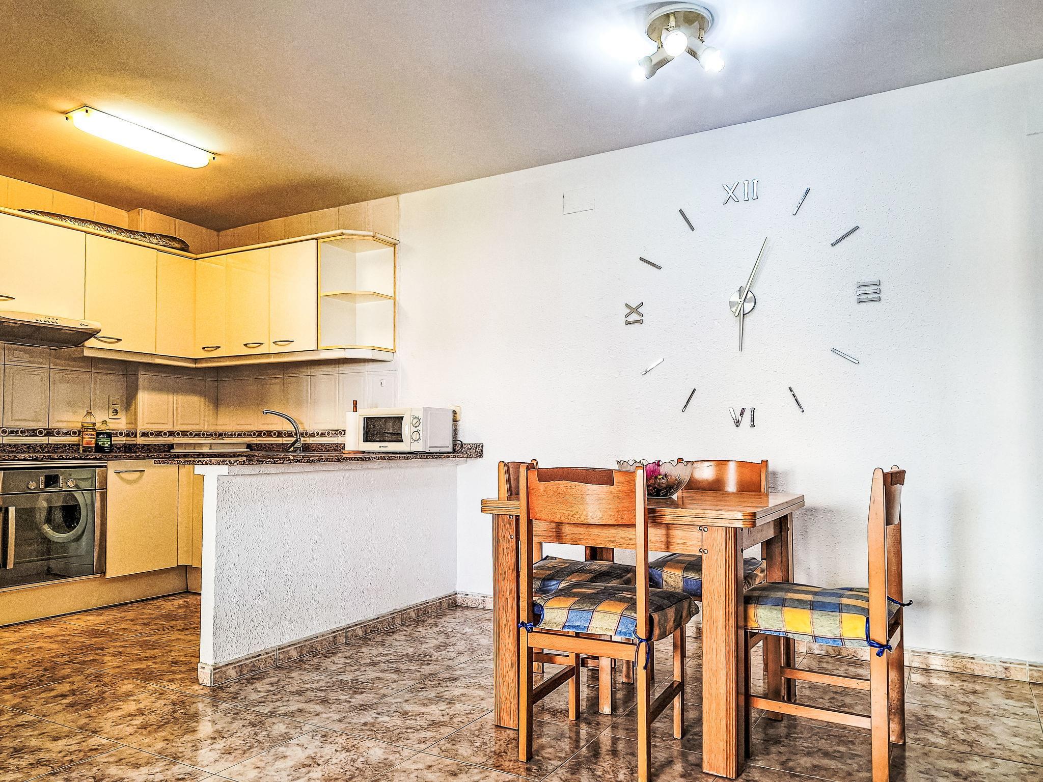 "China", 3-room apartment 65 m2 on 3rd floor. Simple and practical furnishings: living/dining room with digital TV, flat screen and boiler (50 litres). Exit to the terrace. 1 room with 1 french bed (150 cm, length 190 cm), air conditioning. Exit to the terrace. 1 room with 2 beds (90 cm, length 190 cm). Exit to the terrace. Open kitchen (oven, 4 ceramic glass hob hotplates, toaster, kettle, microwave, electric coffee machine). Shower/bidet/WC. No heating option. Large terrace 20 m2. Terrace furniture. View of the resort. Facilities: washing machine, iron, hair dryer. Internet (WiFi, free). Maximum 1 pet/ dog allowed. HUTT-033413 // Reg. Nr.: ESFCTU00004302400057386400000000000000000HUTT-0334136