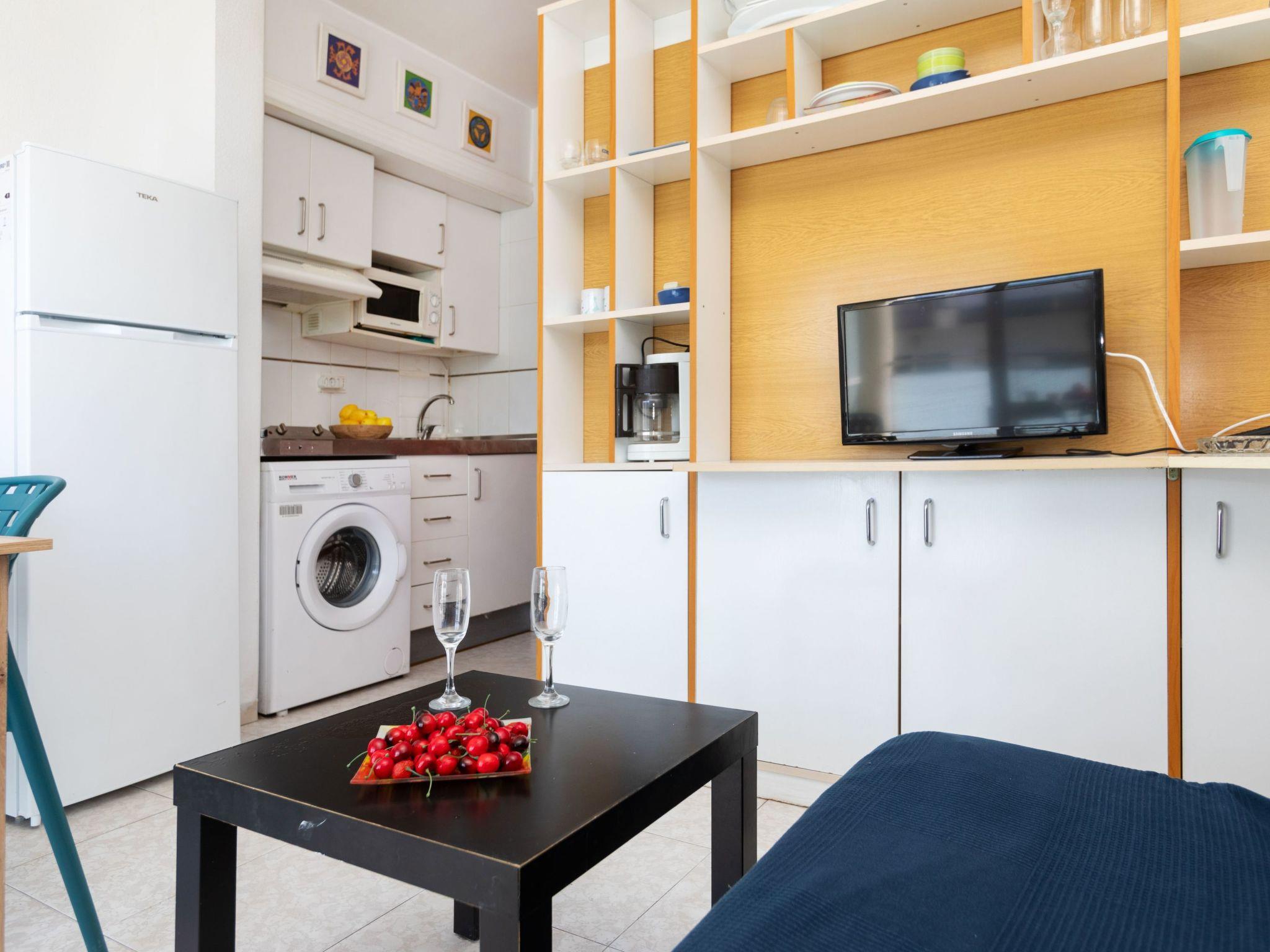 "Calafont 4", 1-room studio 30 m2 on 4th floor. Practical furnishings: living/dining room with 2 beds (90 cm, length 190 cm), 1 double sofabed (135 cm, length 190 cm), air conditioning and forced-air heating. Exit to the terrace. Open kitchen (2 hot plates, toaster, microwave, freezer, electric coffee machine). Bath/bidet/WC. Facilities: washing machine, iron, hair dryer. Internet (WiFi). Parking space n 27 con cepo. HUTT-008401 // Reg. Nr.: ESFCTU00004302400052133900000000000000000HUTT-0084017