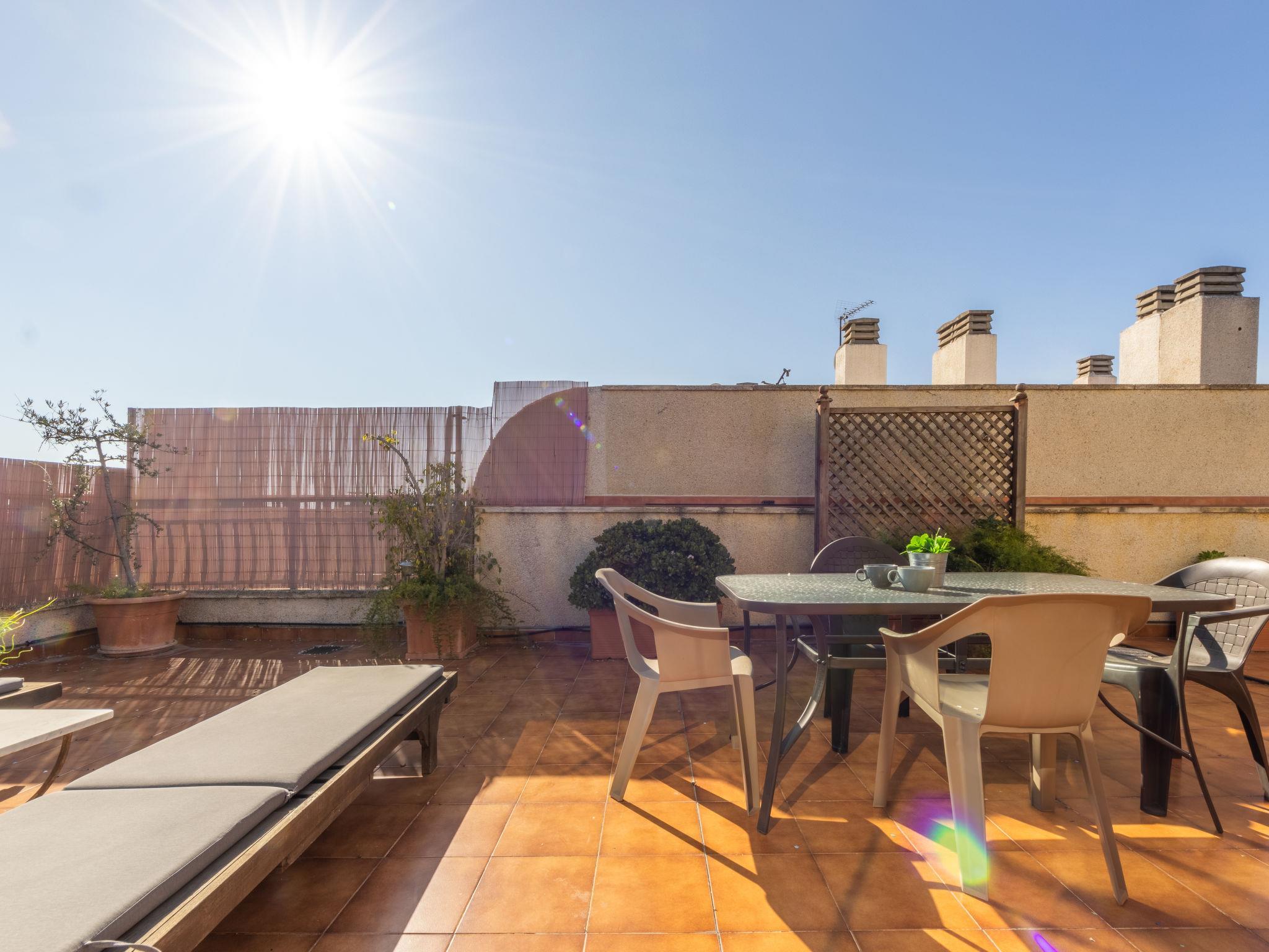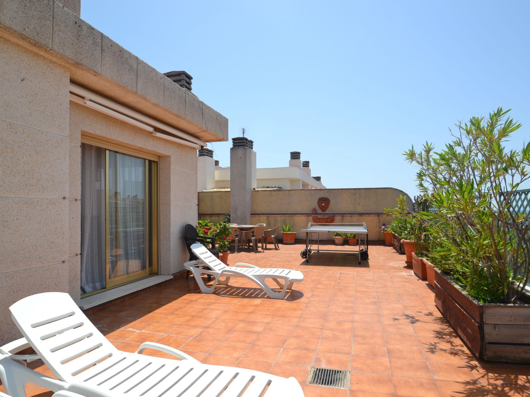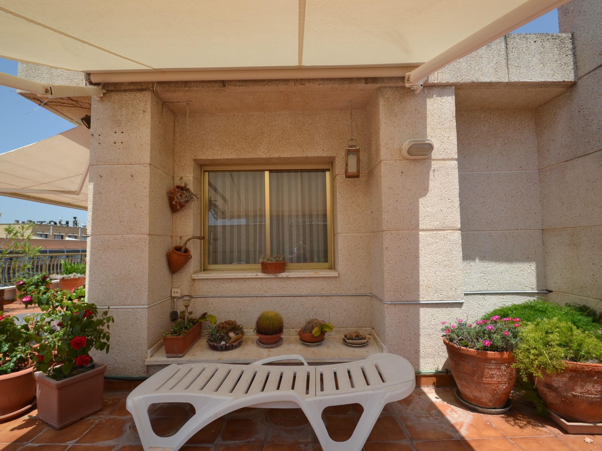 "Indasol", 4-room penthouse 80 m2. Object suitable for 6 adults. Practical and comfortable furnishings: living/dining room with 1 double sofabed, satellite TV and digital TV. Exit to the terrace. 1 room with 1 french bed (135 cm, length 190 cm), air conditioning and fan. Exit to the terrace. 2 rooms, each room with 2 beds (90 cm, length 190 cm), air conditioning and fan. Kitchen (4 hot plates, oven, toaster, kettle, microwave, electric coffee machine). Exit to the terrace. Shower/WC, sep. WC. Heating not available in all rooms. Large terrace 200 m2. Terrace furniture, barbecue, deck chairs. View of the city. Facilities: washing machine, iron, hair dryer. Internet (WiFi, free). Please note: non-smokers only. HUTT-003985 // Reg. Nr.: ESFCTU00004302400044917600000000000000000HUTT-0039855