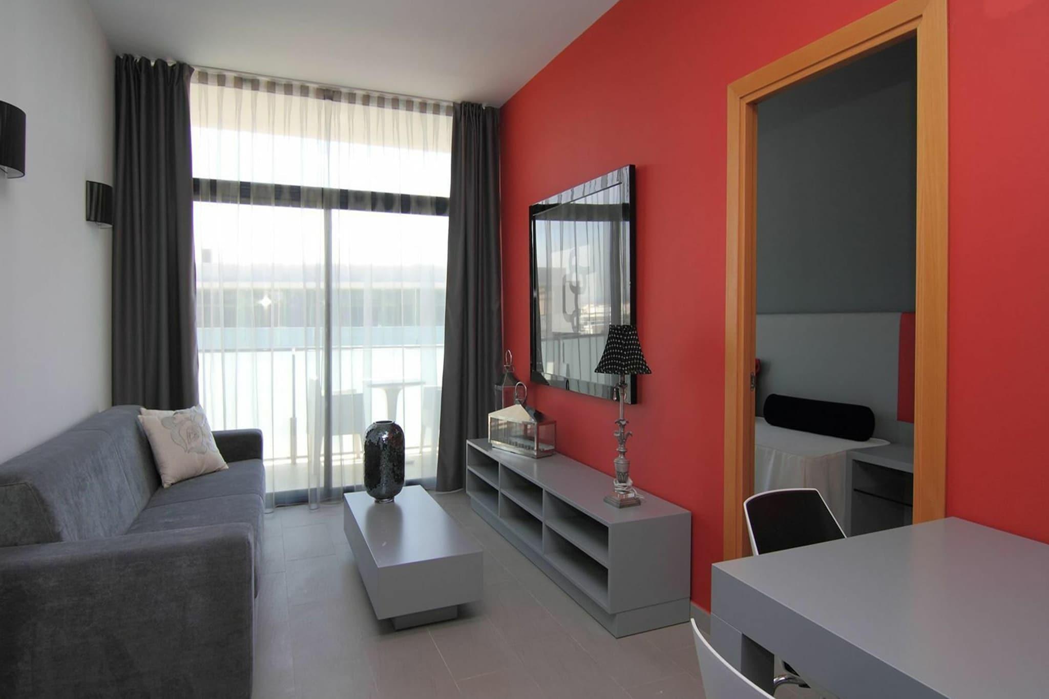 Experience a modern and elegant complex situated between Salou and La Pineda, designed to provide guests with a comfortable and enjoyable stay on the Costa Dorada. Located just steps from the beach, the area is rich in history, with Greek-era sites nearby that can be visited, and offers scenic coastal paths and proximity to main attractions. The accommodation combines contemporary design, comfort, and high-quality services to ensure an excellent experience for all travelers. The suites are fully equipped with kitchens, featuring all necessary appliances such as cookware, a fridge, and a microwave. Available in various sizes, the accommodations are suitable for different types of travelers, from couples to families. Each suite boasts modern decor and thoughtful amenities to make your stay unforgettable. One of the apartments, measuring approximately 35m², is ideal for 2 to 4 guests. It includes one bedroom with a double bed, a living room with a sofa bed for two people, and a fully equipped kitchen perfect for preparing meals during your stay.