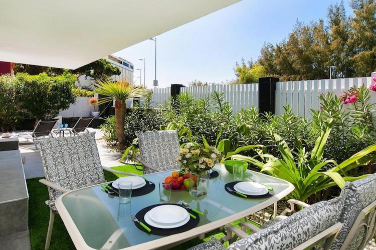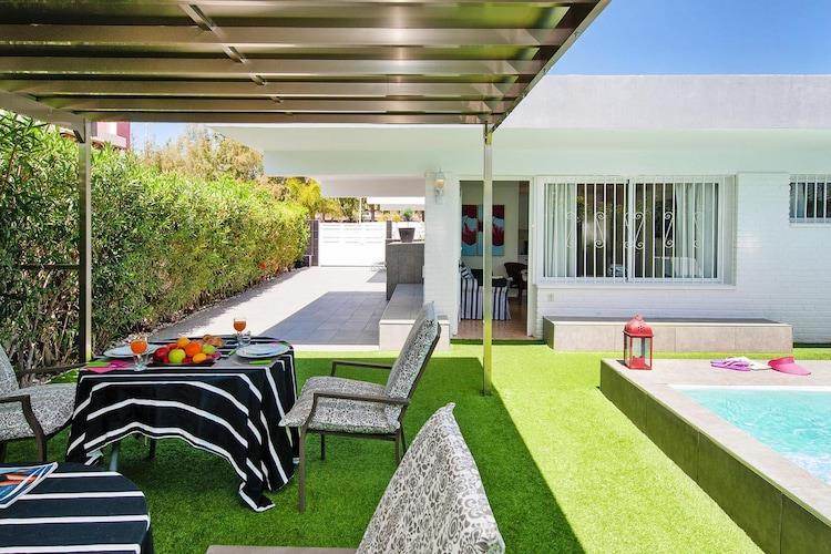 Bungalow very close to the beach with its own outdoor swimming pool. With two small kitchens, two living / dining rooms, two bathrooms and two bedrooms, the holiday home offers enough space for up to 4 people. The decor is modern and comfortable and complies with expectations of demanding customers. You and your loved ones can sit together on the terrace and take out a nice day in the sun with many experiences and impressions. Together with Maspalomas, Playa del Inglés and Bahia Feliz, San Agustín forms one of the most famous tourist centers in the south of Gran Canaria. However, compared to the neighboring city of Playa del Inglés, San Agustín is much quieter and calmer. Along the promenade you will find a number of excellent fish restaurants, as well as a selection of cafés, bars and shops. The beach is well protected and therefore ideal for families. In addition to a quiet day in the sun, numerous water sports activities are also offered here. At Playa del Inglés you have the option of going jetboaten, jet skiing or flyboarding in addition to parasailing.