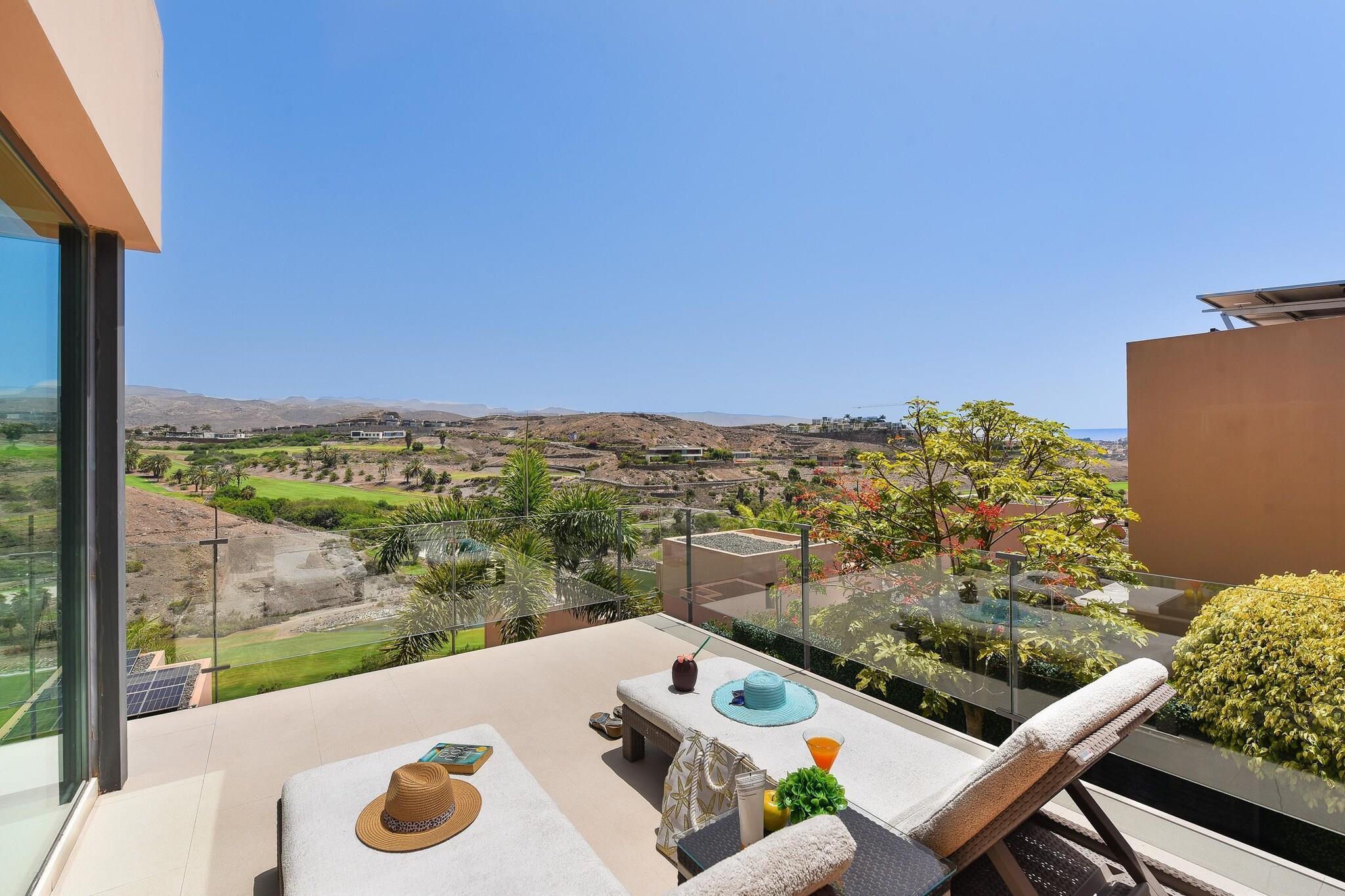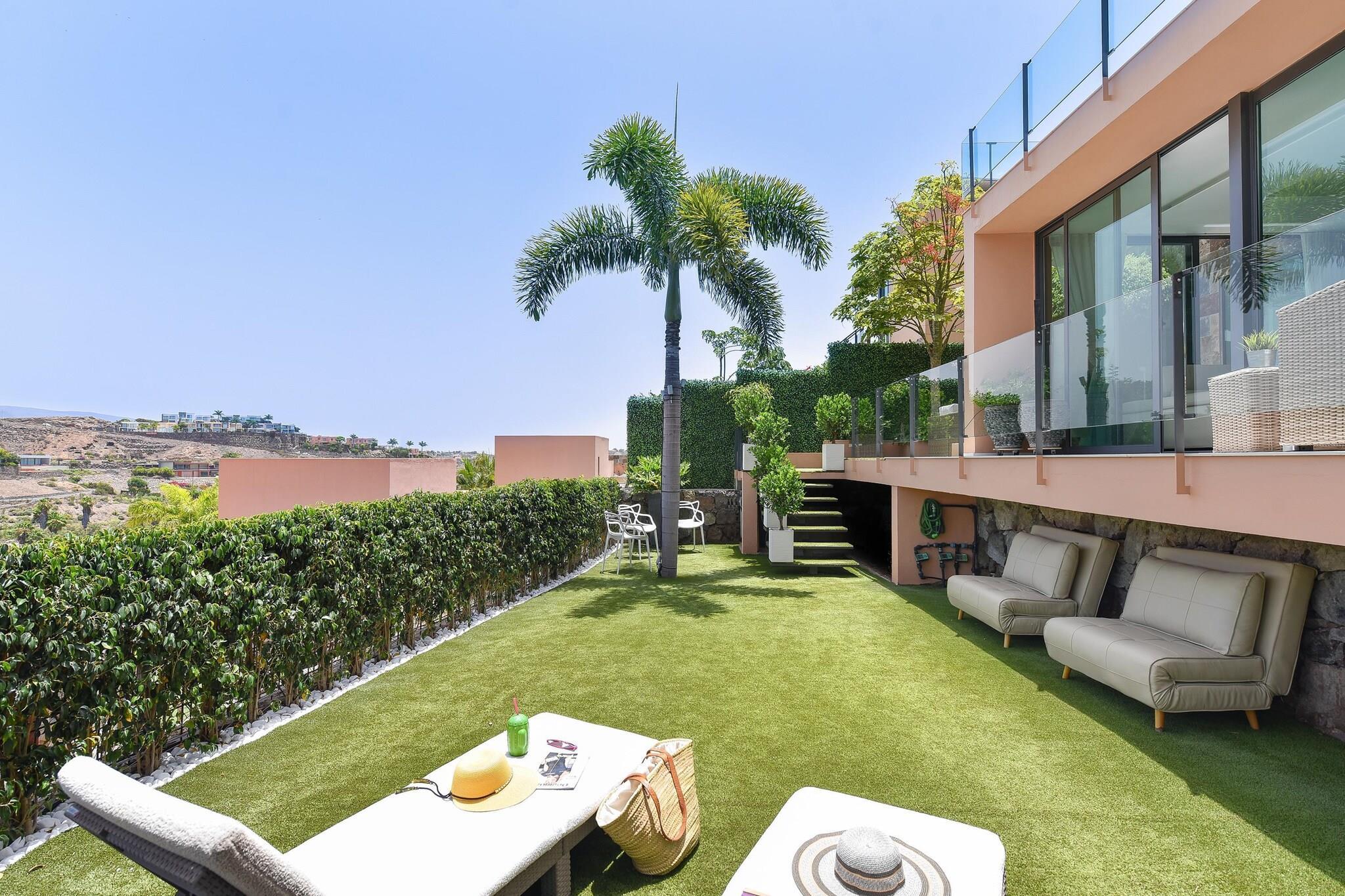 This villa has three spacious bedrooms, one of them is on the ground floor with a view of the garden, a double bed and a bathroom with shower. The master bedroom on the upper floor is equipped with a double bed, large windows that provide plenty of natural light and views over the golf course and access to a small private terrace/solarium. Los Lagos 31 is situated in a very quiet place where you can spend your well-deserved holiday under the sun and have a chill out time in its private terrace area. It counts on a fully equipped kitchen with dishwasher, oven, washing machine, dryer, microwave... will make your stay super carefree and full of comfort. The living room on the ground floor has a comfortable sofa to relax in front of the Smart TV, and has direct access to the garden with sun loungers and seating area. If you feel like swimming, you can use its communal pool by the property which is heated free of charge throughout the winter (November to April). El Salobre Golf Resort, is a secluded area for peace and quiet, but at the same time is only a 10 minute drive from Maspalomas or Meloneras, or 40 minutes from the capital, in Gran Canaria everything is within reach in a short drive! Villa Los Lagos 31 is undoubtedly a wonderful choice for a sunny holiday in the south of Gran Canaria, with the guarantee of enjoying the luxury, private and exclusive accommodation only offered by VillaGranCanaria.