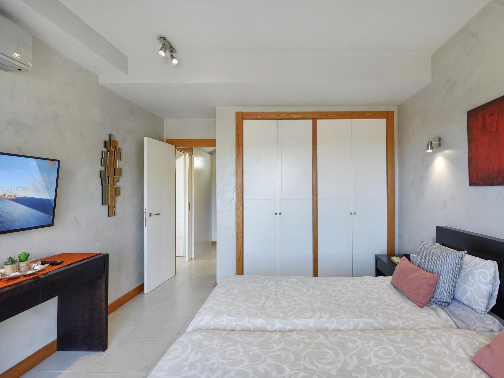 "Vista Golf 5", 3-room house 105 m2. Comfortable and modern furnishings: living room with digital TV and air conditioning. Exit to the patio, to the swimming pool. 1 room with 2 beds and air conditioning. Exit to the patio, to the swimming pool. Kitchen (oven, dishwasher, 3 ceramic glass hob hotplates, toaster, kettle, microwave, freezer, electric coffee machine) with dining table and dining nook. Shower/bidet/WC. Upper floor: 1 room with 1 french bed and air conditioning. Exit to the balcony. Shower/bidet/WC. Patio. Terrace furniture, barbecue, deck chairs. View of the garden and the forest. Facilities: washing machine, iron, children's high chair, baby cot for up to 2 year olds, hair dryer. Internet (WiFi, free). Parking (1 car). Please note: non-smoking house. Maximum 1 pet/ dog allowed. 2022-T6481 // Reg. Nr.: ESFCTU0000350120004894390000000000000VV-35-1-00175146