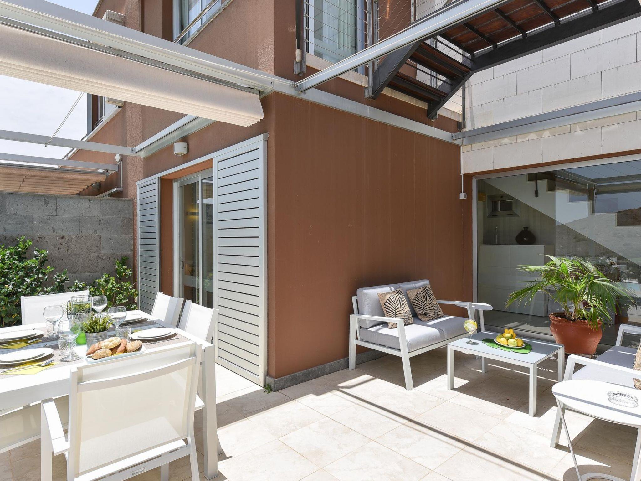 Modern, comfortable villa "Vista Golf 10". In the centre of Salobre Golf Resort, outside the resort Maspalomas, in a secluded, quiet position. Private: garden (fenced) with lawn, swimming pool kidney shaped (5 x 3 m, depth 140 - 140 cm, seasonal availability: 01.Jan. - 31.Dec.). Outdoor shower, barbecue. In the house: sun terrace, air conditioning. Parking on the premises, public parking on the road. Supermarket 400 m, restaurant 600 m, bus stop "Las Crucitas" 20 km. The owner does not accept any youth groups. Please note: airfield 25 km from the property. Neighbourhood highly sensitive to noise. Quietness and good behaviour expected.