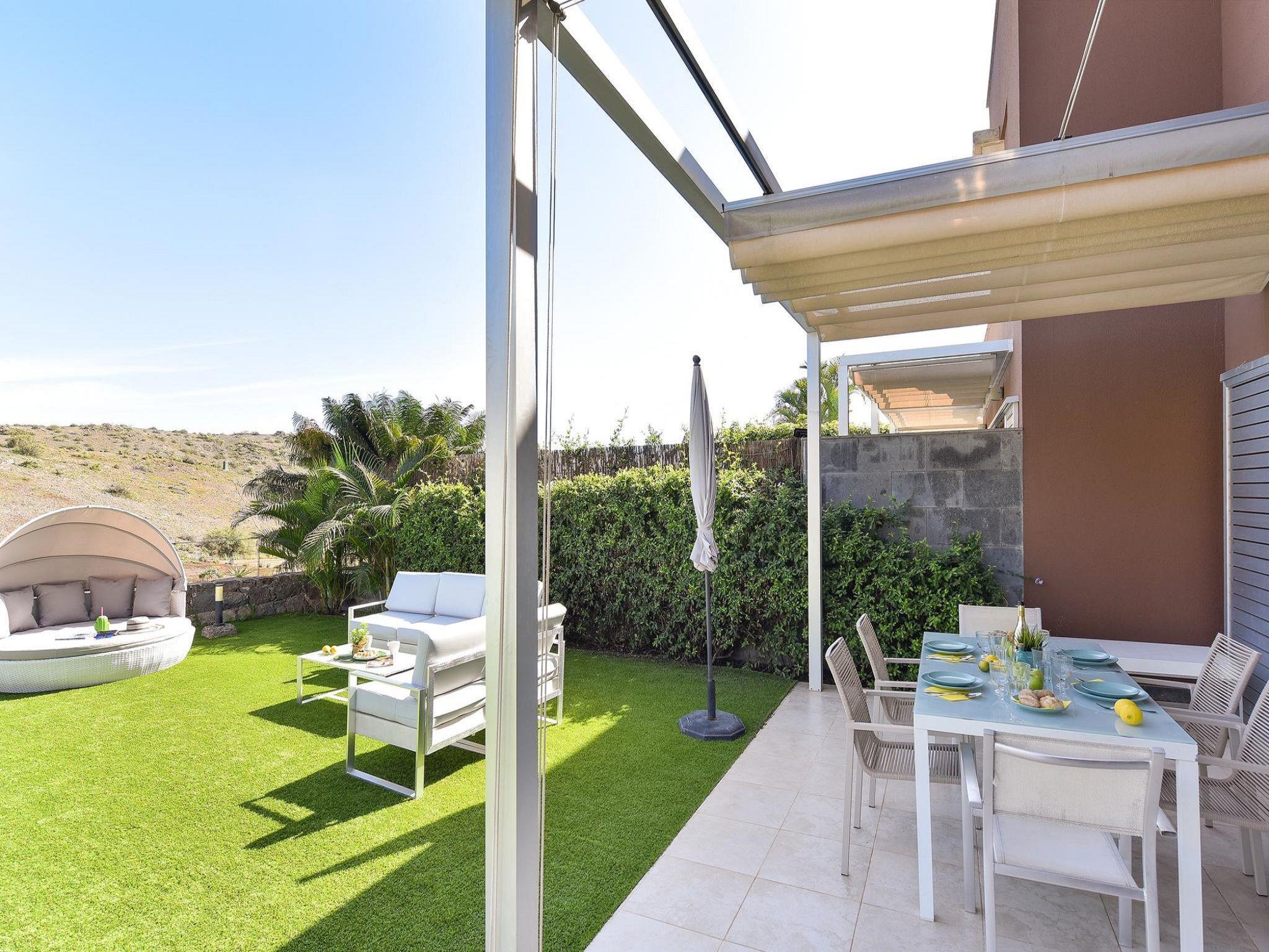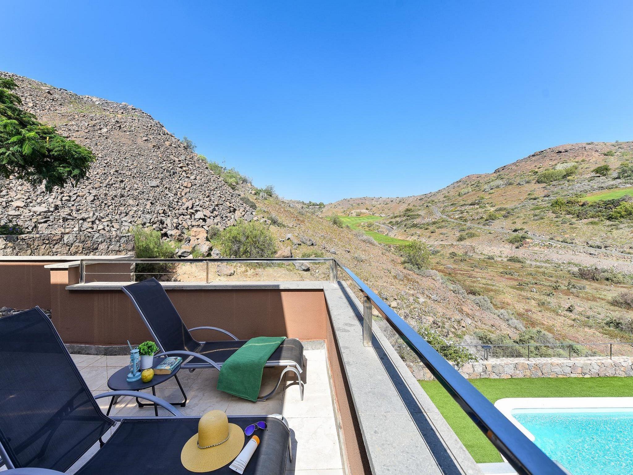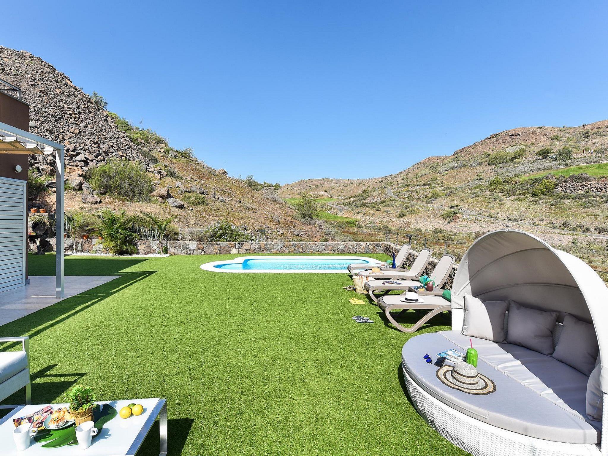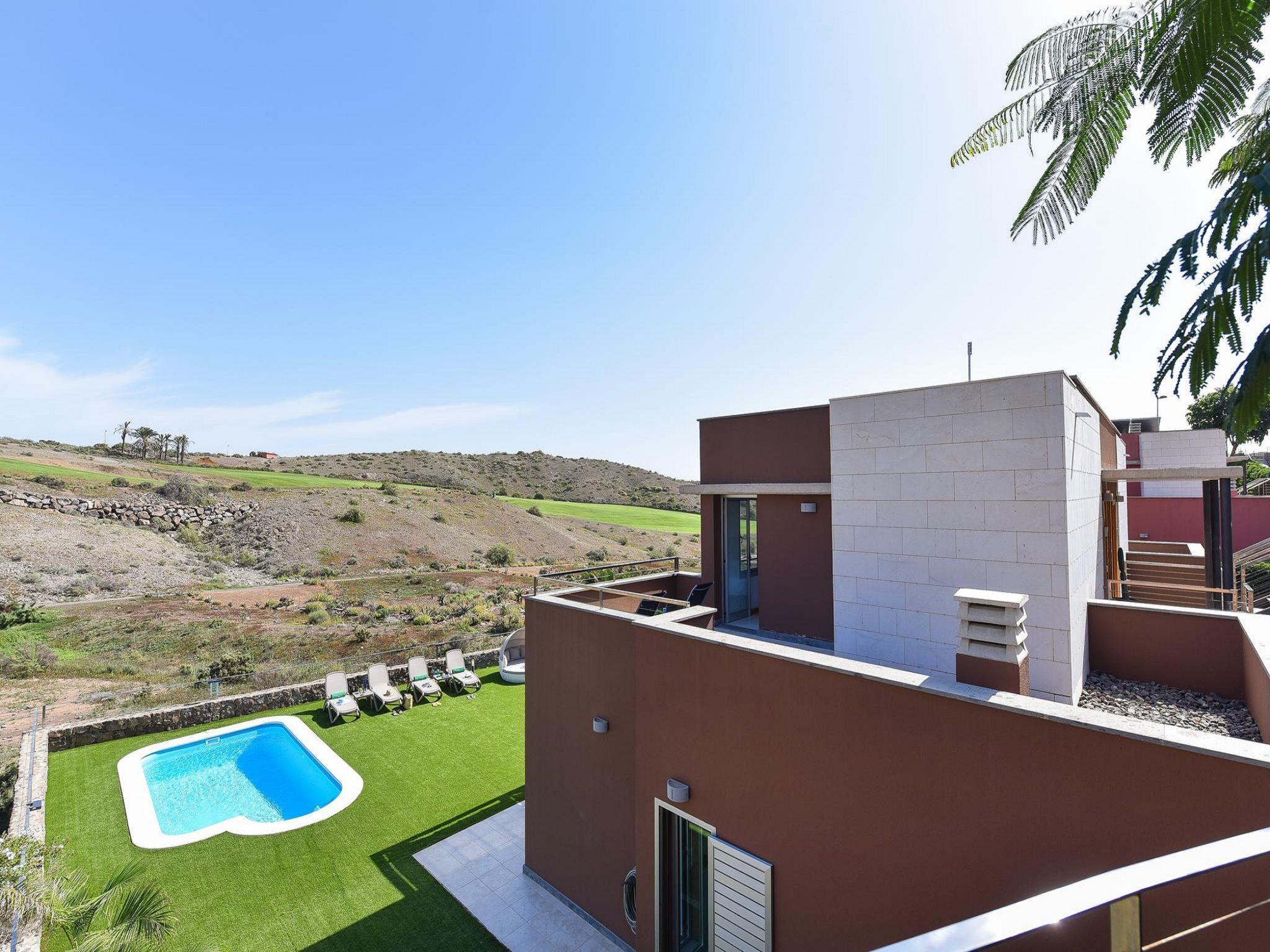Very modern, comfortable villa "Vista Golf 30". In the centre of Salobre Golf Resort, excellent location: right in the centre but still quiet. Private: beautiful, well-kept garden, swimming pool kidney shaped (5 x 3 m, depth 140 cm, seasonal availability: 01.Jan. - 31.Dec.). Parking at the house. Bus stop "Las Crucitas" 19 km. Please note: car recommended. Suitable for families, baby equipment on request. The owner does not accept any youth groups. Neighbourhood highly sensitive to noise. Quietness and good behaviour expected.