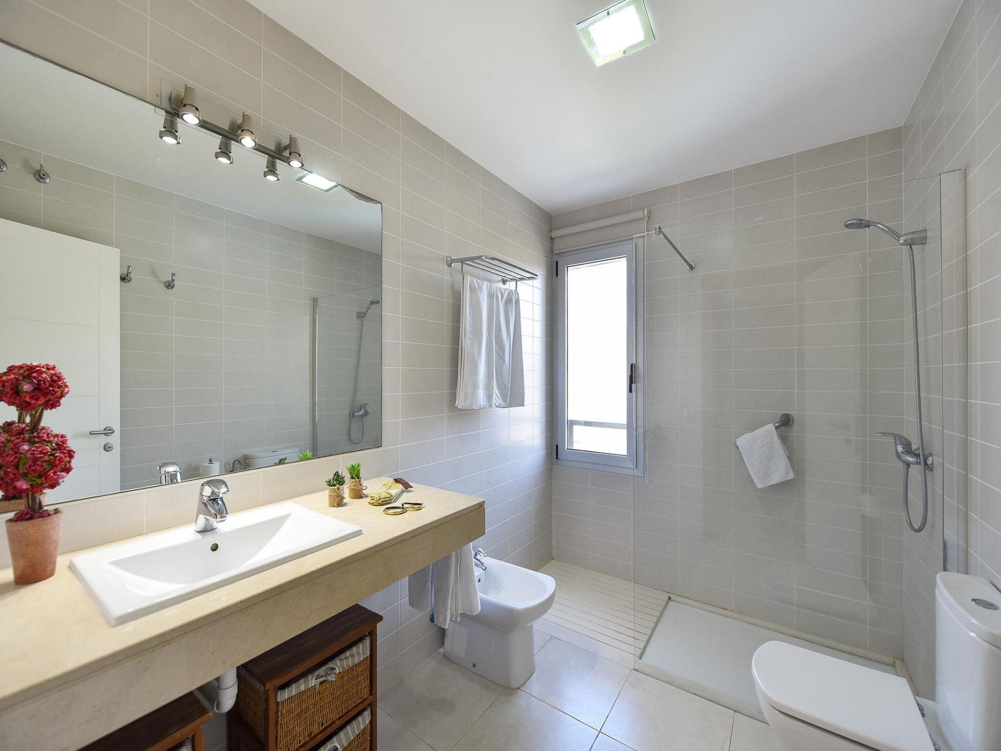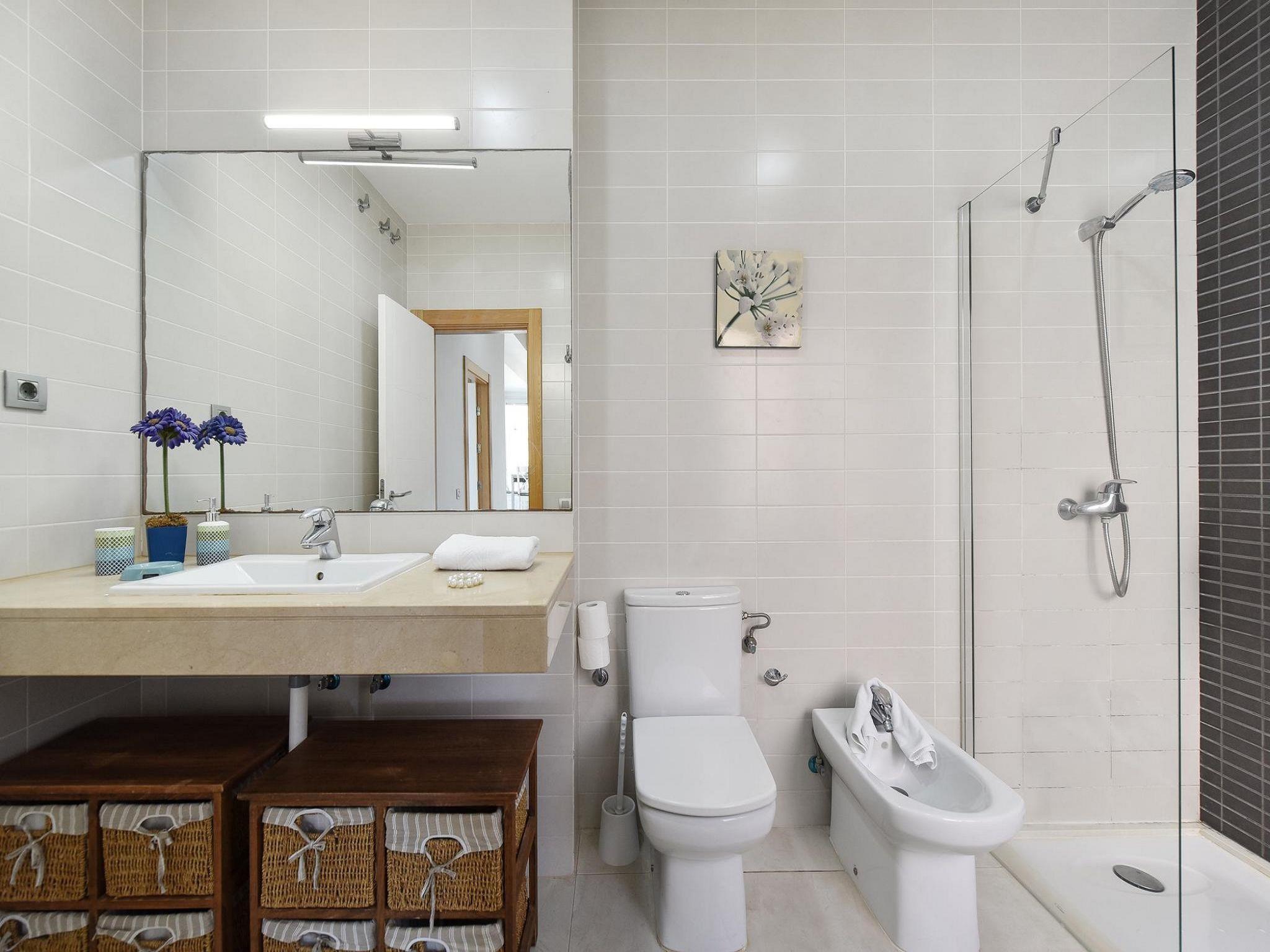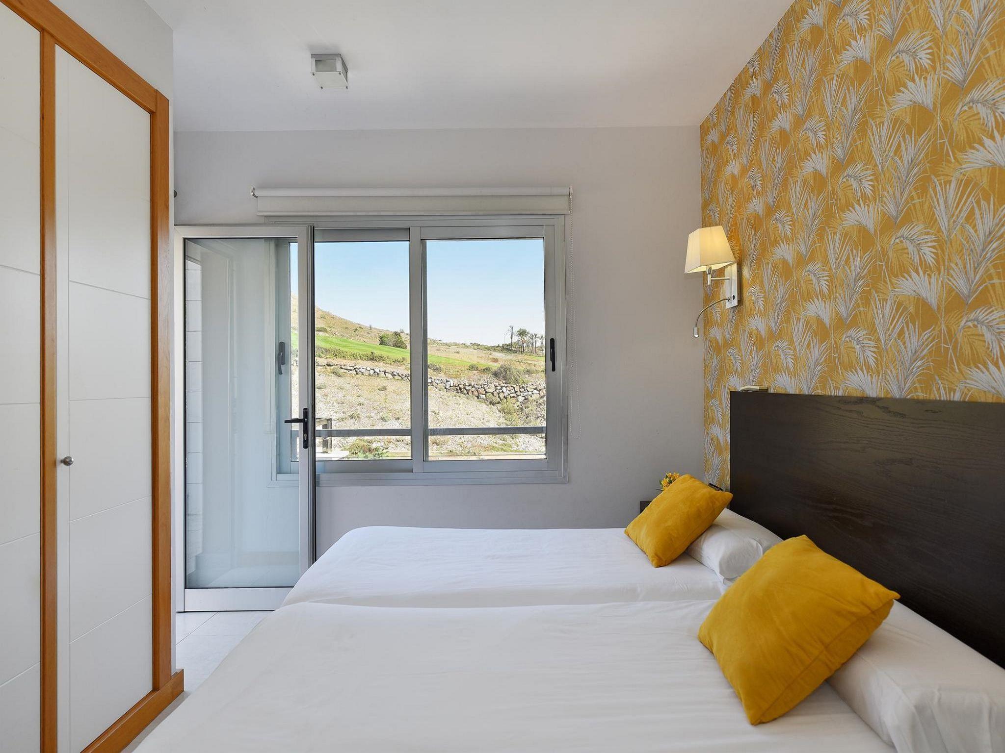 "Vista Golf 30", 3-room villa 105 m2. Object suitable for 2 adults + 2 children. Bright, simple and cosy furnishings: living room with TV, flat screen and air conditioning. Exit to the patio. 1 room with 1 double bed (150 cm, length 180 cm), TV (flat screen). Exit to the balcony. 1 room with 2 beds (90 cm, length 180 cm). Open kitchen (oven, dishwasher, 4 ceramic glass hob hotplates, toaster, kettle, microwave, freezer, electric coffee machine). 2 Baths/showers/WC. Terrace furniture, barbecue, deck chairs (5). Beautiful view of golf course. Facilities: Internet (WiFi, free). Garage on the property. Please note: non-smokers only. VV-35-1-0001564 // Reg. Nr.: ESFCTU00003501200048968200000000000000VV-35-100015643