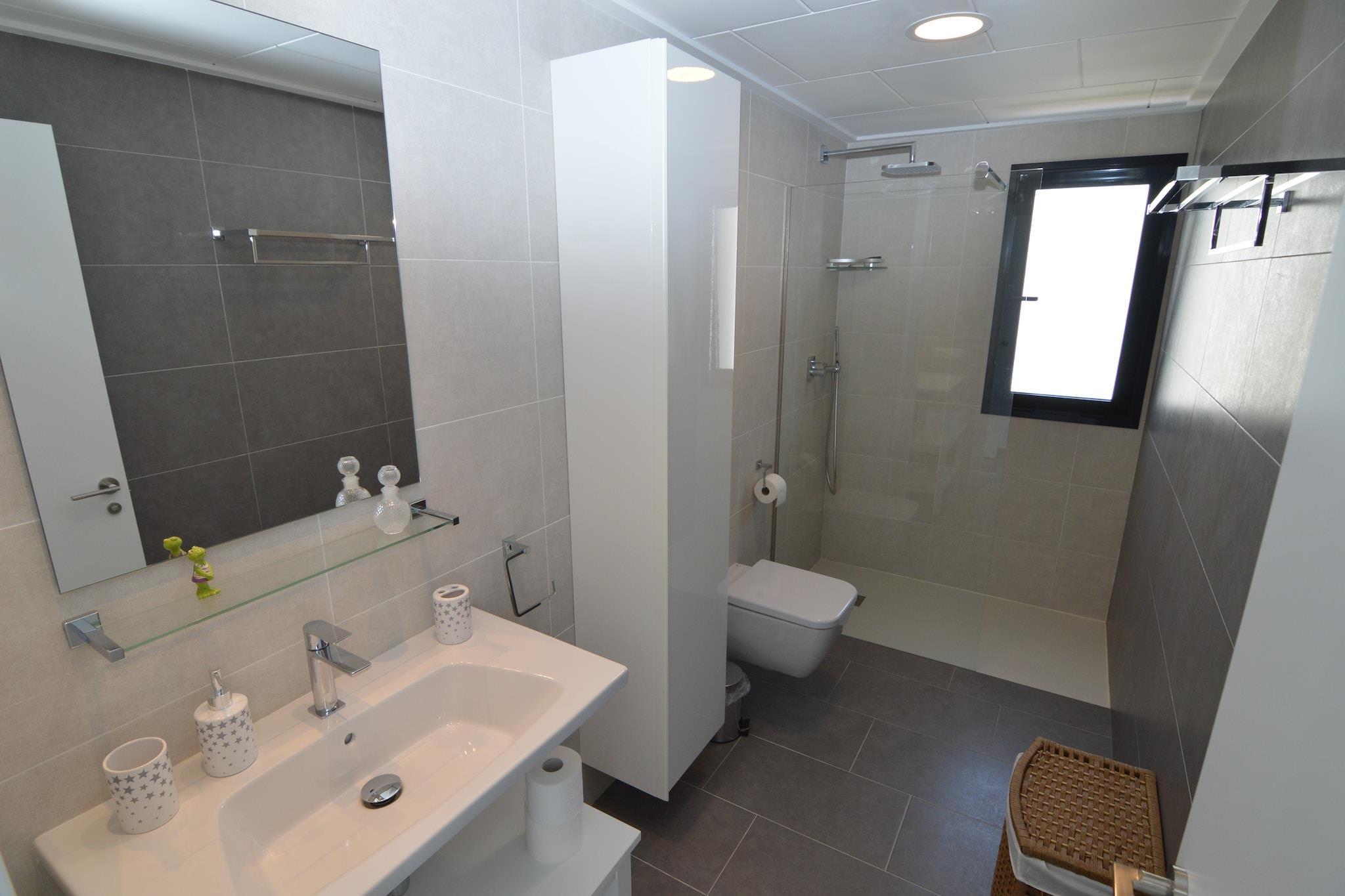 Ground floor: (Living room, Kitchen(cooker, coffee machine(filter), oven, combination microwave, dishwasher, fridge-freezer), bedroom(2x single bed(80 x 200 cm)), bathroom(shower, washbasin, toilet), garage, tumble dryer, air conditioning) On the 1st floor: (Bedroom with bathroom(double bed(160 x 200 cm), shower, washbasin, toilet), Bedroom with bathroom(2x single bed(80 x 200 cm), shower, washbasin, toilet), air conditioning) garage, TV, microwave, bathtub or shower, washing machine, patio, terrace, garden, garden furniture, sun loungers, parking, deckchairs, parasol, swimming pool(private, 8 x 4 m.), ironing board, party games